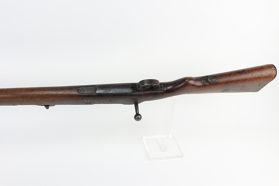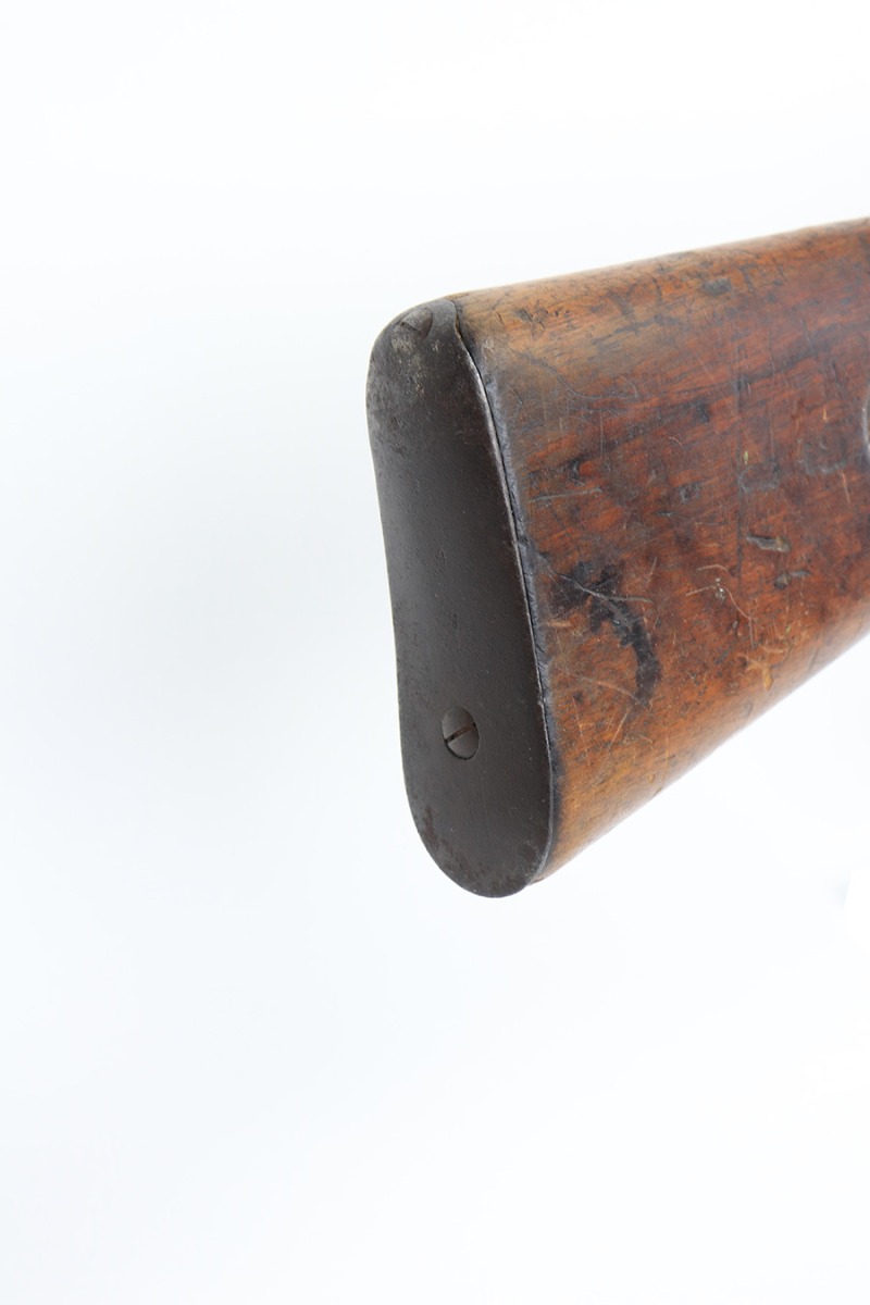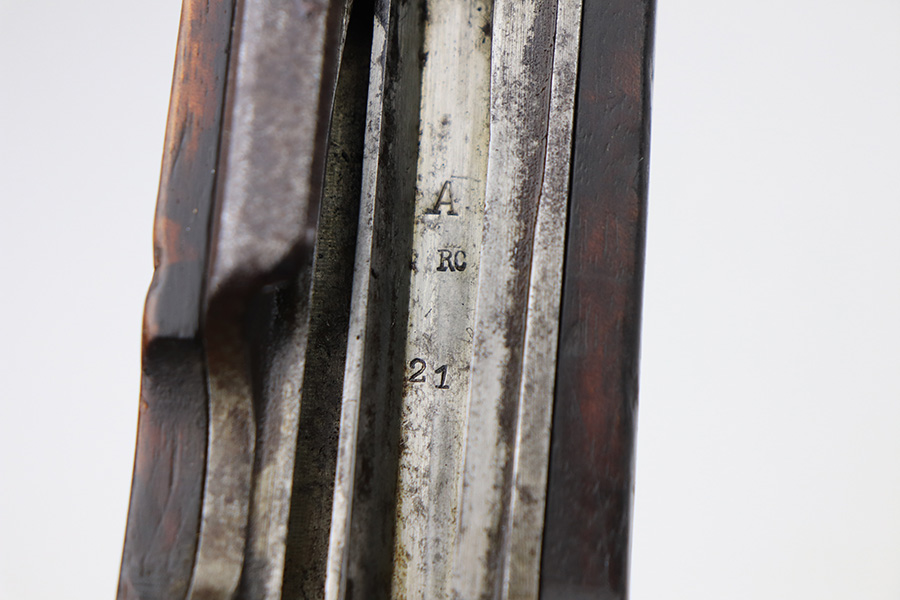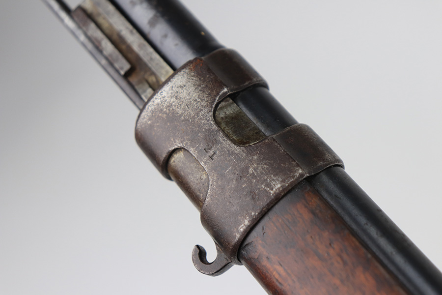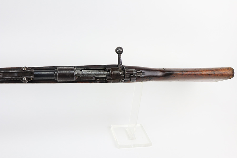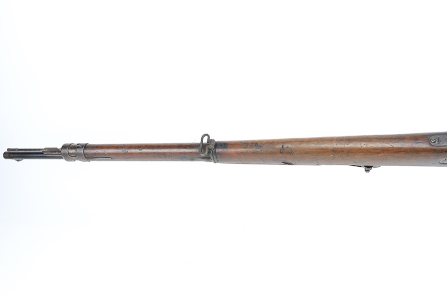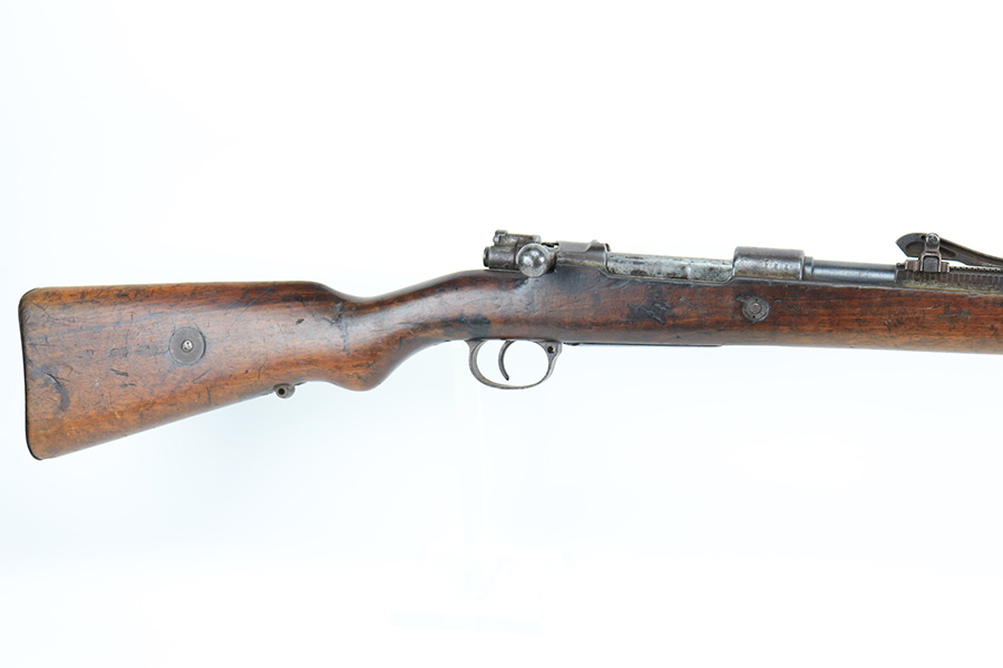 3/3/22 – This is a nice example of an Erfurt Gewehr 98 rifle issued to the Imperial German military in 1907. The gun is mostly matching (including the follower and stock), but the following parts are mismatched – the rear sight, bolt, and bolt release. No import marks. The numbering on the stock is very faint, but it is matching. It has the proper Imperial military proofs throughout. Overall, the gun is in fair condition. There isn’t a ton of actual finish loss, but there is heavy brown patina and areas of minor pitting on the receiver, floor plate, trigger group, and butt plate. Spotty brown patina on both barrel bands. Spotty oxidation along the barrel. The stock has noticeable dents, scratches, and bruising throughout. There are a few more noticeable gouges here and there. The bore has good rifling with pin-pricking throughout.