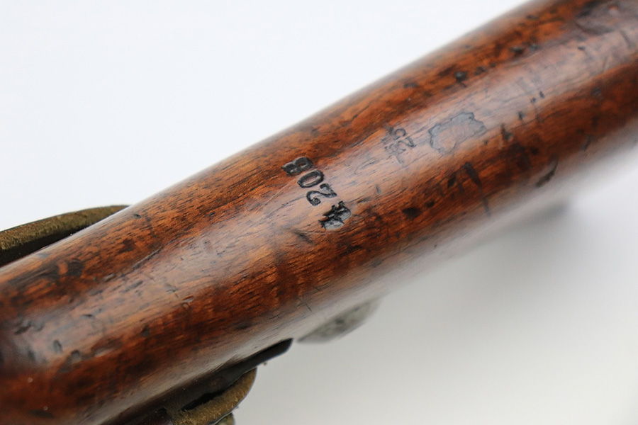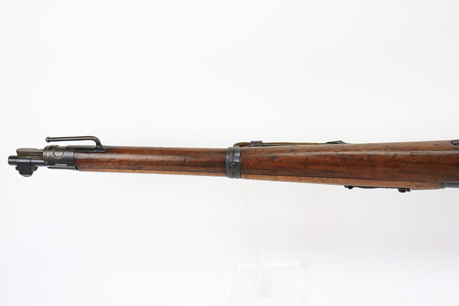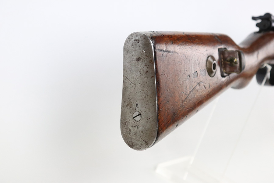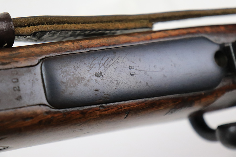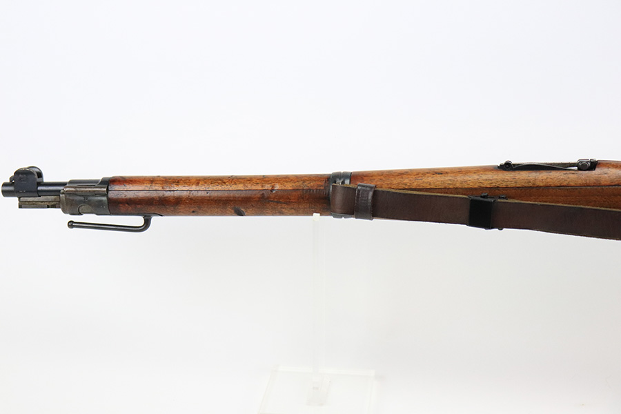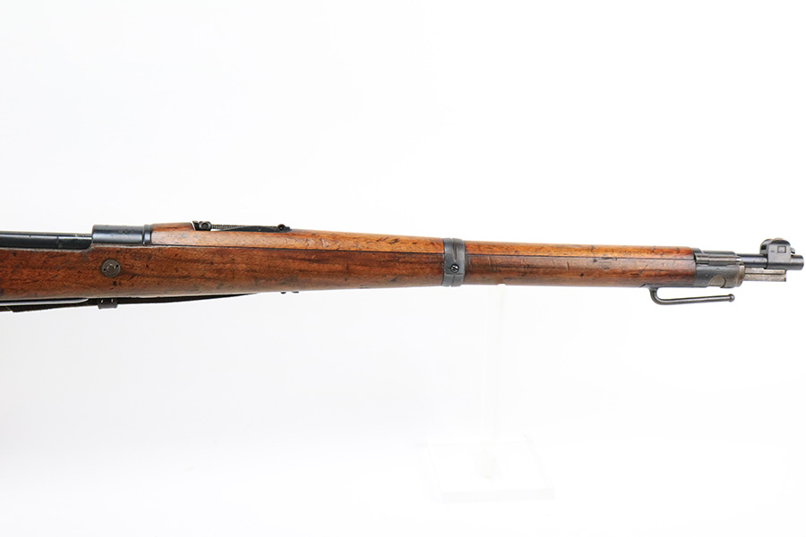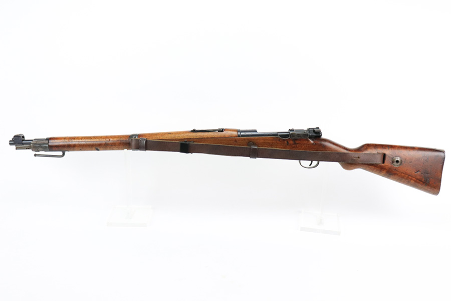 8/5/22 – This is a very nice example of a scarce, early Danzig Karabiner 98 A issued to the Imperial German Army in 1909. It is mostly matching with the proper Imperial proofs throughout. The front barrel band has been renumbered to match the receiver. The receiver is additionally dated with a “1920” stamp indicating the rifle remained in government service after WW1. This was a requirement of Germany’s compliance with the Treaty of Versailles. Rifles of this kind were typically reworked and sometimes refinished, as is the case with this rifle. The finish of the metal is consistent and shows minor oxidation and handling wear throughout. The wooden stock is numbered and matching to the receiver and is in overall nice condition showing handling wear throughout. There are imperial proofs on the right side of the stock. The bore shows good rifling but has some spots of minor frosting.