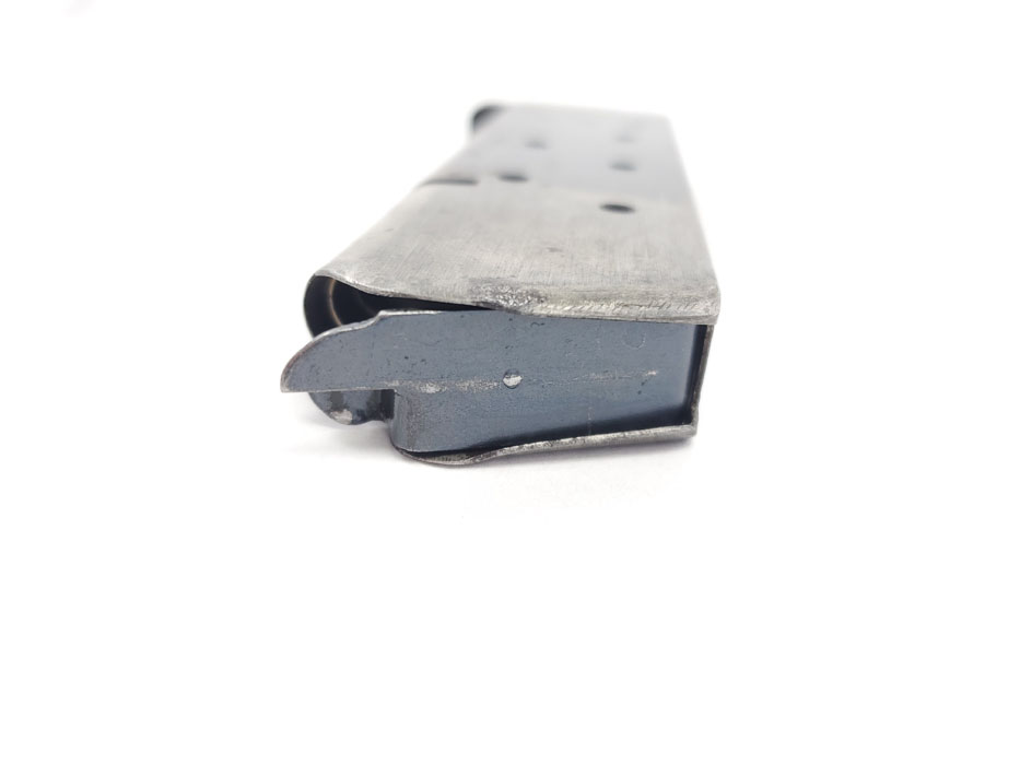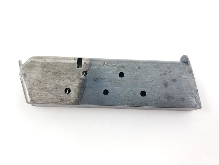 4/13/20 – This is an original WW1 Colt 1911 magazine made by Risdon. The magazine is two-toned with the lower half blued. The magazine has light speckling throughout, but generally is in great condition. The base is stamped “C-L” on the underside, and “R” on the top of the lip. Spring is strong and fully functional.