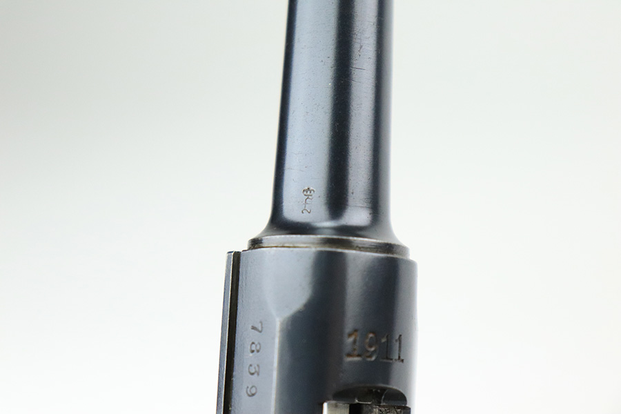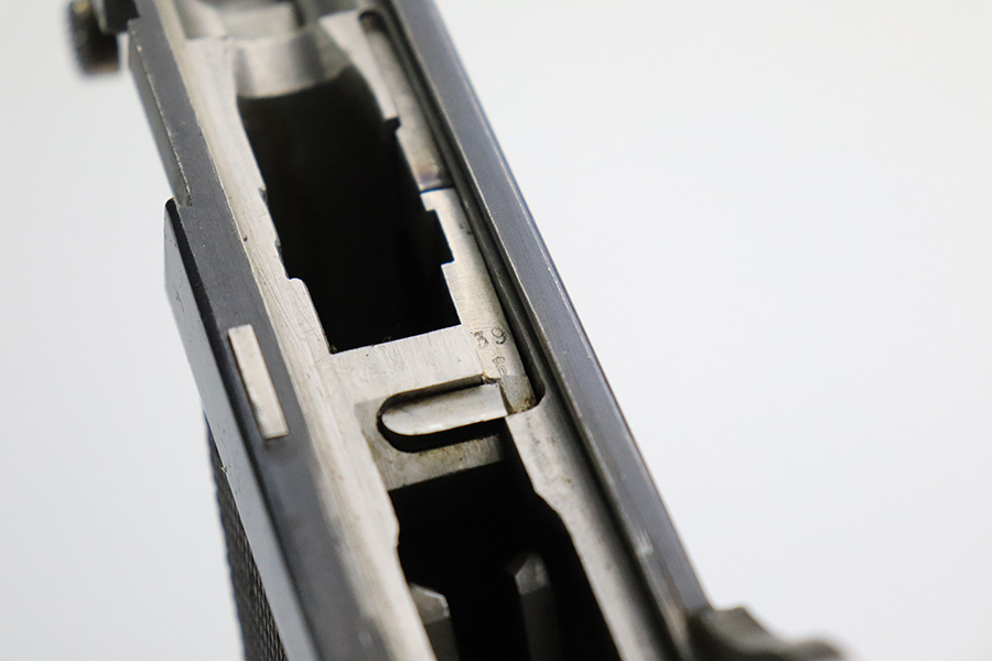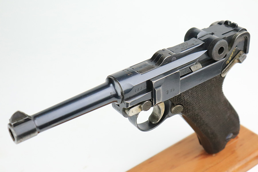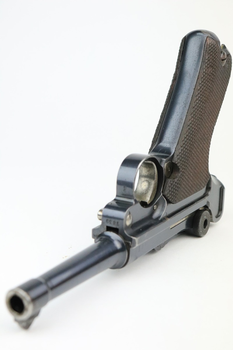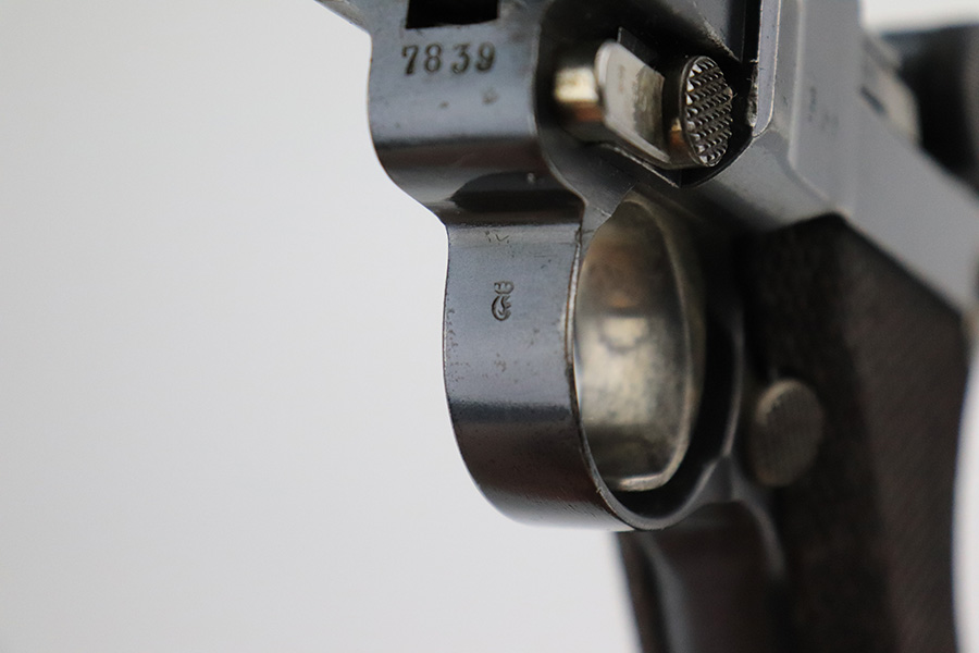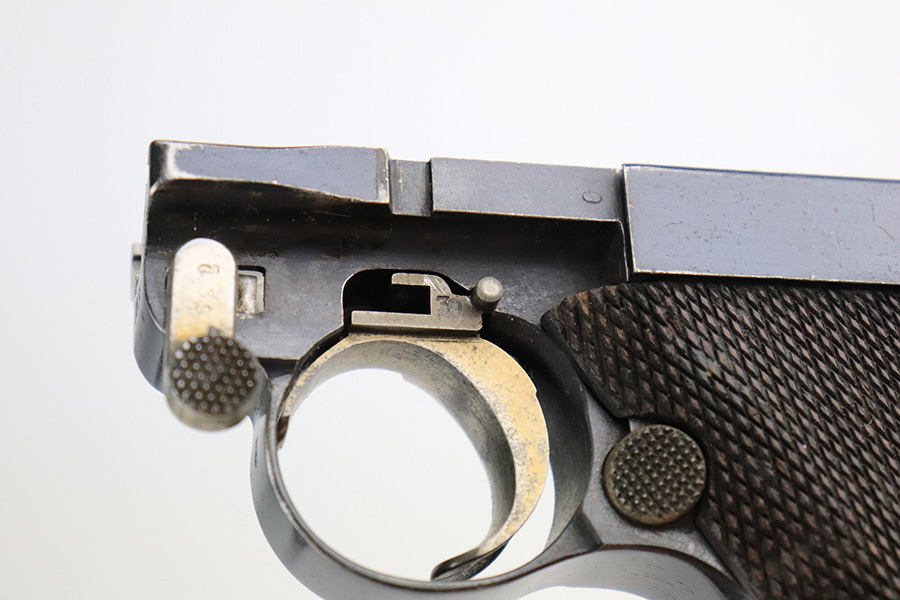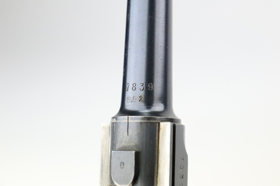 7/13/22 – This is a very nice example of an early Erfurt Luger issued to the Imperial German military in 1911. It is all matching and has the proper Imperial and Erfurt proofs throughout. It has the proper early features such as no hold open (originally) and no stock lug on the back strap. A hold open was added later. It has retained about 96% of its original finish. Areas of very minor on the side plate, side rails, around the muzzle, and at the base of the straps. While there is very little actual finish loss, there are tiny dots of oxidation on most of the gun, most noticeable on grip straps. Comes with very nice matching-numbered grips and a blank bottom magazine – a couple of tiny chips in the wood. Very nice bore with great rifling.
