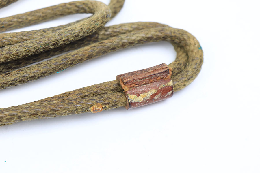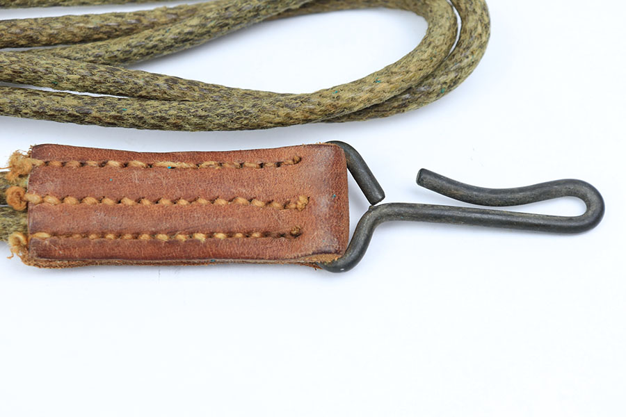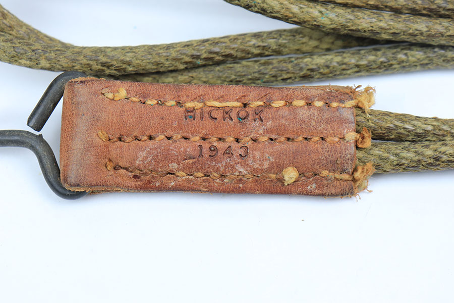1/20/21 – This is an original 1943 dated pistol lanyard from WW2. Mostly used with the 1911A1 colt, but can be used with any period-correct pistol. Great overall condition and well stamped on the leather tab with a maker and date.