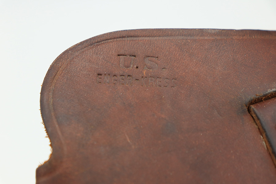 3/10/22 – This is an original WW2 era shoulder holster for a model 1911A1 pistol. The holster is in great overall condition with nice all original leather and stitching. The front leather is “US” stamped, while the back leather is maker stamped by Enger-Kress. There’s some light signs of previous use and aging but no significant damage.