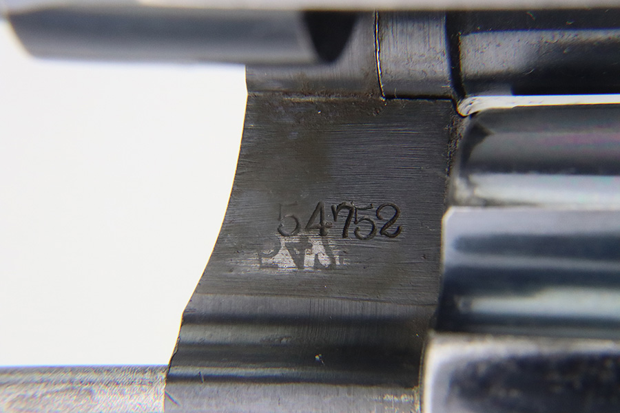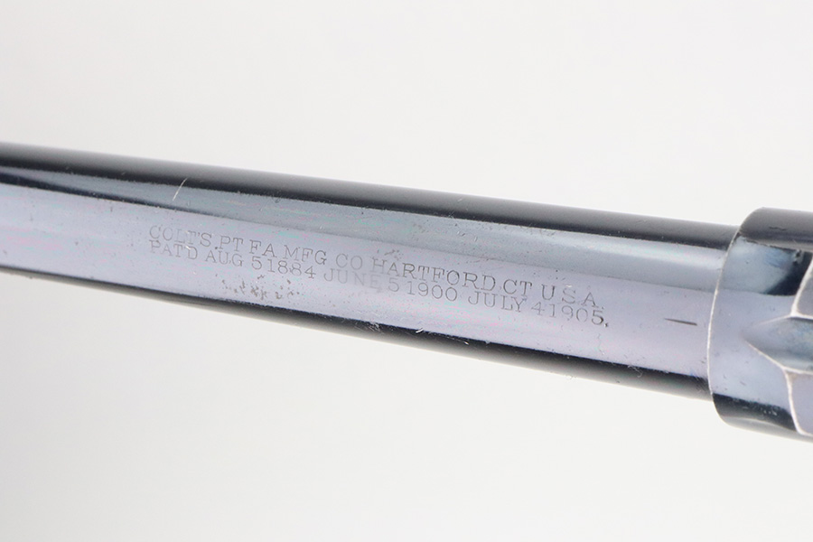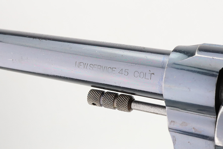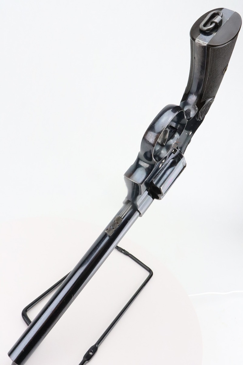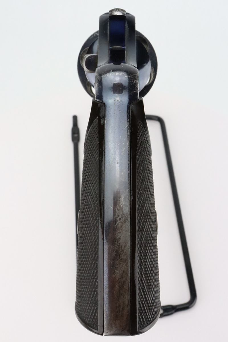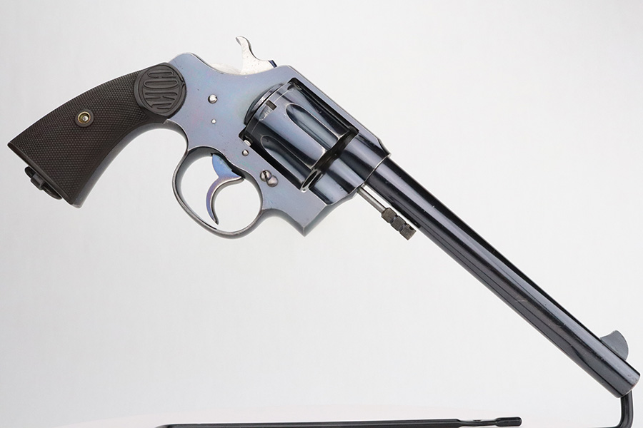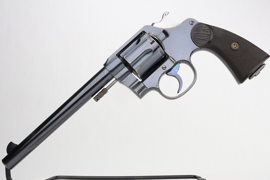 3/13/24 – This is a very nice example of a Colt New Service Revolver from 1912, chambered in .45 Colt. It is all matching and has retained roughly 85% of its original high polish finish. The majority of the wear is on the grip straps, but there is general high edge wear and light surface scratches throughout. Fitted with excellent hard rubber grips. Minty bore. Smooth action.