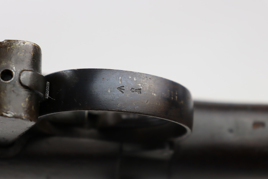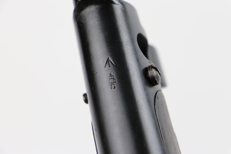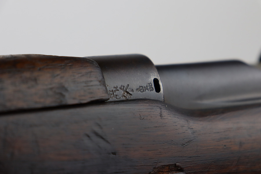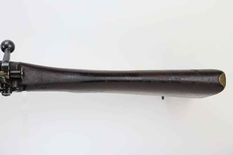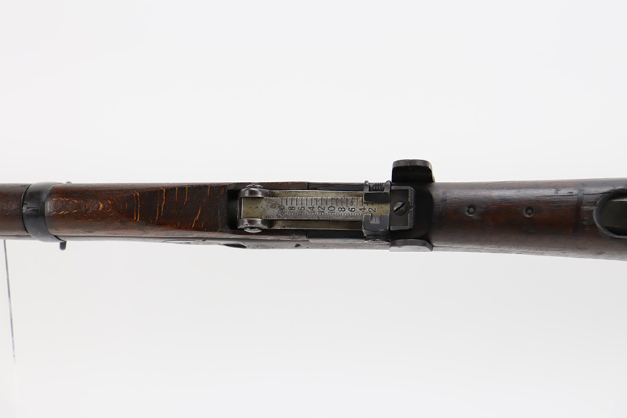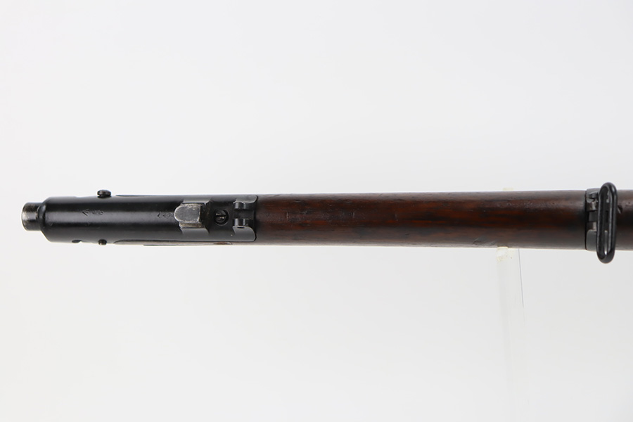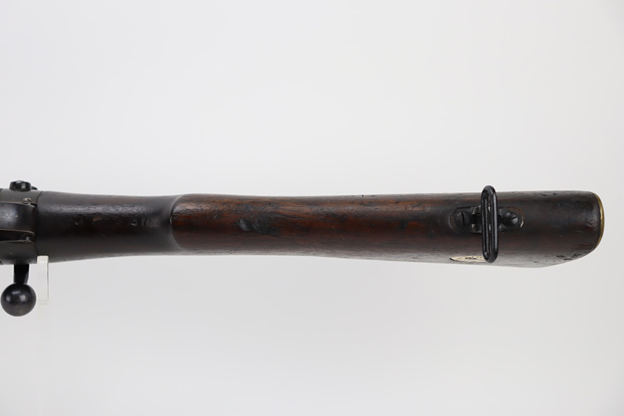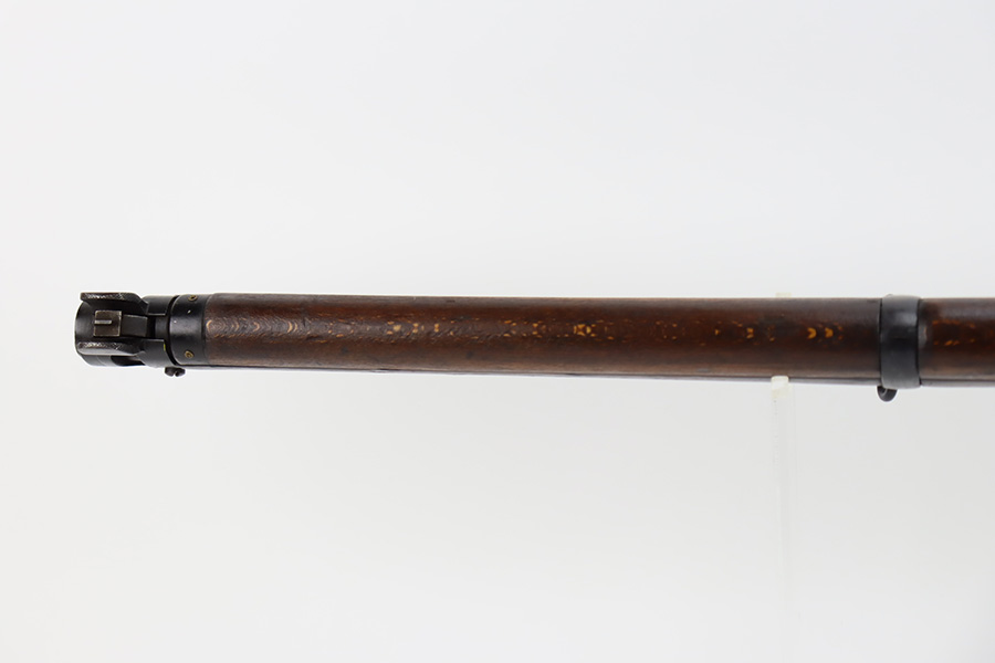 11/3/23 – This is a nice London Small Arms SHTLE III rifle issued to the British military in 1913. All matching with the proper British proofs throughout. England export mark on the receiver. No legible numbering on the stock. The stock disc is likely a replacement. The finish on the metal rates about 90%. While there is not much actual finish loss, there is noticeable brown patina throughout. The wood shows minor bruising and scratching throughout with a small hairline crack in the upper handguard in front of the receiver. Minty bore.