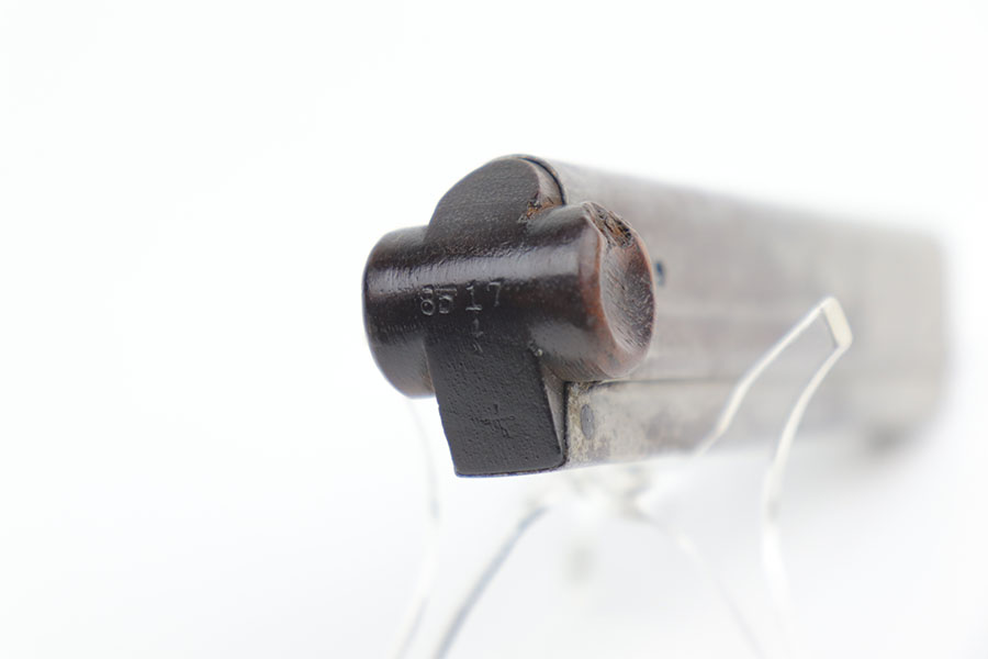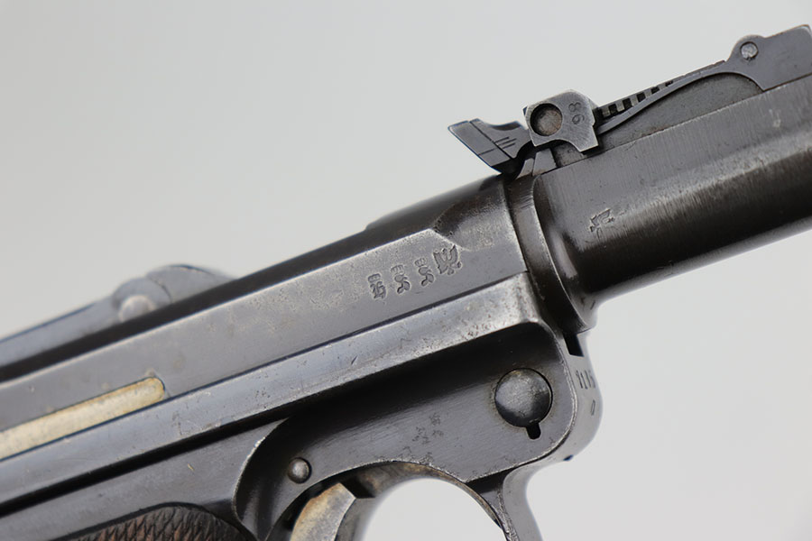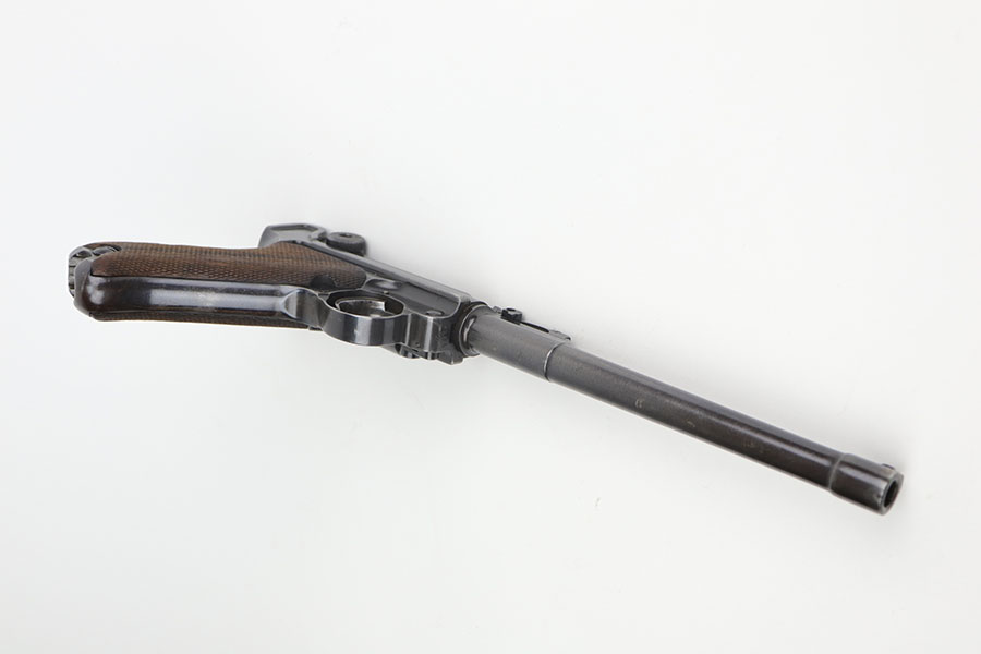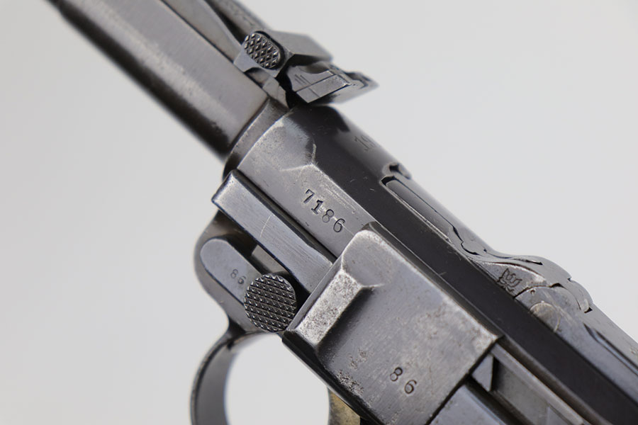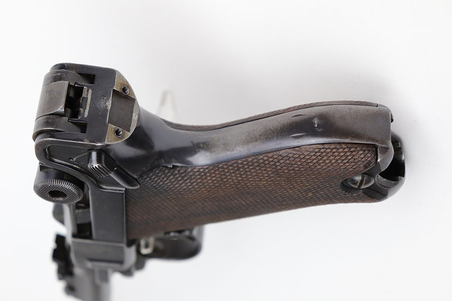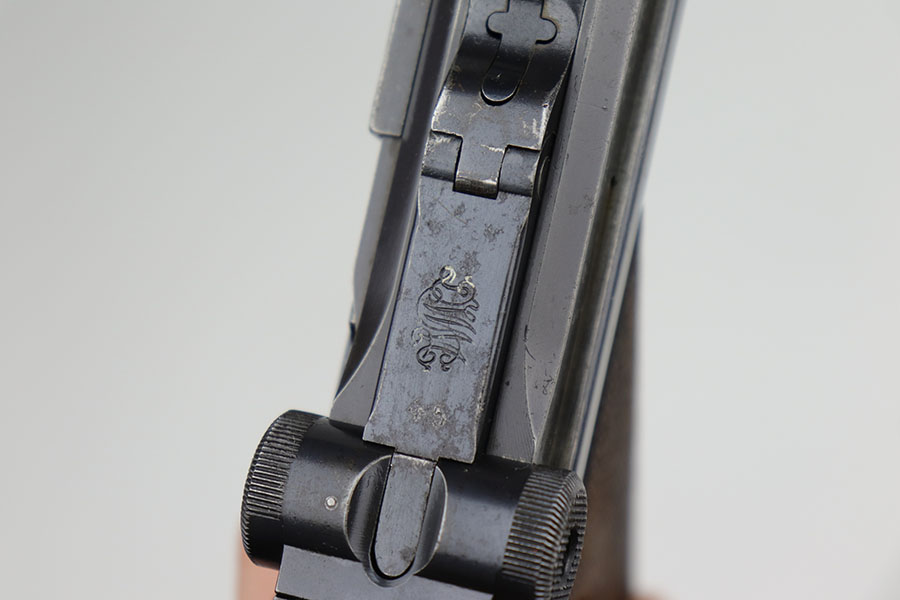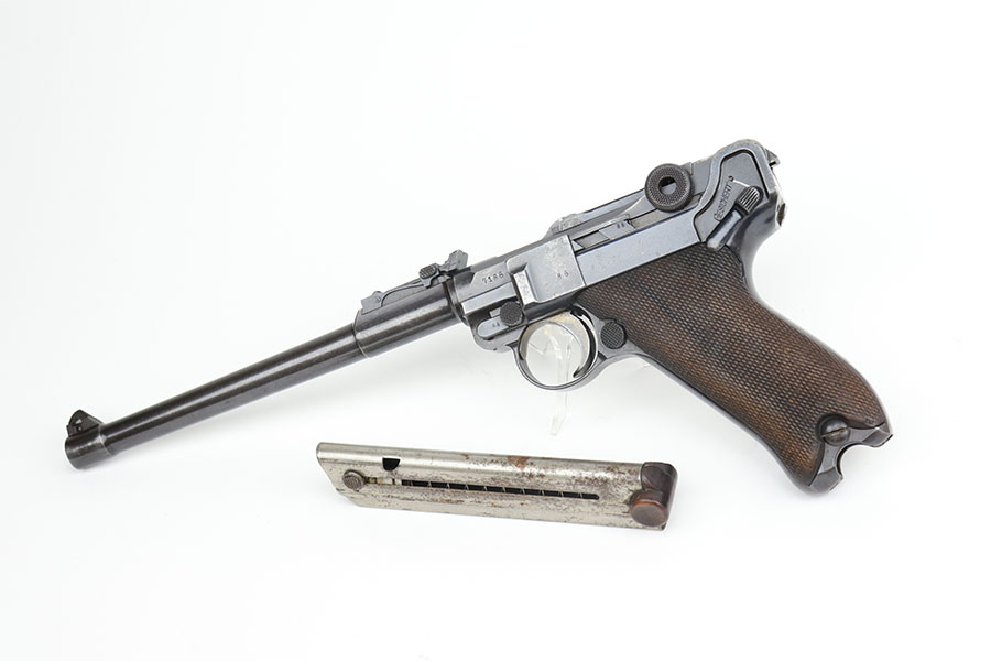 12/16/20 – This is an Artillery DWM Luger from 1915, a fairly scarce find as far as production totals go. The pistol has all matching numbers throughout, but the finish was reblued at some point long ago. For whatever reason, the stock lug was also removed. All numbers are matching on the gun, aside from magazine and grips. Magazine is period original, just mismatched to the pistol. The reblue isn’t obvious aside from the small parts, which should be strawed. The bore is excellent, so this one would make a good shooter.
