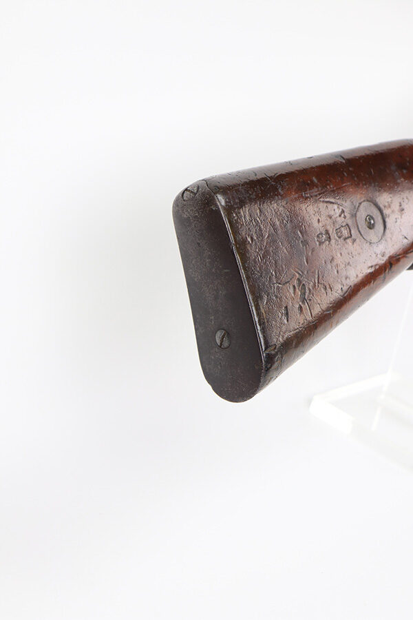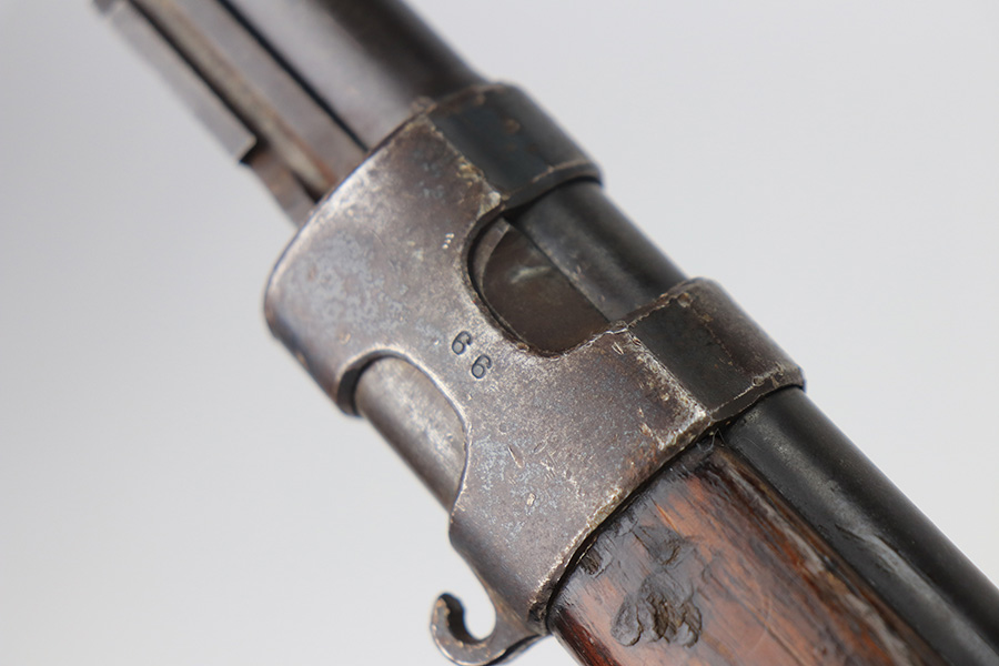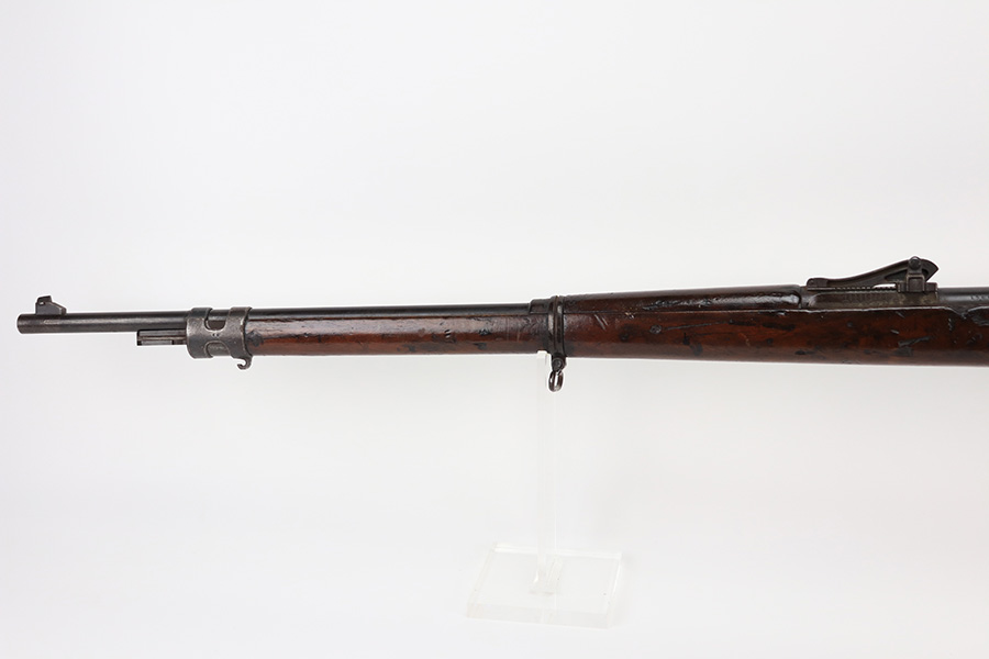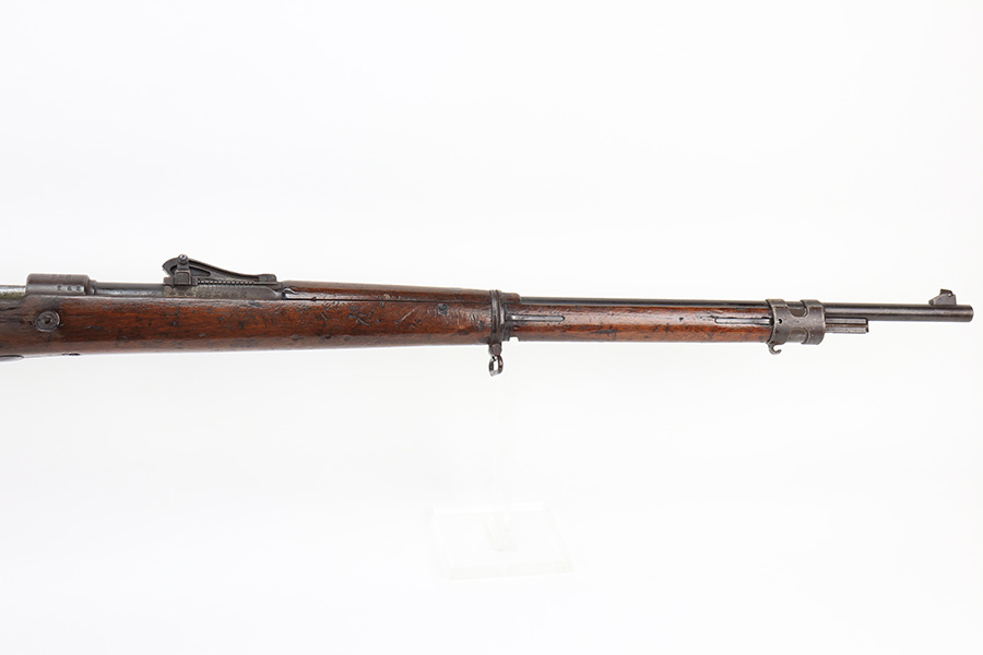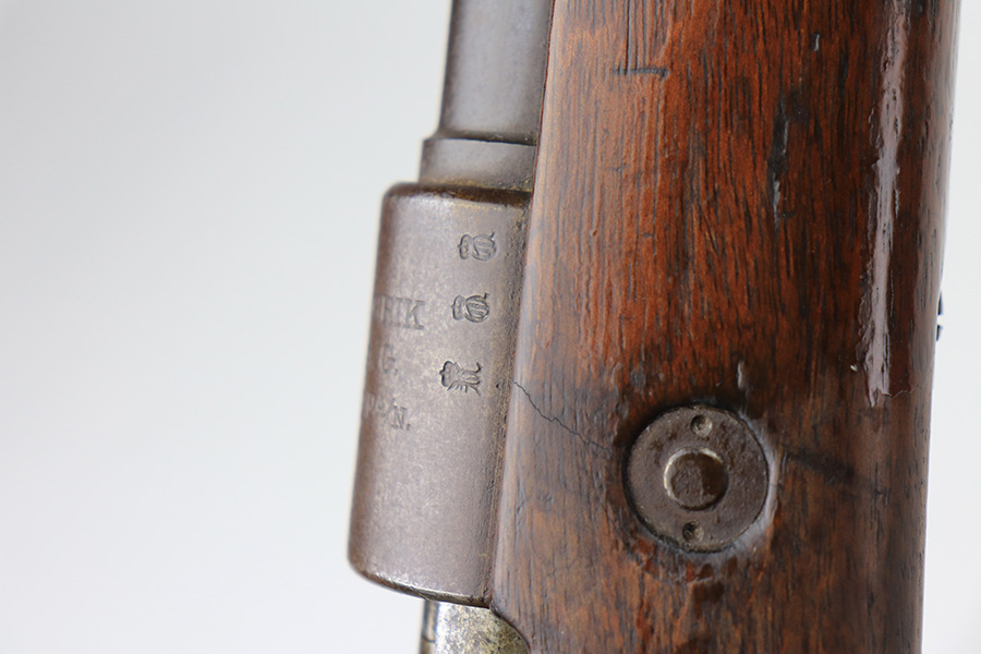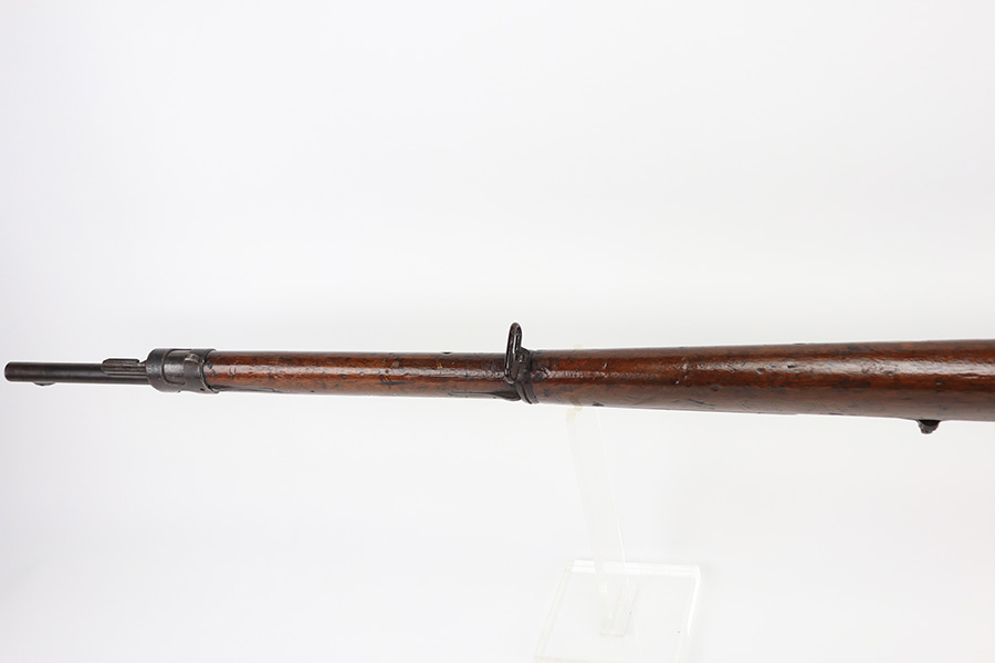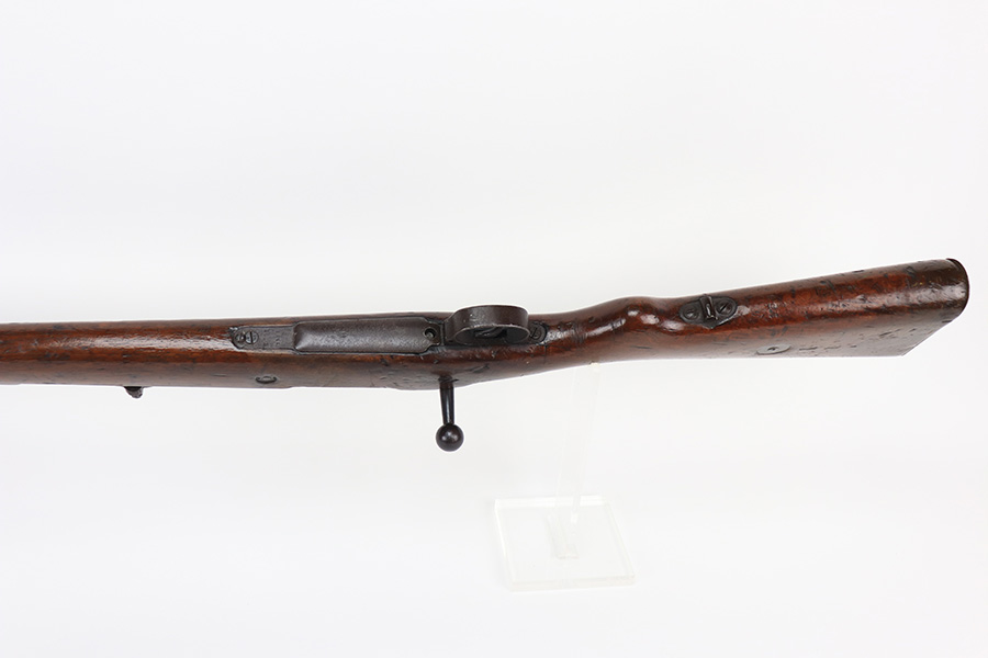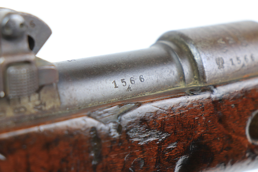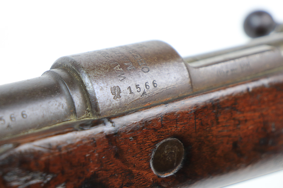 1/24/22 – This is a nice example of a Mauser Gewehr 98 rifle issued to the Imperial German military in 1915. The gun is mostly matching (including the butt plate and wood stock), but the bolt is mismatched. No import marks. This is a “Bond Gun” example. These guns were handed out in the civilian market following WW1 to those who contributed to the war effort by purchasing war bonds. For all of these rifles, the barrels have a plug in the muzzle end. Overall, the gun is in nice condition, but there is noticeable spotty brown patina on all of the metal parts. There is also a series of small dings on the front barrel band. The stock is in decent condition, but there are noticeable dents, bruises, and scratches throughout. The barrel is plugged, so we could not get a bore rating.