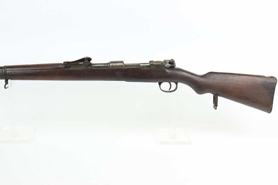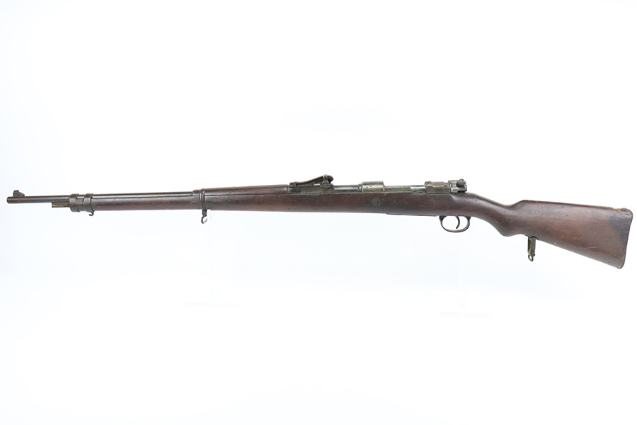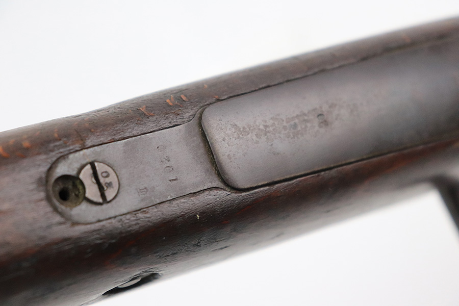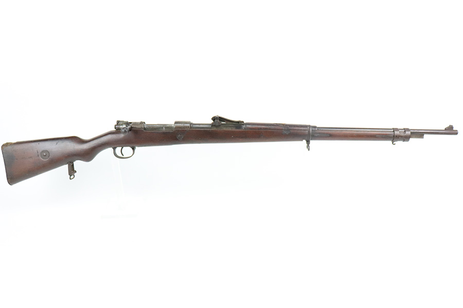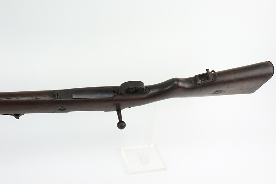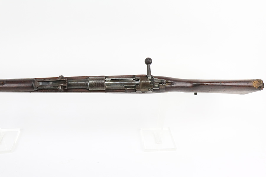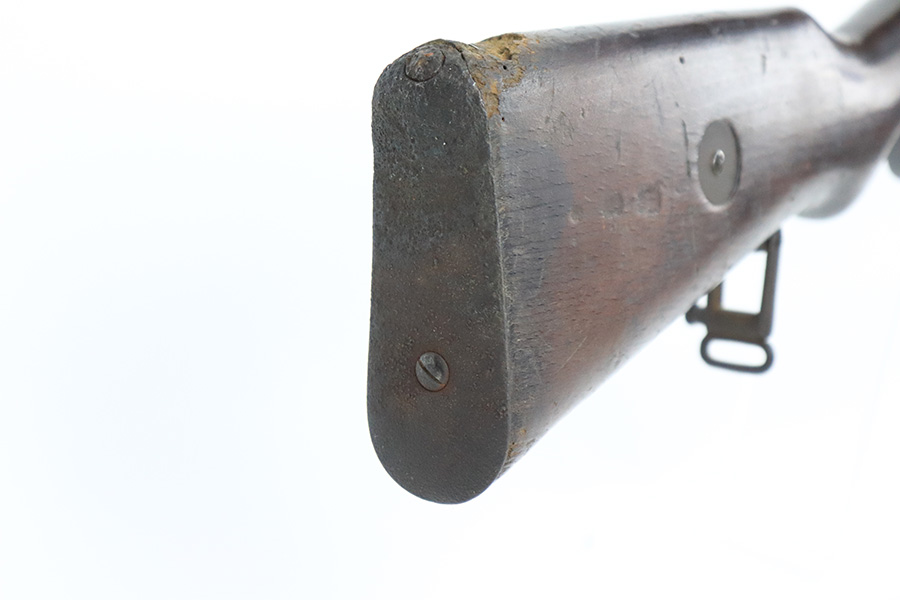 11/30/22 – This is a DWM Gewehr 98 issued to the Imperial German military in 1916. The gun is entirely matching to itself, but the bolt is mismatched. No import marks. Overall, it is in fair condition, but there is noticeable finish loss on the receiver and heavy brown patina and spotty oxidation covering all of the metal parts. Heavy pitting on the butt plate. There are fairly large gouges in the wood on the top edge of the butt stock and upper handguard. The bore has heavy oxidation and pitting throughout.