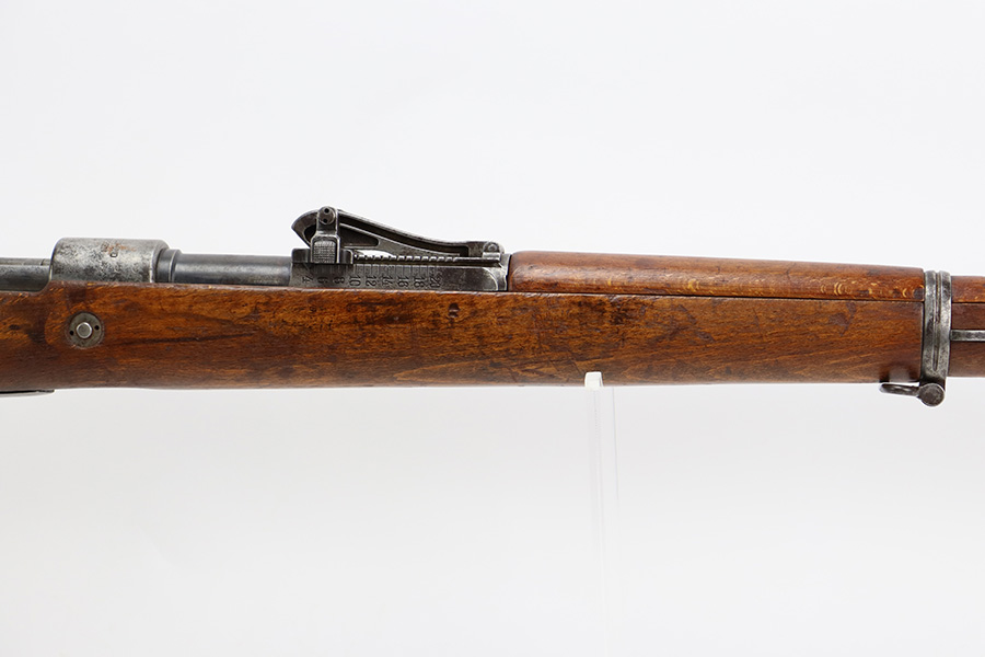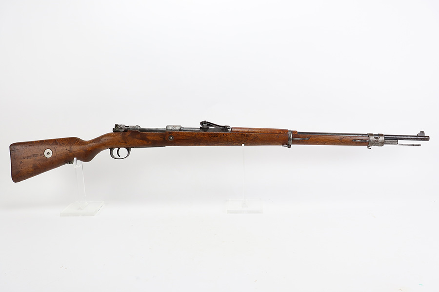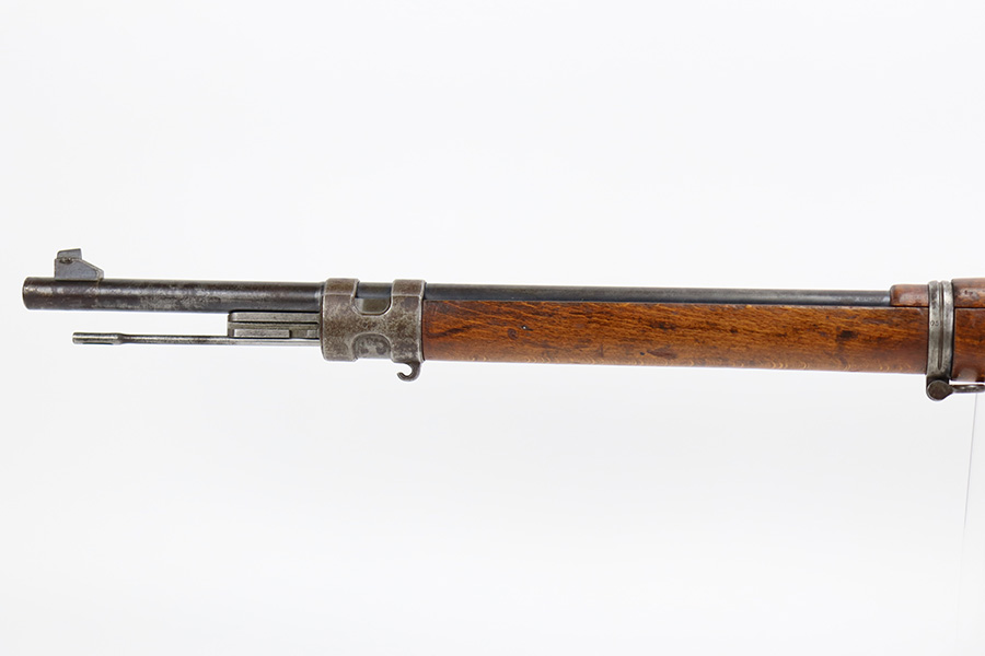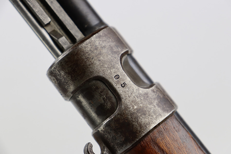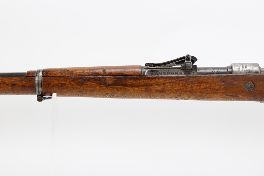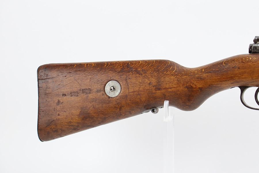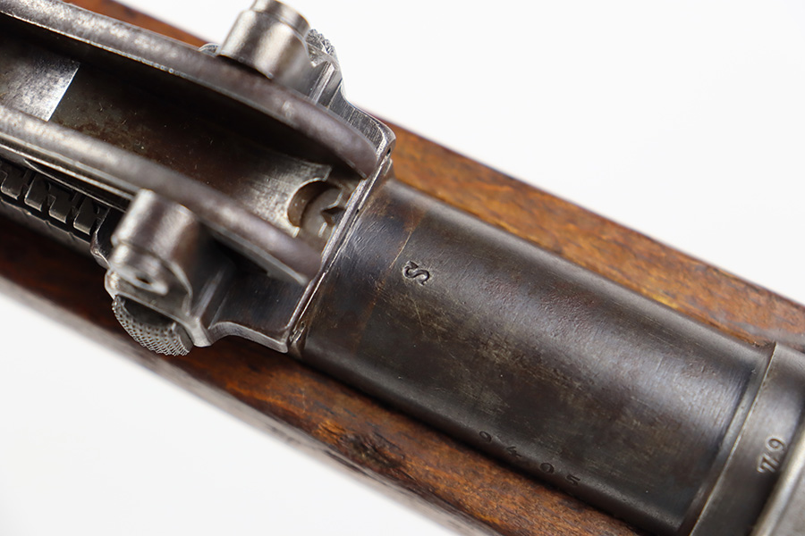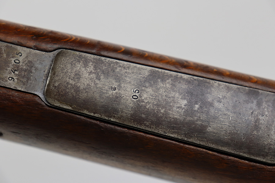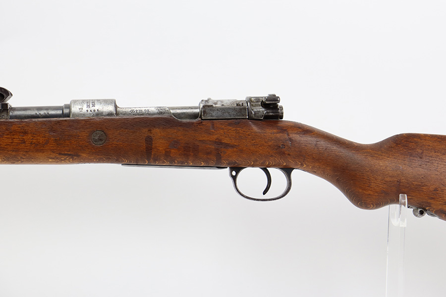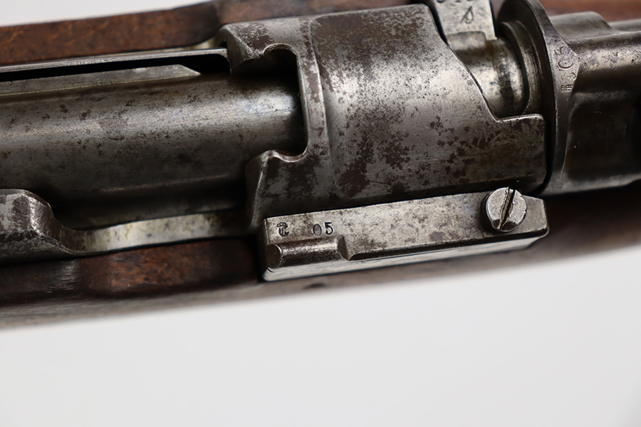 7/25/23 – This is a nice example of a DWM Gewehr 98 rifle issued to the Imperial German military in 1916. The gun is almost entirely matching, but the sliding portion of the rear sight is mismatched. The stock is numbered and matching. The metal parts have lost virtually all of their original finish with noticeable spotty oxidation throughout and some areas of tiny pitting here and there, most noticeable on the receiver. The stock has no major damage, but shows the typical signs of wear. It appears to have been very lightly sanded. The bore has good rifling with minor frosting throughout.