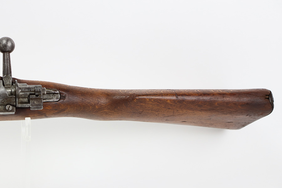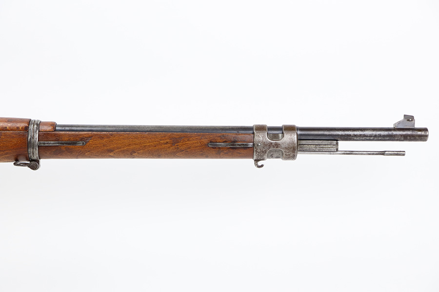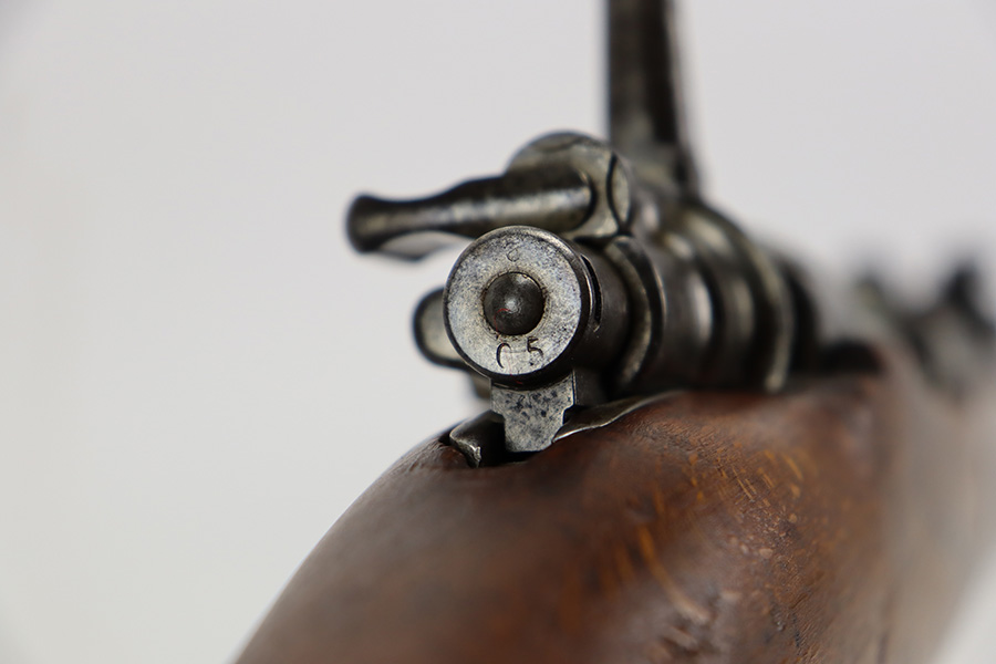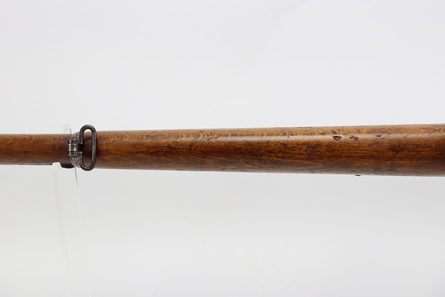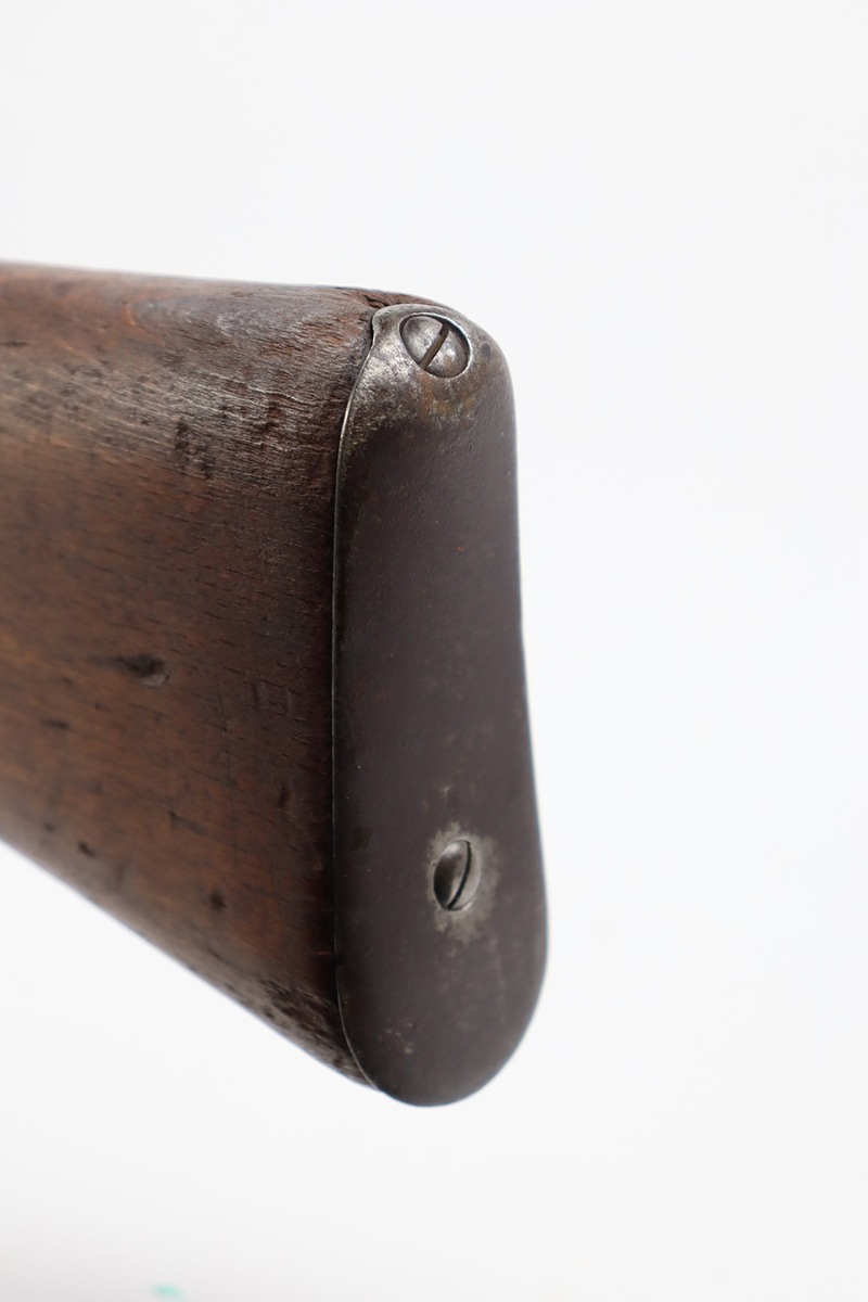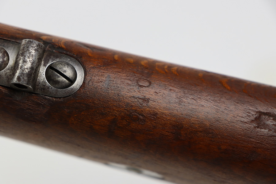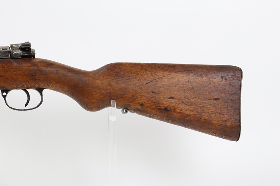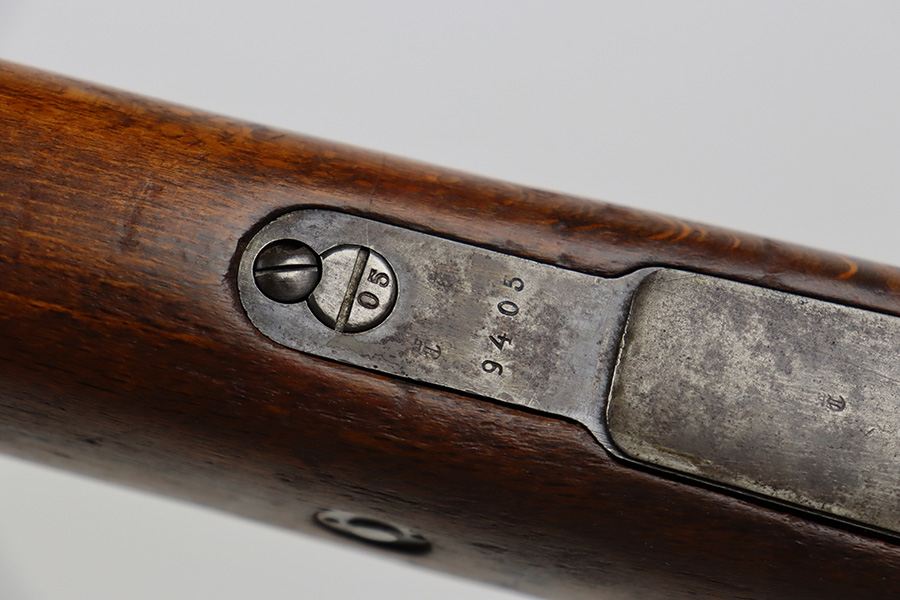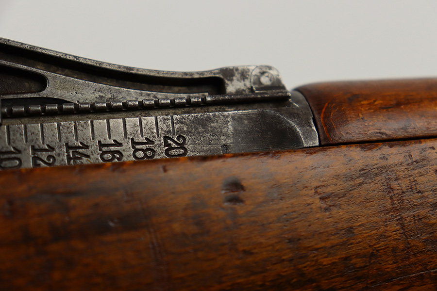 7/25/23 – This is a nice example of a DWM Gewehr 98 rifle issued to the Imperial German military in 1916. The gun is almost entirely matching, but the sliding portion of the rear sight is mismatched. The stock is numbered and matching. The metal parts have lost virtually all of their original finish with noticeable spotty oxidation throughout and some areas of tiny pitting here and there, most noticeable on the receiver. The stock has no major damage, but shows the typical signs of wear. It appears to have been very lightly sanded. The bore has good rifling with minor frosting throughout.