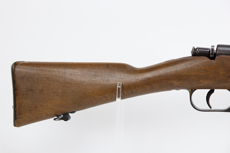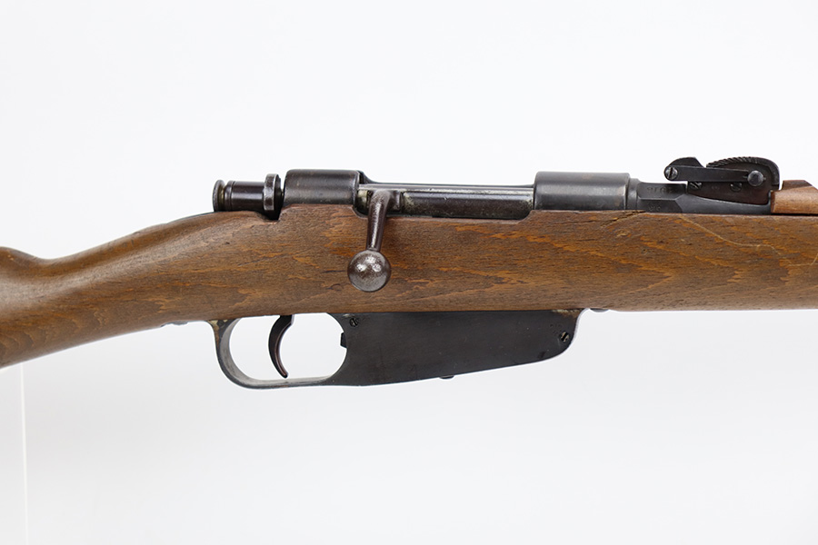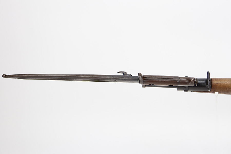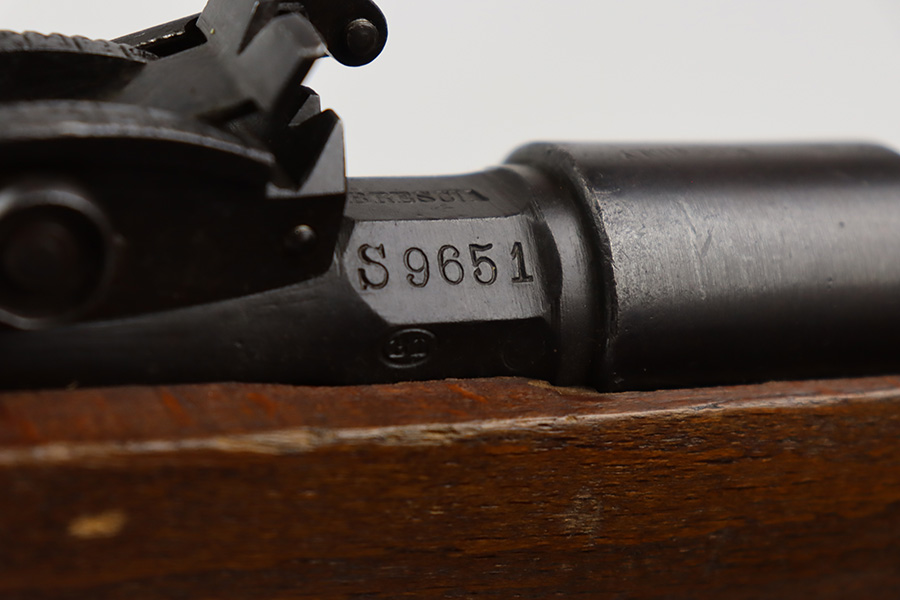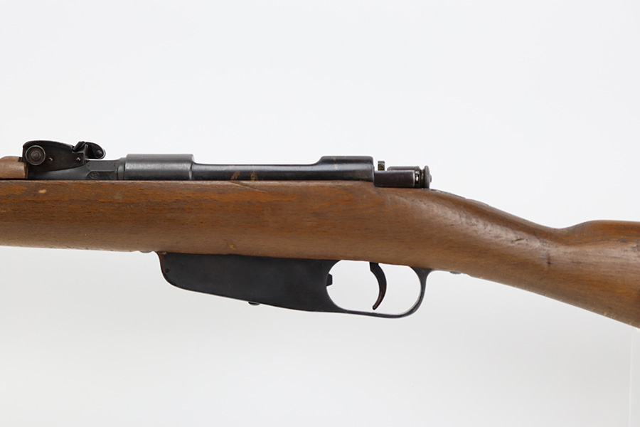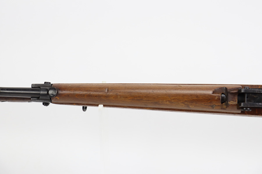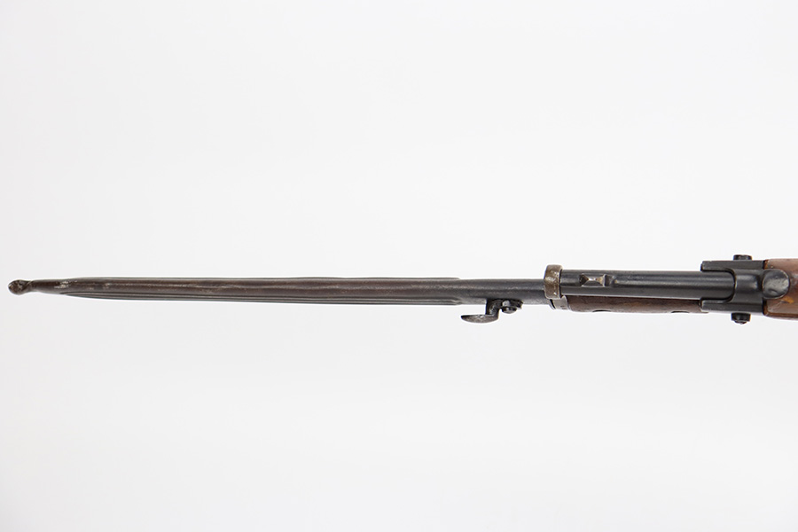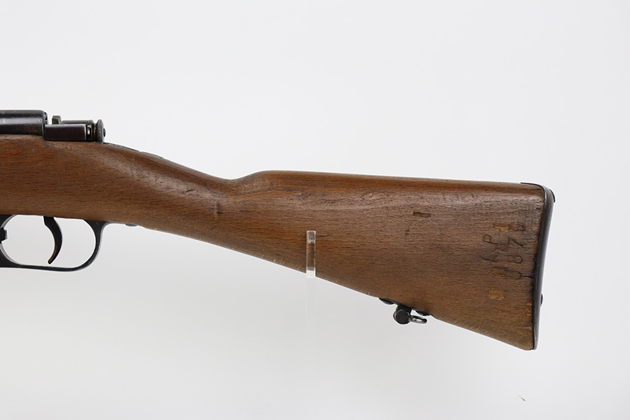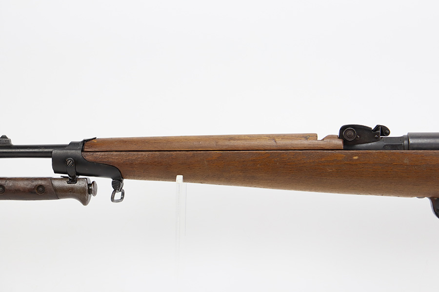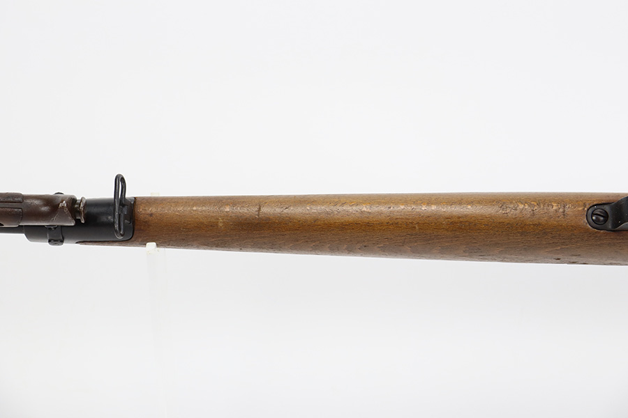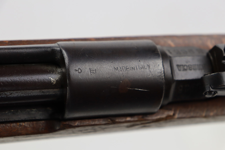 8/31/23 – This is a nice example of a Brescia Carcano Carbine issued to the Italian military in 1916. It is all matching, but the stock appears to have been re-numbered to match. It comes with a period-correct bayonet and metal scabbard. The bayo is numbered but does not match the gun. The metal parts of the gun itself have retained about 97% of their finish. While there isn’t a ton of actual finish loss, there is light brown patina under most of the finish and a few small spots of discoloration on the receiver. Very nice wood furniture overall, but there is a repaired hairline crack in the upper handguard and it fits a little loose. The rifling in the bore is slightly worn with pitting throughout.