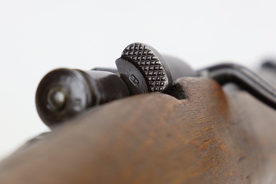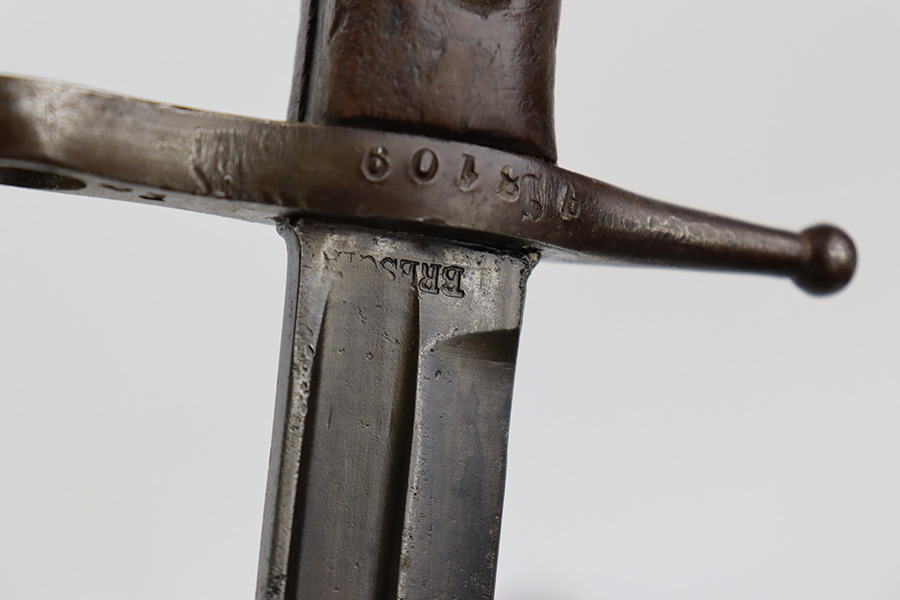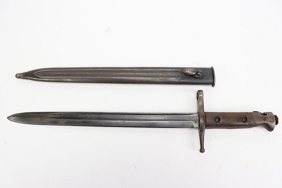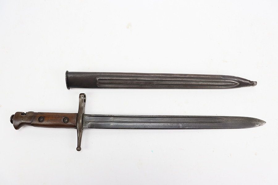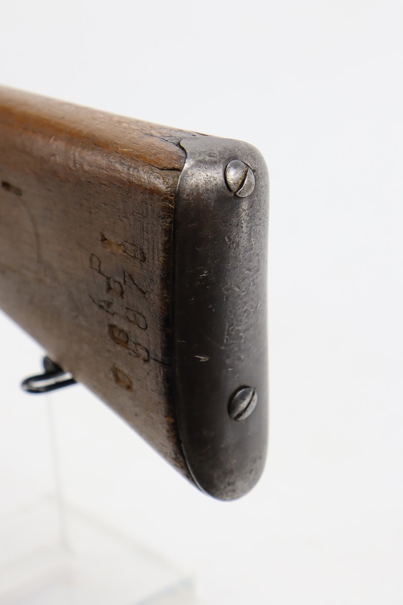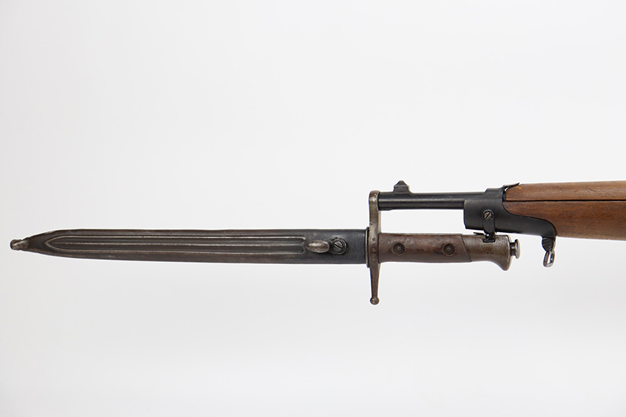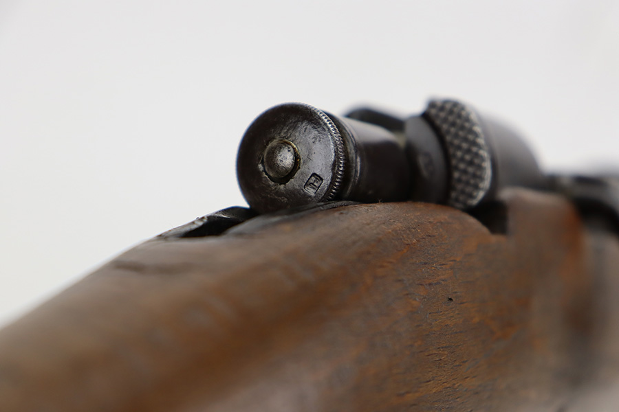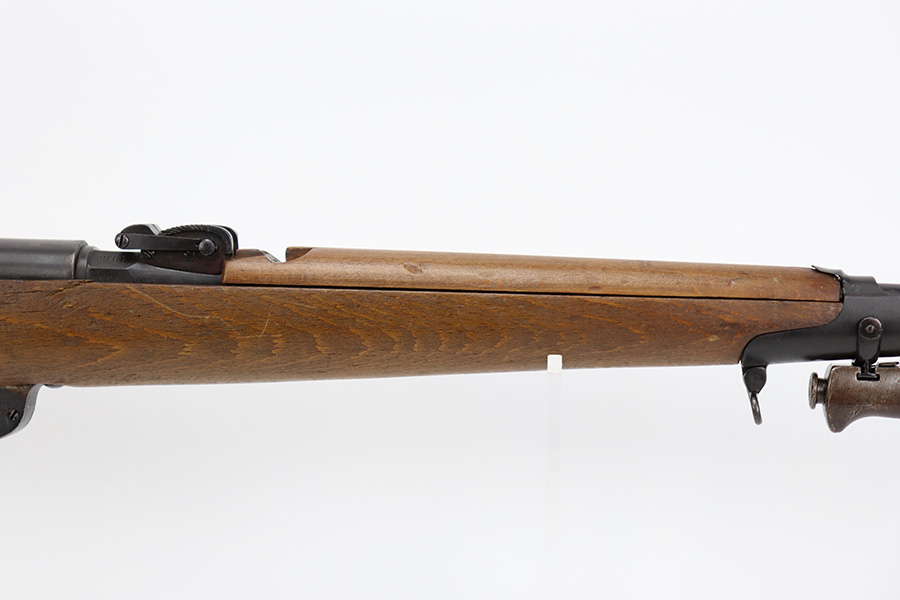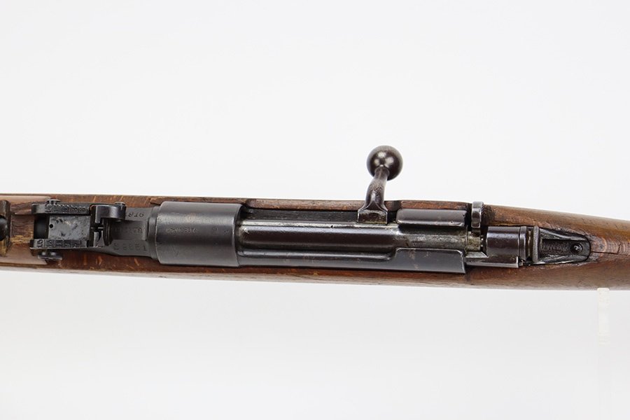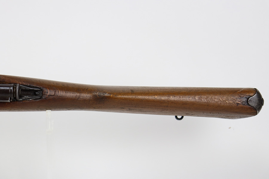 8/31/23 – This is a nice example of a Brescia Carcano Carbine issued to the Italian military in 1916. It is all matching, but the stock appears to have been re-numbered to match. It comes with a period-correct bayonet and metal scabbard. The bayo is numbered but does not match the gun. The metal parts of the gun itself have retained about 97% of their finish. While there isn’t a ton of actual finish loss, there is light brown patina under most of the finish and a few small spots of discoloration on the receiver. Very nice wood furniture overall, but there is a repaired hairline crack in the upper handguard and it fits a little loose. The rifling in the bore is slightly worn with pitting throughout.