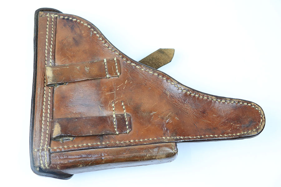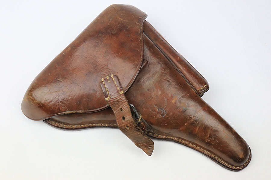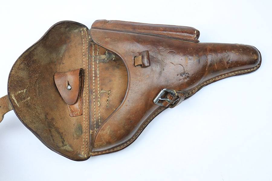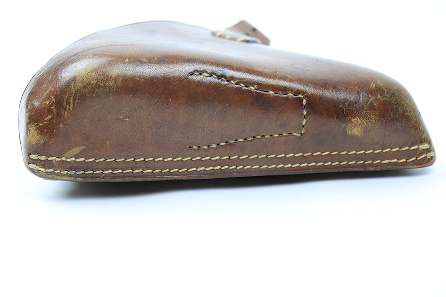 6/23/21 – This is a very nice 1916 Luger holster from WW1. The leather is in great shape with normal pliability and no major issues. Hard to find WW1 examples in this condition. There are a few mild surface imperfections throughout the leather. No stitching issues. The interior lid is maker stamped and dated.