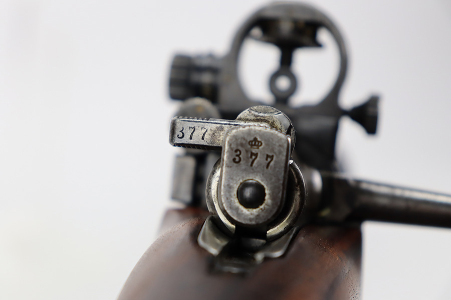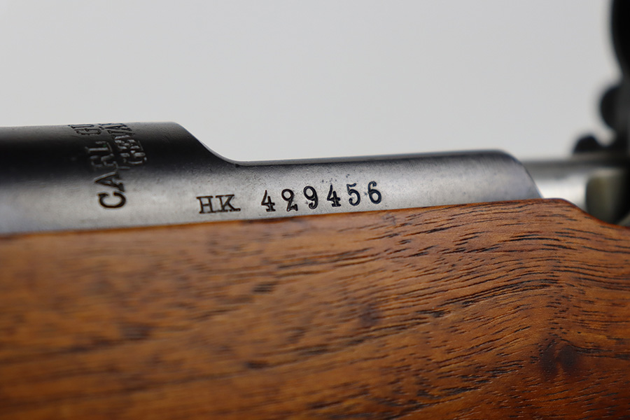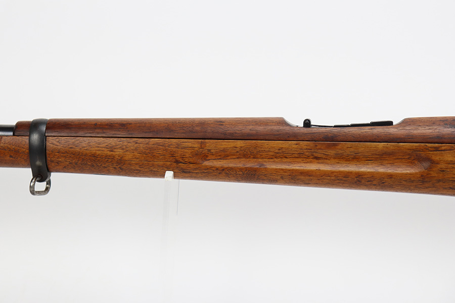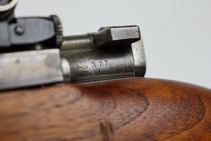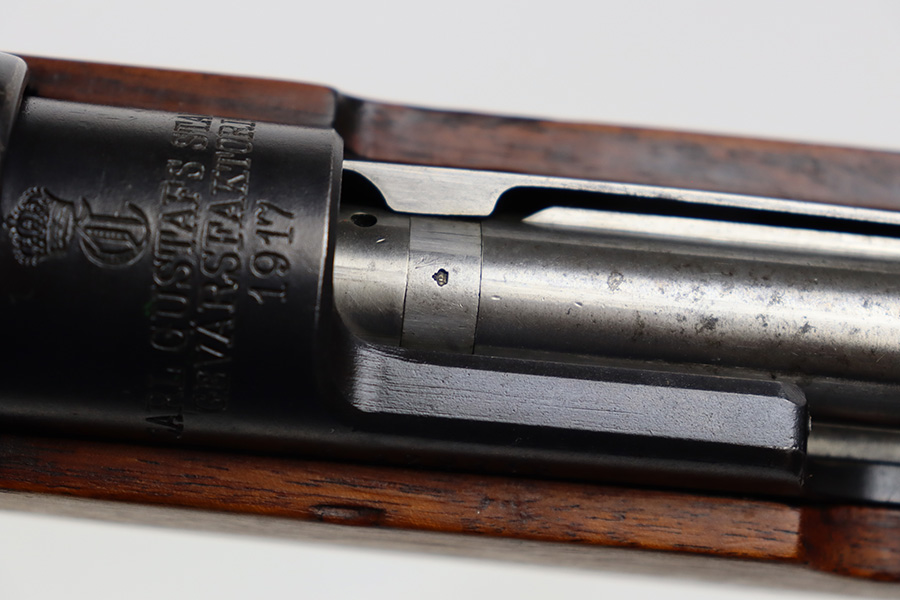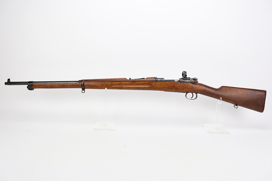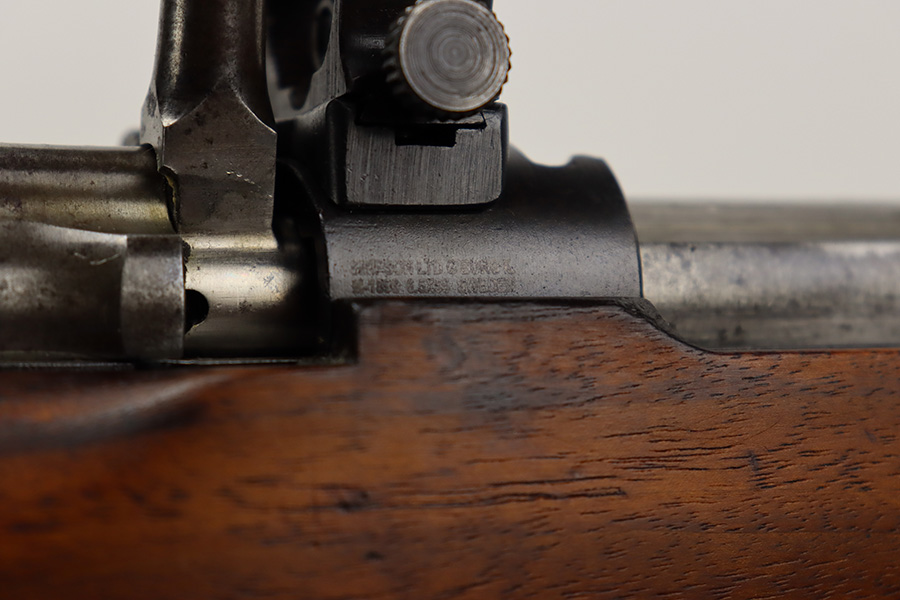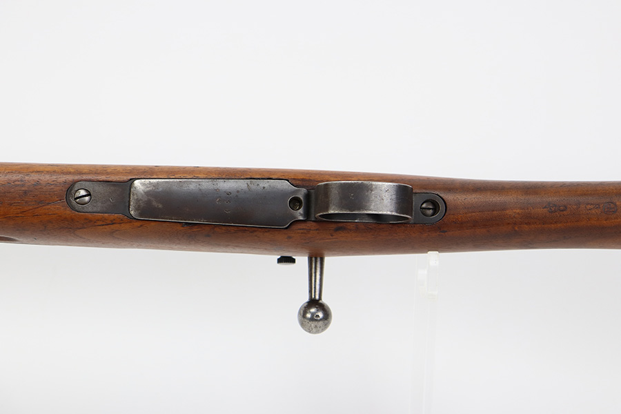 8/31/23 – This is an excellent example of a Swedish Mauser Carl Gustafs Model 1896, manufactured in 1916 and chambered in 6.5mm Swedish. These were civilian rifles built on the Swedish Mauser action. They were competition/target guns used by members of the Swedish Volunteer Sharpshooting Movement, Frivilliga Skytterorelsen (FSR). The bolt is mismatched, the rear sight was removed, and an adjustable PRAMM rear sight was added. The metal parts have retained about 95% of their finish with some bluing loss on the floor plate / trigger group and some oxidation on the barrel. Minty wood stock that was likely sanded and is missing the stock disc. Very nice bore with good rifling and very minor frosting throughout. Import mark on the right side of the receiver.