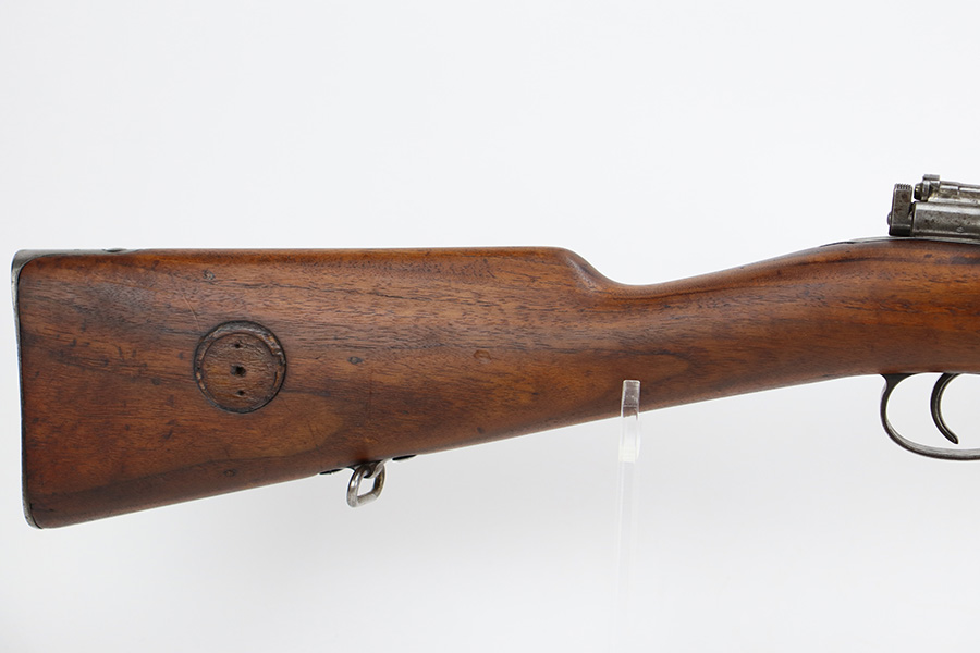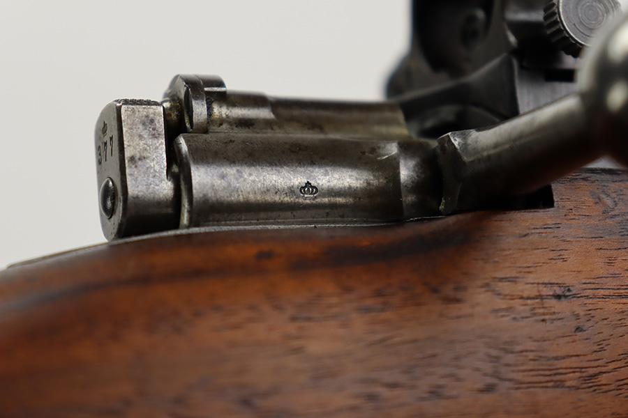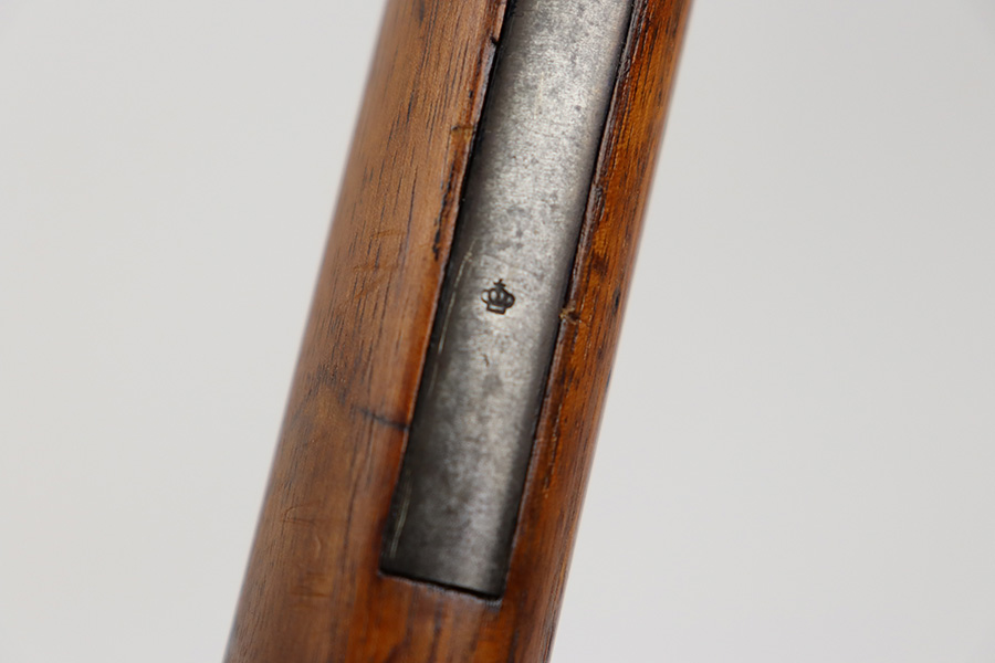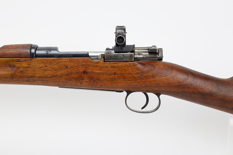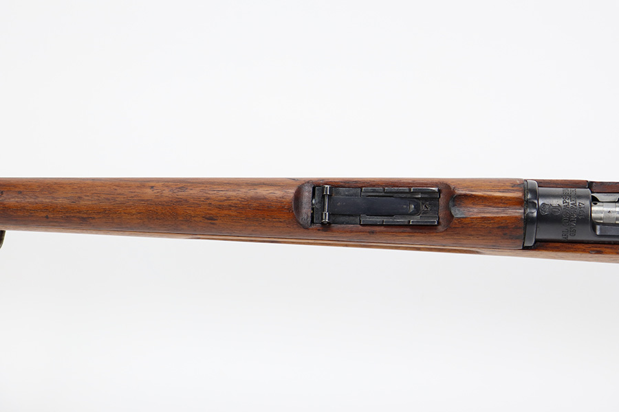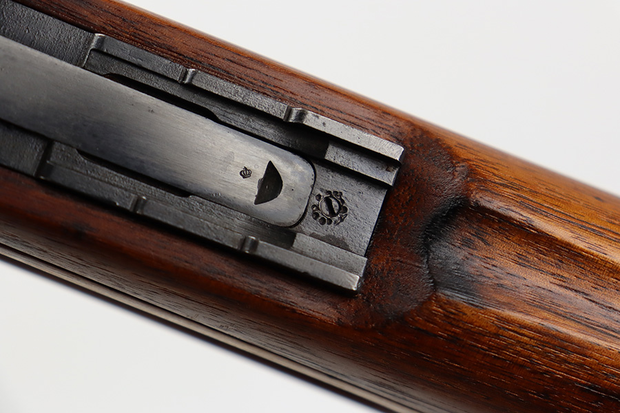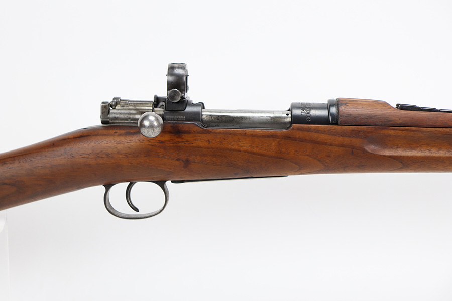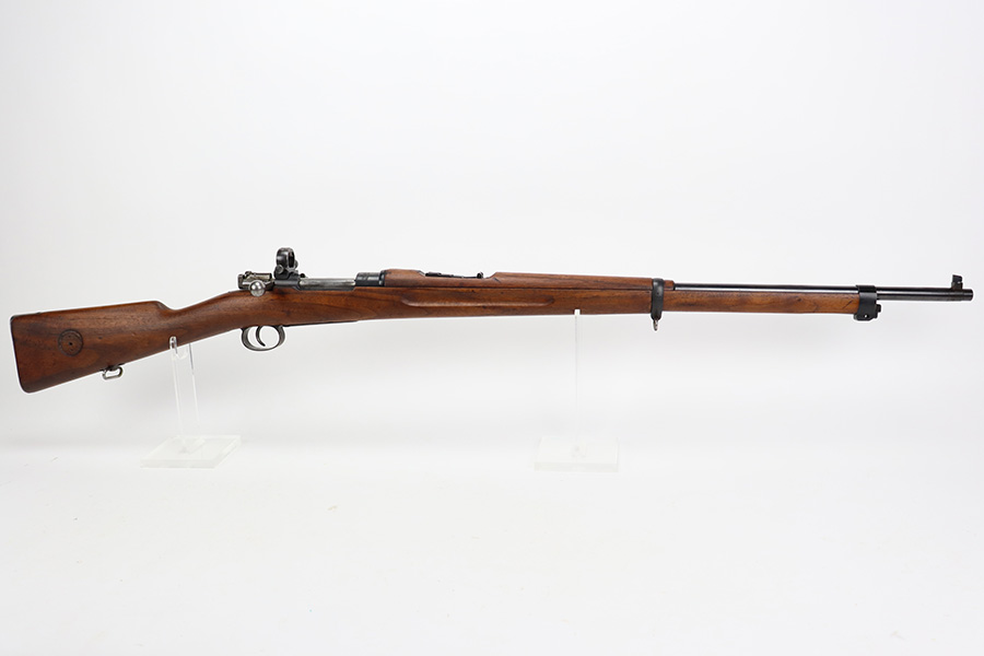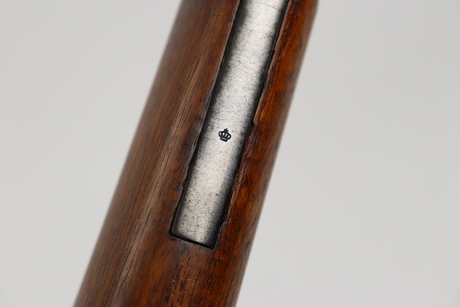 8/31/23 – This is an excellent example of a Swedish Mauser Carl Gustafs Model 1896, manufactured in 1916 and chambered in 6.5mm Swedish. These were civilian rifles built on the Swedish Mauser action. They were competition/target guns used by members of the Swedish Volunteer Sharpshooting Movement, Frivilliga Skytterorelsen (FSR). The bolt is mismatched, the rear sight was removed, and an adjustable PRAMM rear sight was added. The metal parts have retained about 95% of their finish with some bluing loss on the floor plate / trigger group and some oxidation on the barrel. Minty wood stock that was likely sanded and is missing the stock disc. Very nice bore with good rifling and very minor frosting throughout. Import mark on the right side of the receiver.
