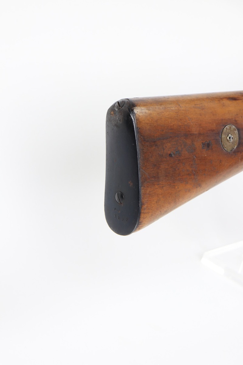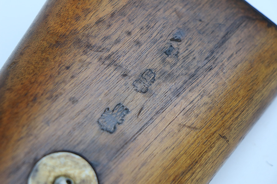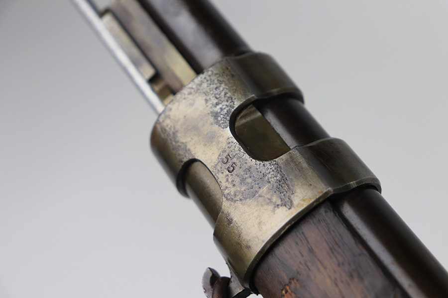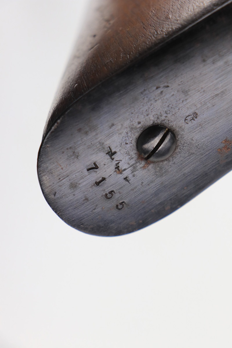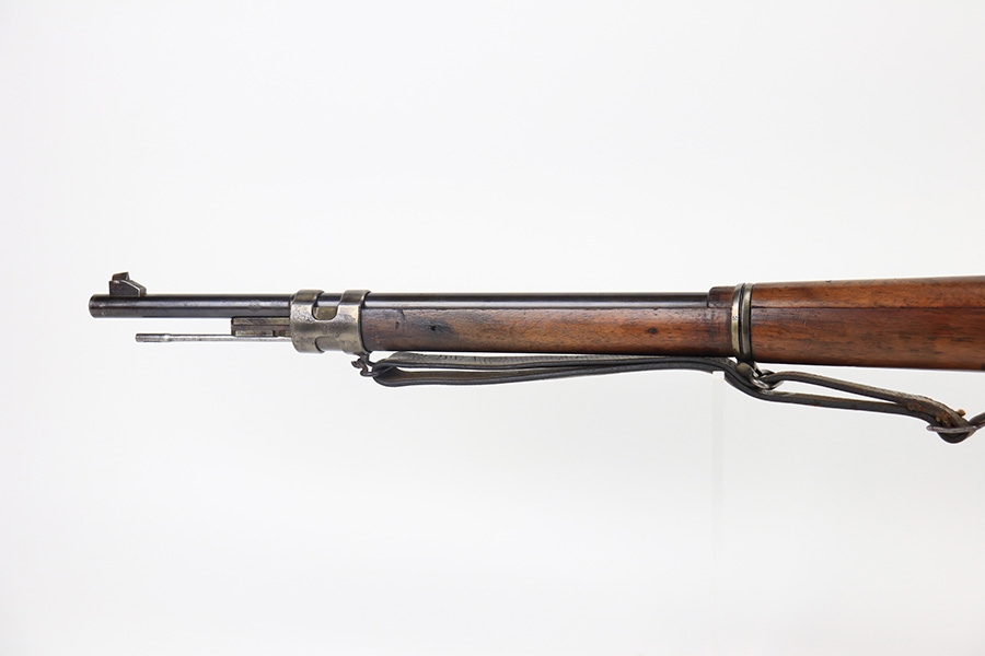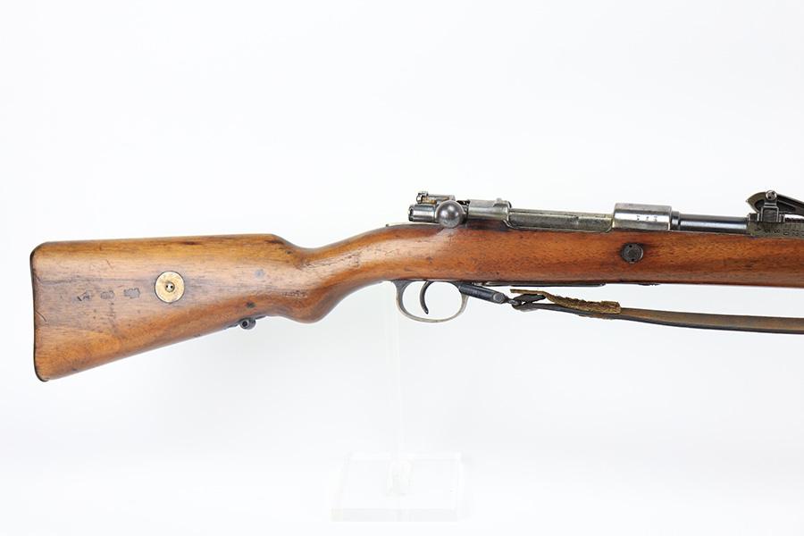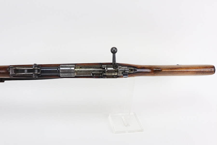2/1/22 – This is a nice example of an Amberg Gewehr 98 rifle issued to the Imperial German military in 1917. The gun is mostly matching (including the stock, rear sight, and butt plate) except for bolt, follower, and floor plate. Comes with an original cleaning rod and leather sling. It has the proper Imperial German proofs throughout, including on the wood stock. Some of the parts have lost most of their finish including the receiver, barrel bands, bolt, floor plate, and trigger group. Small dots of oxidation covering most of the metal parts. There is an area of pitting on the left side of the barrel and on the left side of the front barrel band. Some spotty oxidation and a few small spots of light surface rust on the butt plate. The stock is very nice with only minor dings, dents, and bruises here and there. The bore is shiny with good rifling with very minor pin-pricking in the grooves.