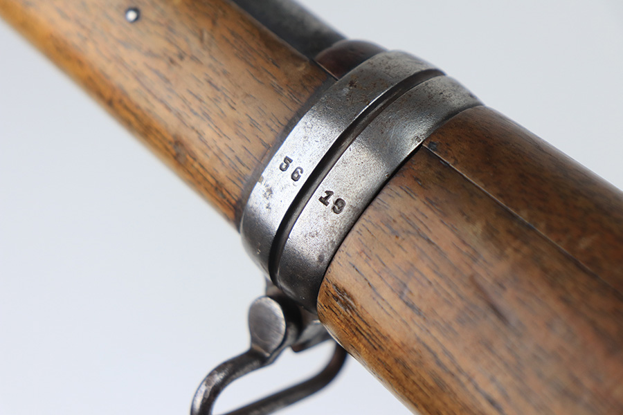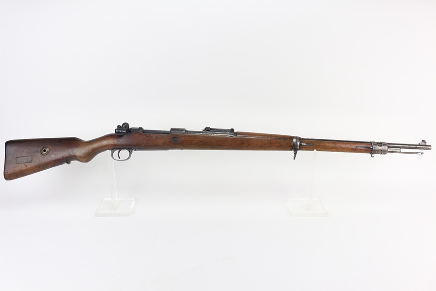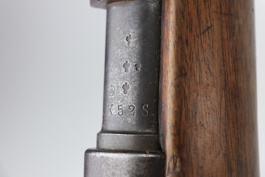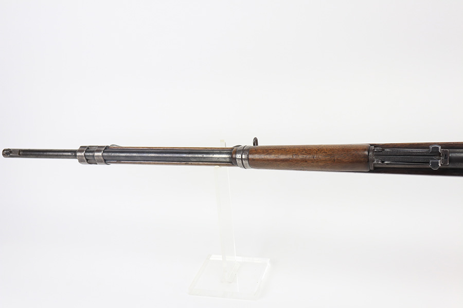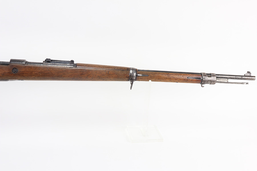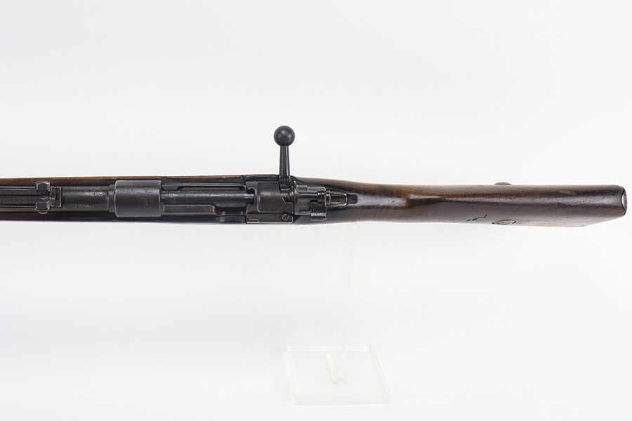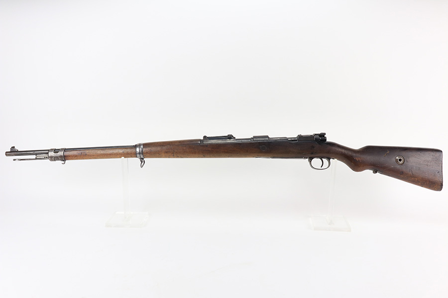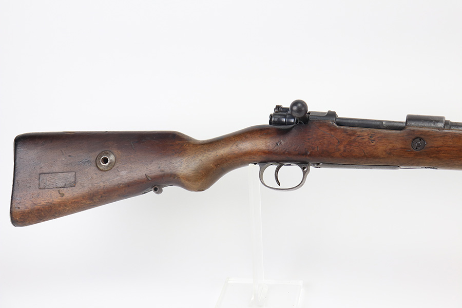 1/28/22 – This is a nice example of an Amberg Gewehr 98. It was initially issued to the Imperial German military in 1917. It has the proper Imperial proofs throughout. It was then reworked and issued to the Nazi military, as evidenced by the Nazi military wafffen proofs on the receiver and the right side of the barrel. The barrel is also marked with a “G Date” Mauser proof, “S/42G”, indicating the barrel was replaced. The wood stock has Imperial proofs but also has Weimar-era military proofs. Comes with a cleaning rod. The gun is entirely matching (including the stock), except for a few small parts at the back of the bolt. There is heavy brown patina and spotty oxidation on virtually all of the metal parts. The stock has noticeable dings, dents, and scratches throughout with a few more noticeable gouges on the butt stock. There is a rectangular wood repair on the right side of the butt stock. The bore is shiny with strong rifling and some minor oxidation near the muzzle.