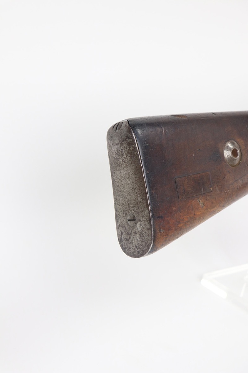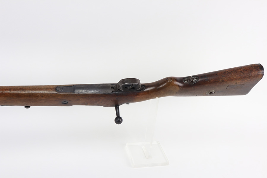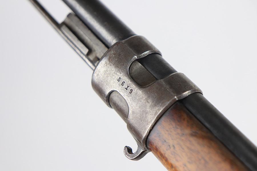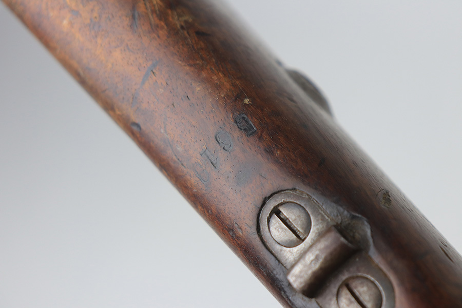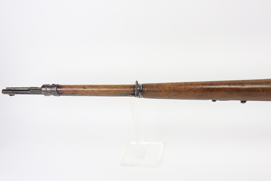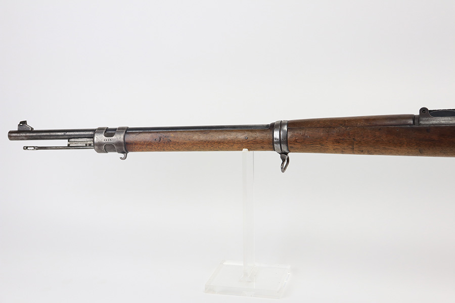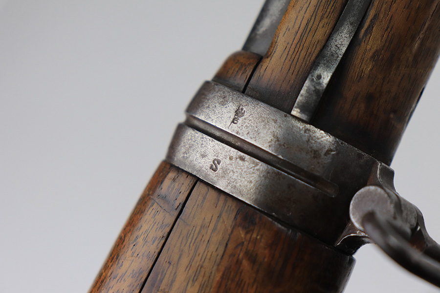 1/28/22 – This is a nice example of an Amberg Gewehr 98. It was initially issued to the Imperial German military in 1917. It has the proper Imperial proofs throughout. It was then reworked and issued to the Nazi military, as evidenced by the Nazi military wafffen proofs on the receiver and the right side of the barrel. The barrel is also marked with a “G Date” Mauser proof, “S/42G”, indicating the barrel was replaced. The wood stock has Imperial proofs but also has Weimar-era military proofs. Comes with a cleaning rod. The gun is entirely matching (including the stock), except for a few small parts at the back of the bolt. There is heavy brown patina and spotty oxidation on virtually all of the metal parts. The stock has noticeable dings, dents, and scratches throughout with a few more noticeable gouges on the butt stock. There is a rectangular wood repair on the right side of the butt stock. The bore is shiny with strong rifling and some minor oxidation near the muzzle.