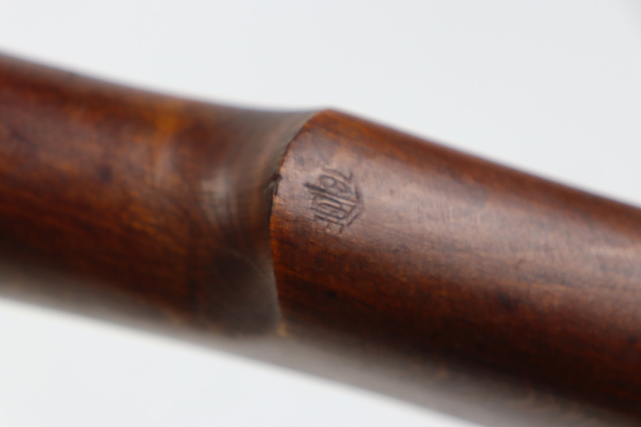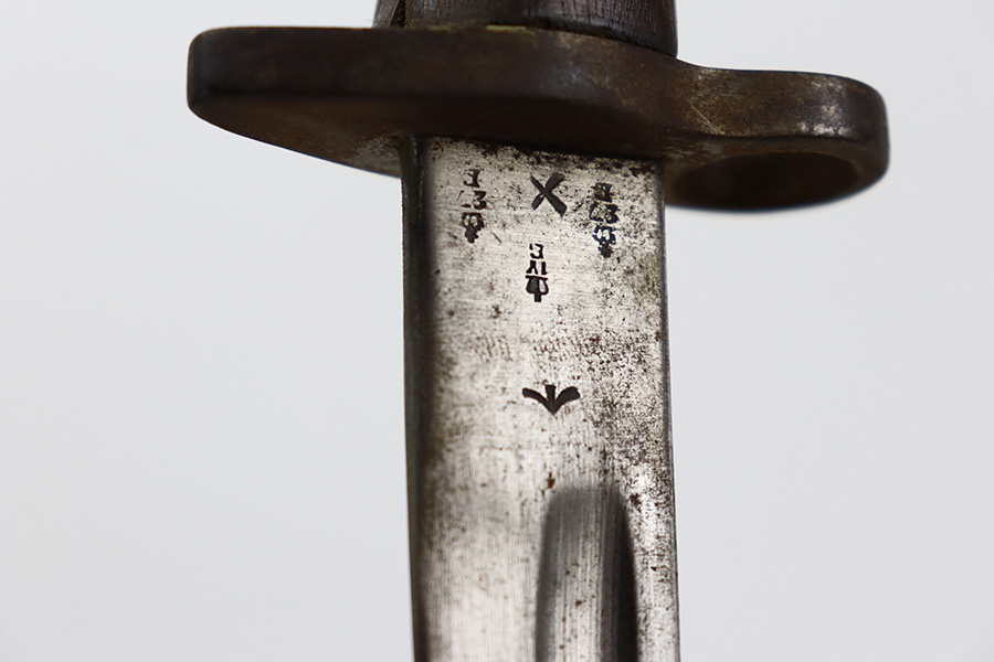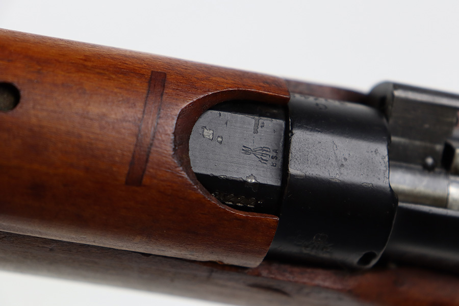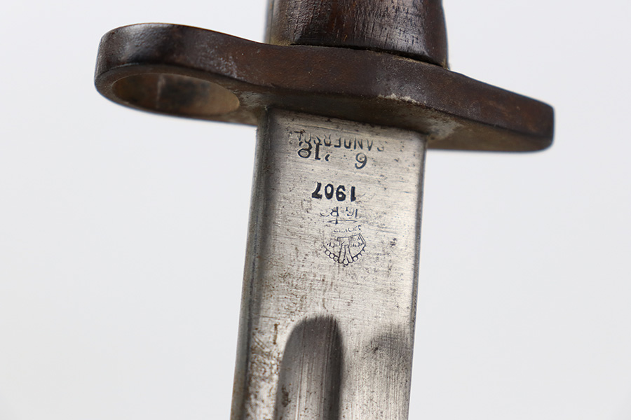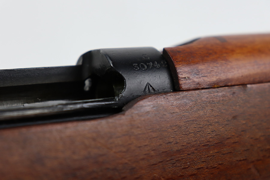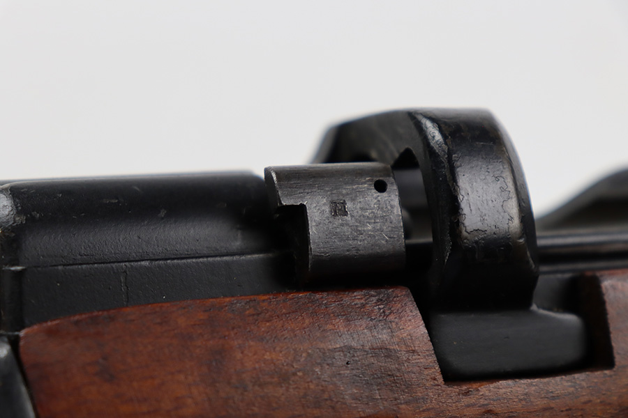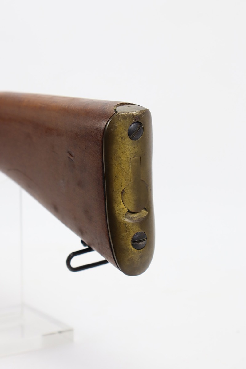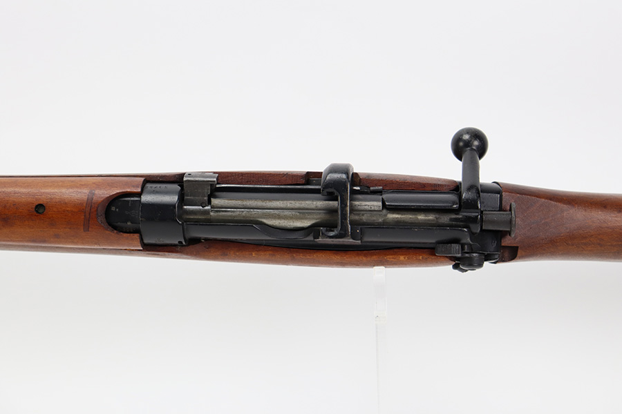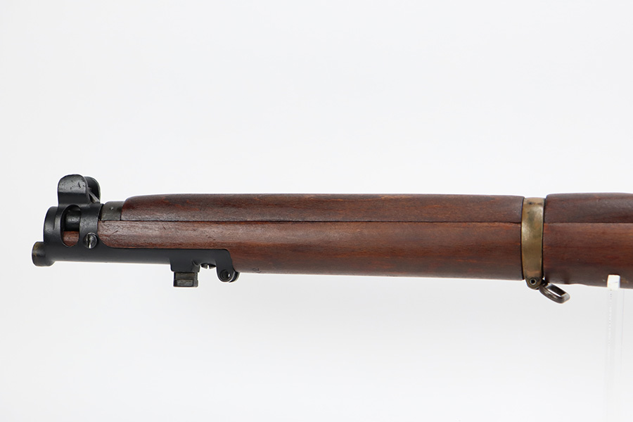 7/26/23 – This is an excellent example of a BSA Enfield SHTLE III* Rifle issued to the British military in 1917. It is all matching and has the proper British proofs throughout. There is an “FTR 1953” marking on the receiver, indicating it was Factory Thorough Repaired or Reconditioned in 1953. It comes with a 1907-bayonet, leather scabbard, and canvas frog. Unfortunately, the leather scabbard is torn in two pieces (the leather is fairly dry and brittle). The gun itself has retained about 96% of its black enamel finish with just minor high edge in general. Minty wood stock. Mint bore.