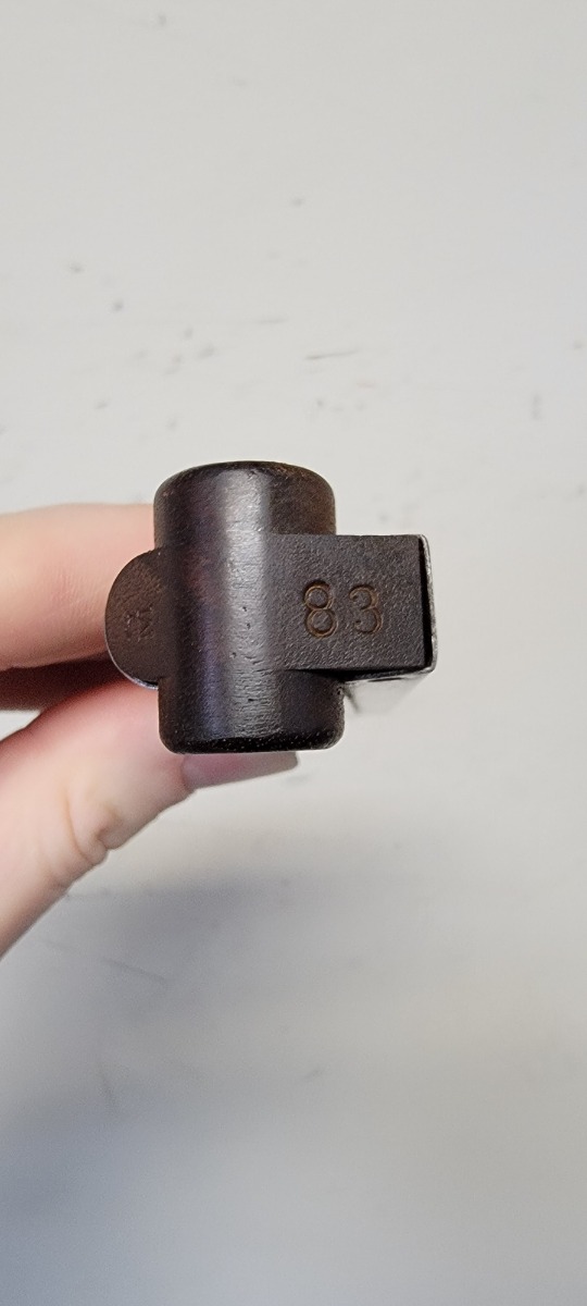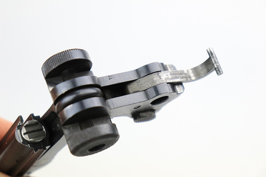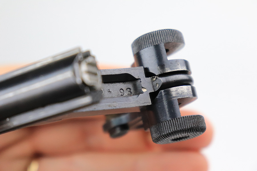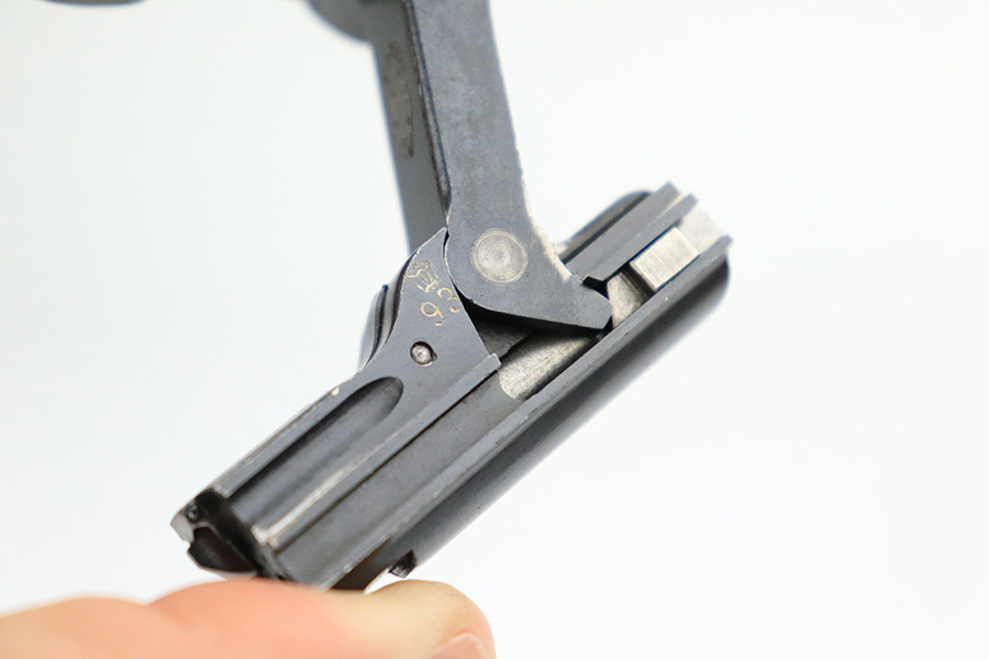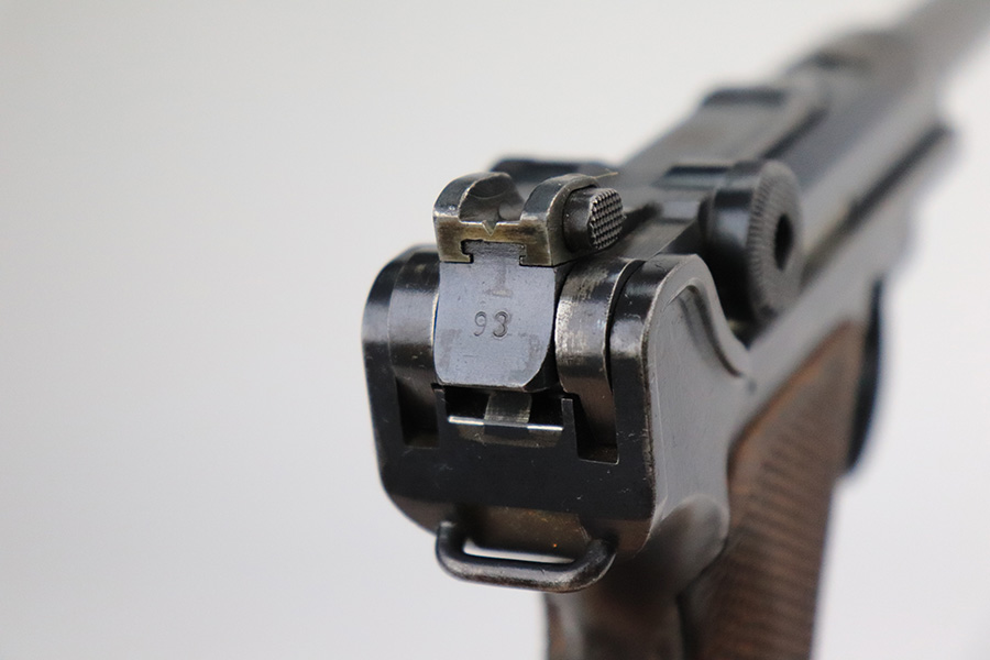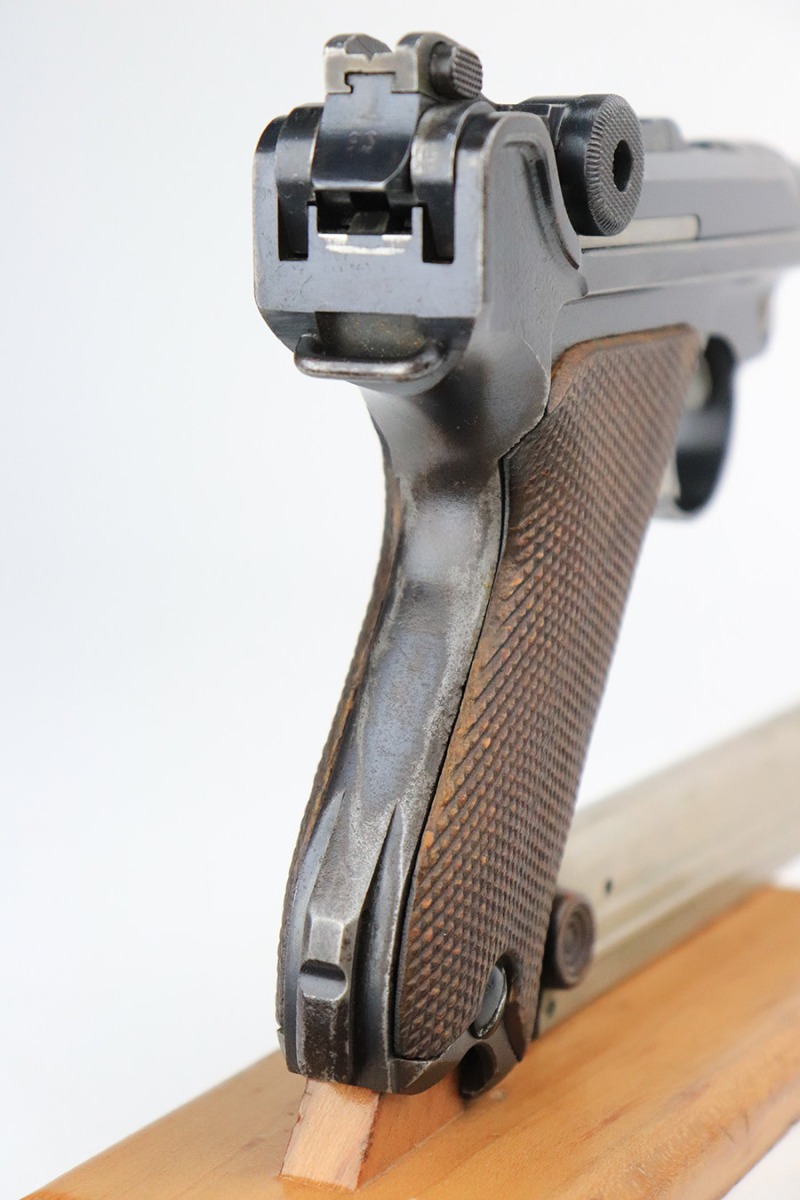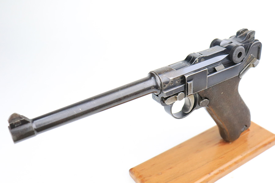 11/23/22 – This is a nice example of a DWM Navy Luger issued to the Imperial German Navy in 1917. The gun is all matching (except for the firing pin which is un-numbered) and has the proper “Crown M” Imperial Navy acceptance proofs. It has retained roughly 80% of its original bluing. Most of the finish loss is on the chamber, around the side plate, and on both grip straps (where there is also noticeable pin-pricking). Light scratchy wear and minor oxidation along the barrel. Areas of very light pin-pricking throughout. One very light scratch on the side plate. Comes with slightly worn un-numbered wood grips. Comes with a mismatched Navy-style magazine, but we do not believe the wood bottom is original. The rifling in the bore is a bit worn with minor pitting throughout.