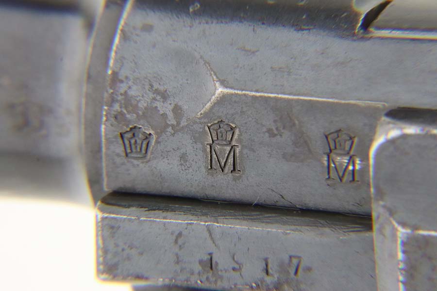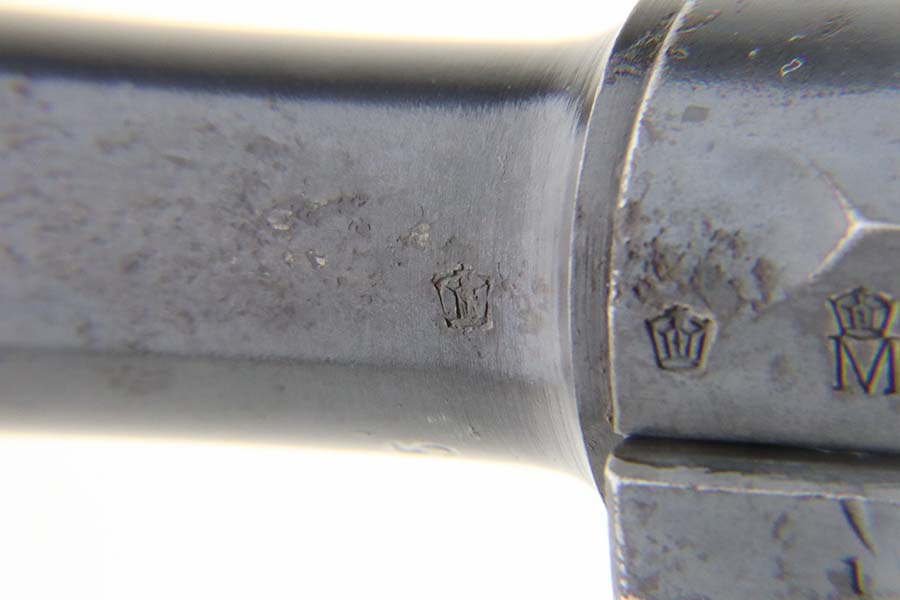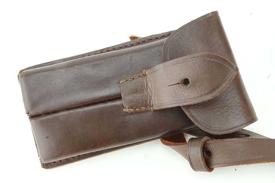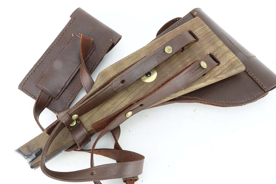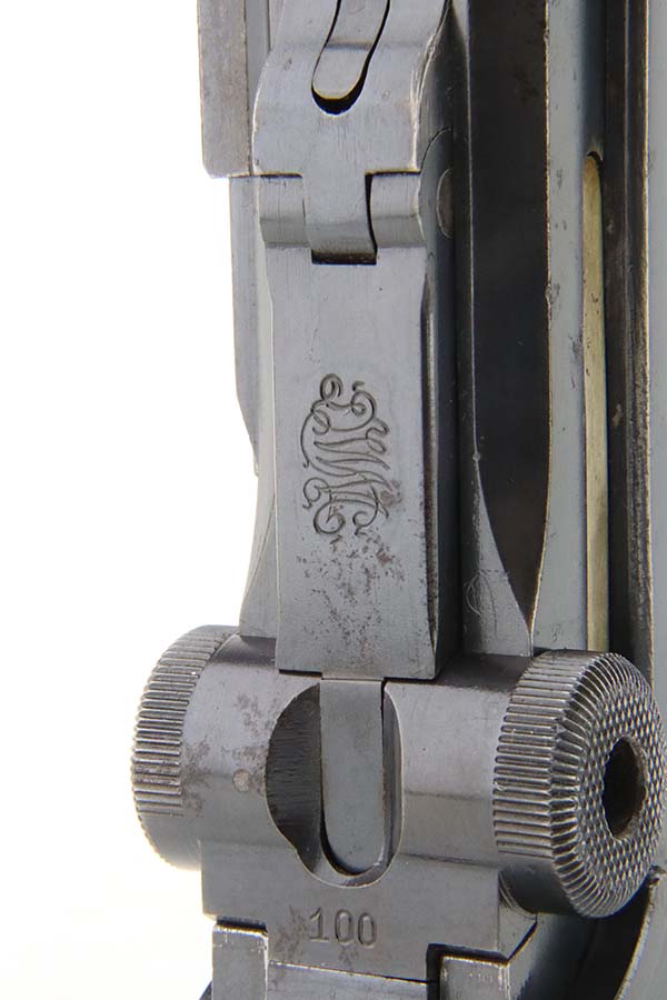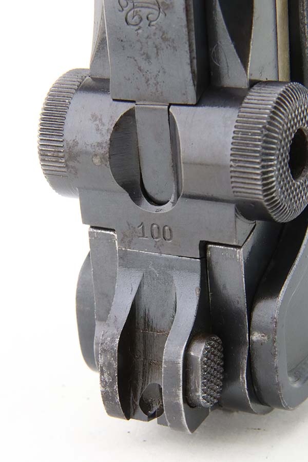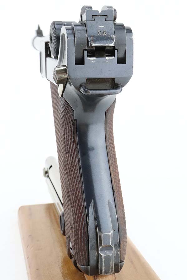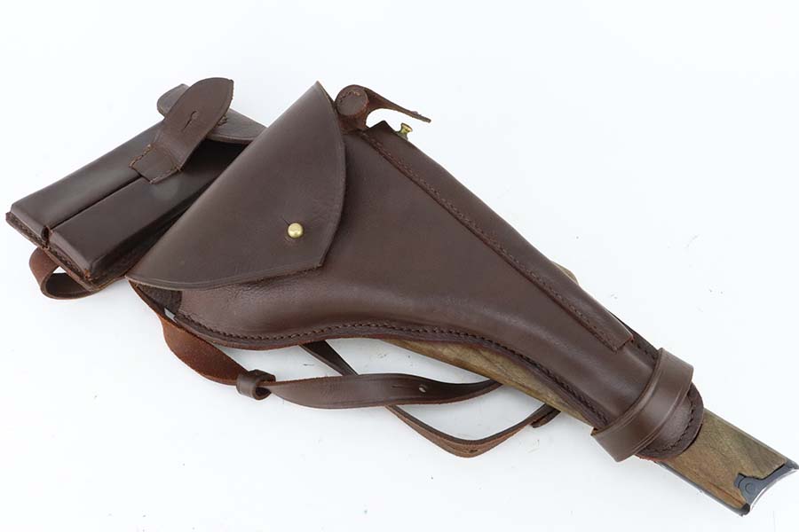 3/12/24 – This is a very nice example of a DWM Navy Luger issued to the Imperial German Navy in 1917. All matching with the proper “Crown M” Navy acceptance proofs. The gun comes as a complete rig with reproduction accessories: holster, wood stock, magazine pouch, cleaning rod, and shoulder strap. Comes with one magazine. The gun itself has retained about 97% of its original finish. While there is very little actual finish loss, there are areas of light spotty oxidation and minor pitting here and there. Fitted with matching-numbered wood grips. Excellent bore with great rifling.