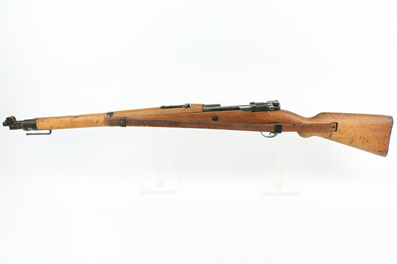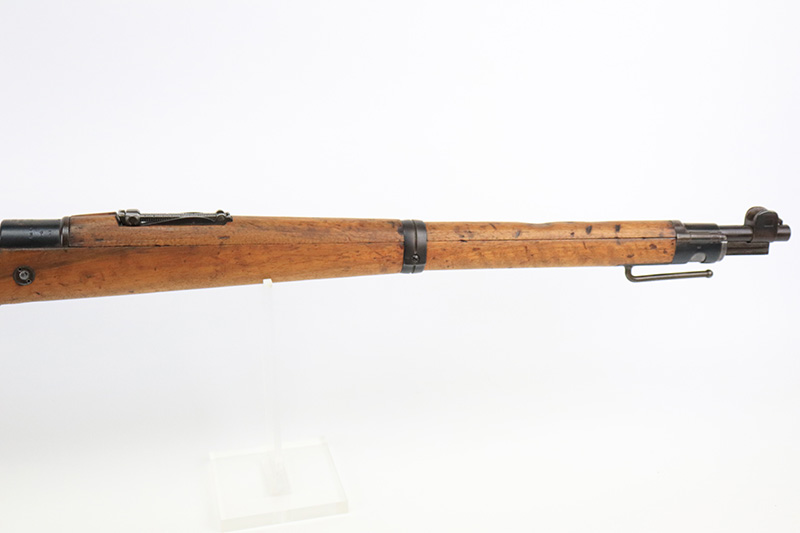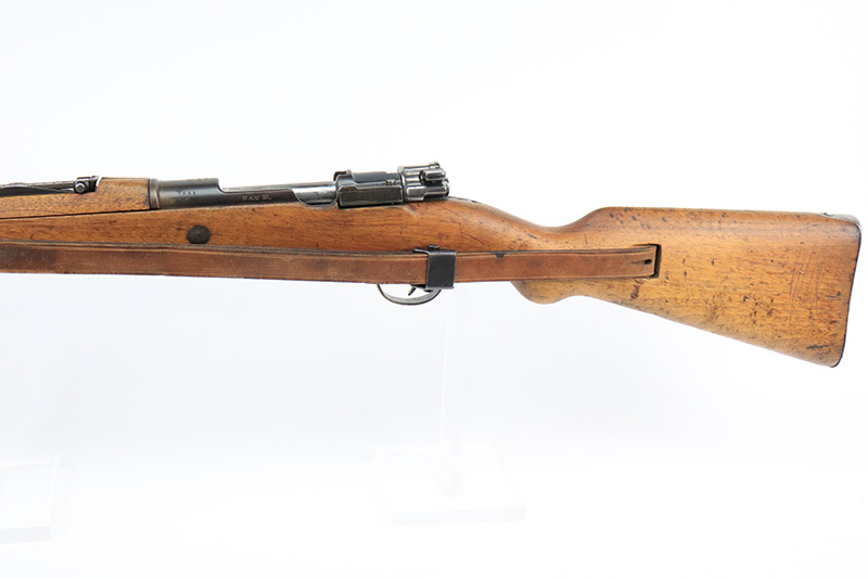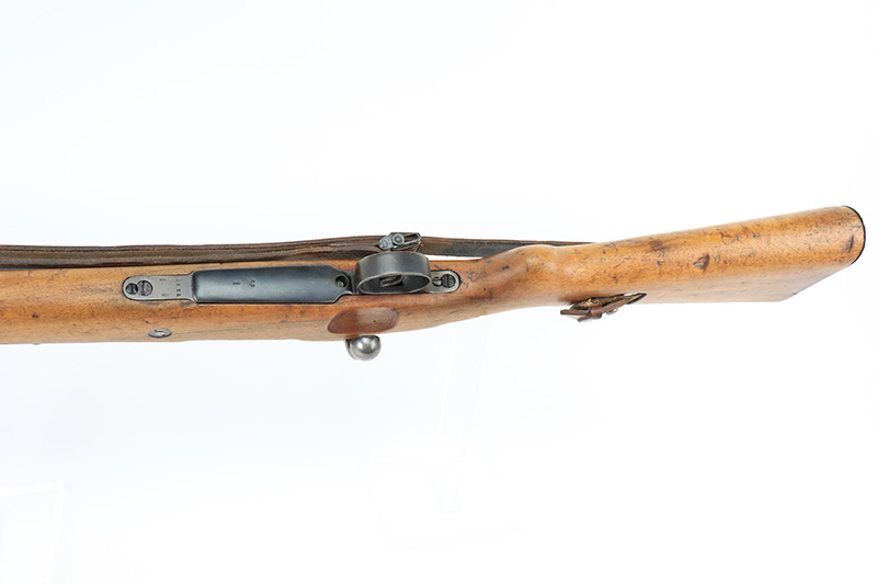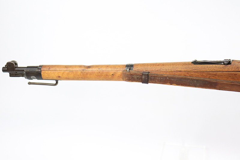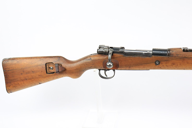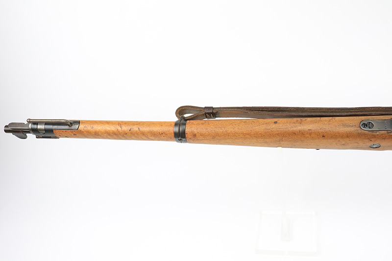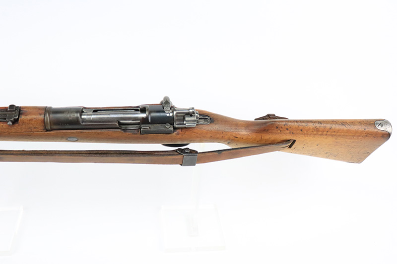 10/12/22 – This is a very nice example of an Erfurt K98 Carbine issued to the Imperial German military in 1917. It has the proper military acceptance proofs throughout. It appears to be all matching. However, the number on the butt plate is “72”, and it looks like the other two numbers are ground. So it is likely matching, but we can’t say for sure. The number on the stock appears to be matching as well, but the number is slightly obscured. No import marks. The gun is in very nice condition overall. There is minor wear and brown patina on the receiver and some minor wear on the front barrel band. The stock is nice with dings and bruises here and there, especially on the butt stock. It appears to have been lightly sanded. Excellent bore with strong rifling and just a hint of frosting in the grooves. Comes with a leather sling.
