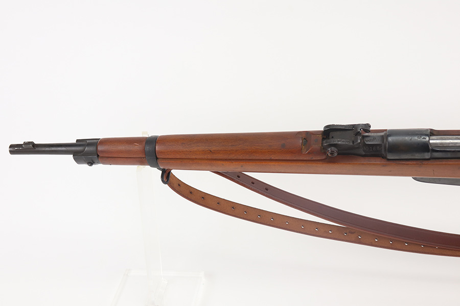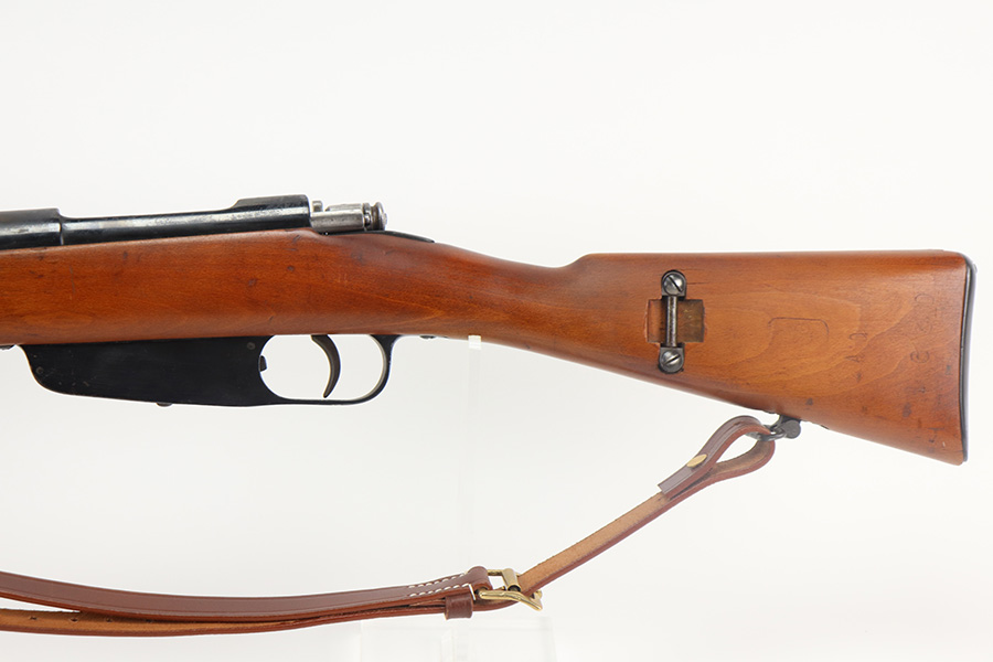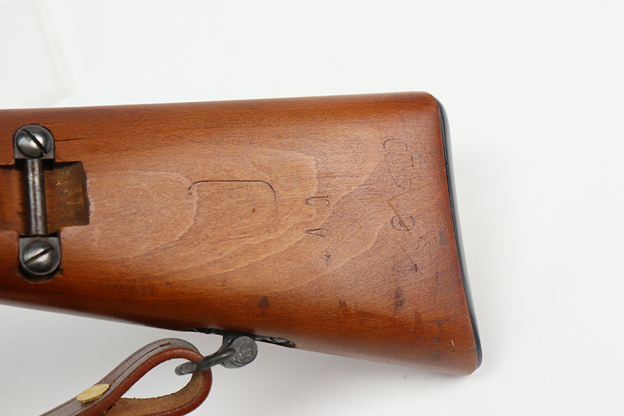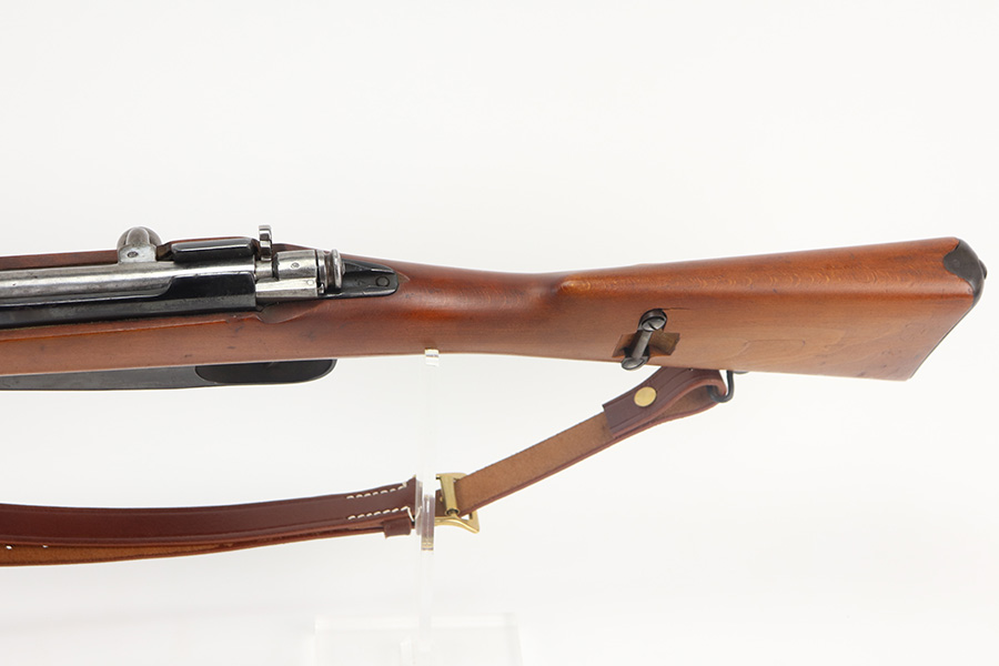6/15/21 – This is a very nice example of an Italian Brescia Model 1891 Carcano Carbine, manufactured in 1917. The gun is all matching and has the proper proofs. There are areas of minor spotty oxidation here and there and some dulling in the finish on the receiver. The stock is excellent and matches the gun. The markings are a little faint, so it may have been lightly sanded. The rifling in the bore is strong, but there is pin-pricking in the grooves. The gun comes with an excellent reproduction leather sling.