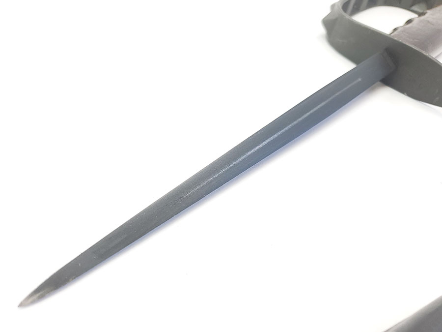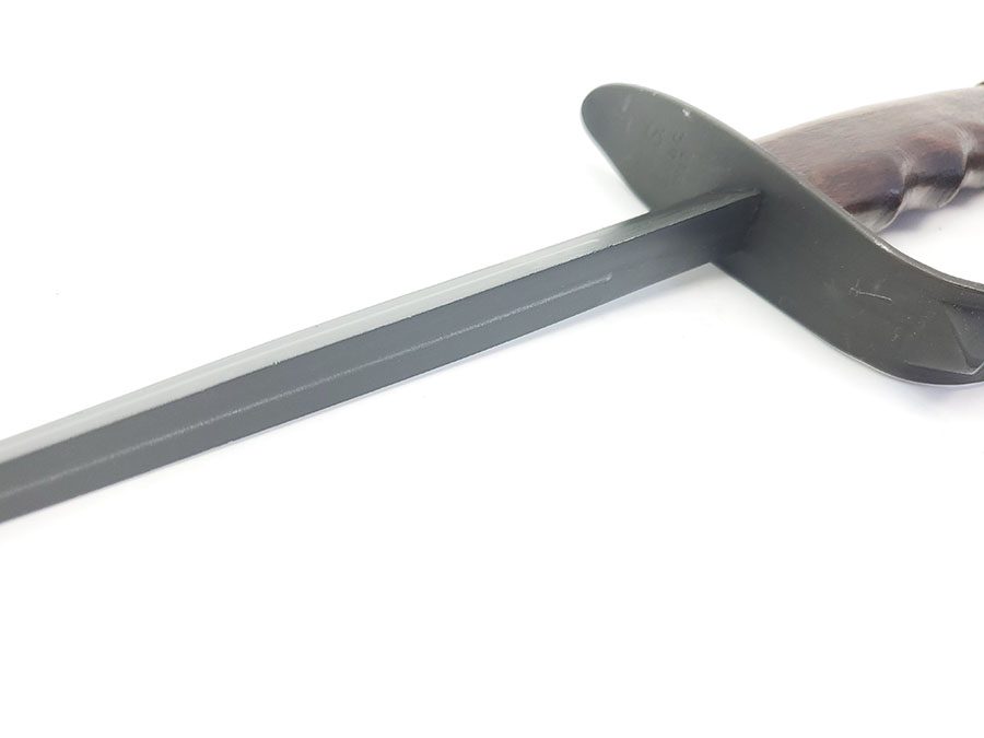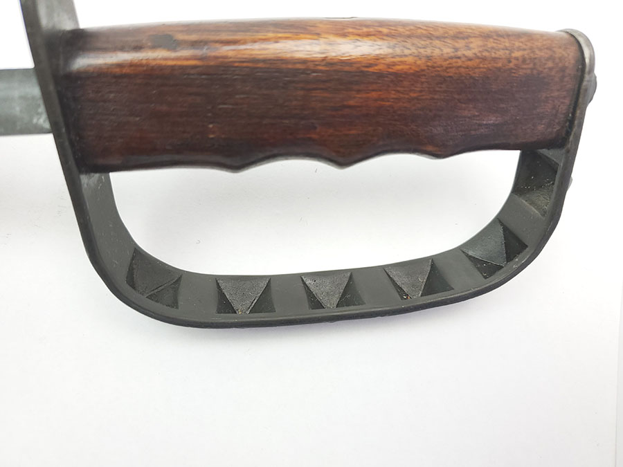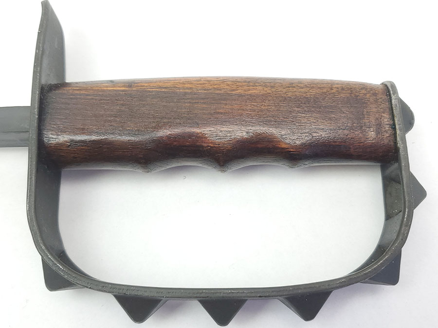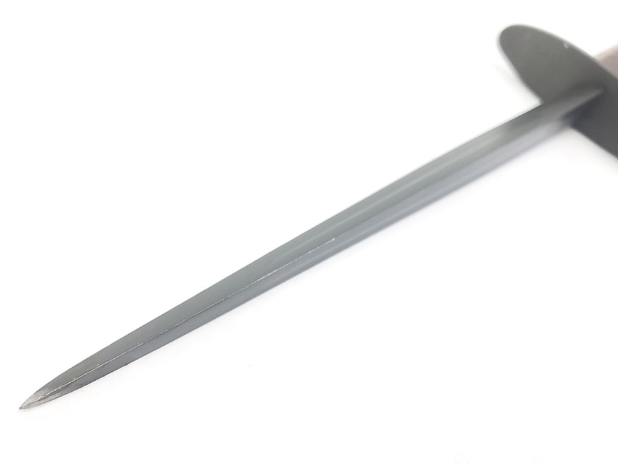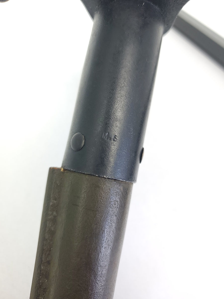 6/26/20 – This is an original 1917 L.F.&C. US fighting knife from WW1. The knife comes with an original scabbard, which is maker marked by JEWELL and dated 1918. The tip of the scabbard is very slightly bent, but this doesn’t affect functionality. Excellent condition overall with very nice bluing and proper stamps on the metal ends. The blade is similarly excellent, with very minimal finish loss on the blade, only light scabbard wear. The wood handle has one small chip – shown in photos. Very hard to find in this condition.