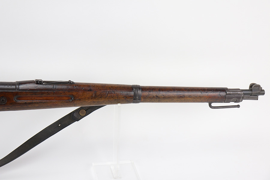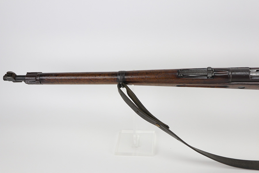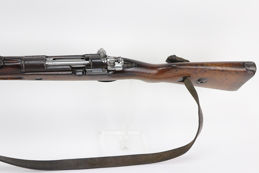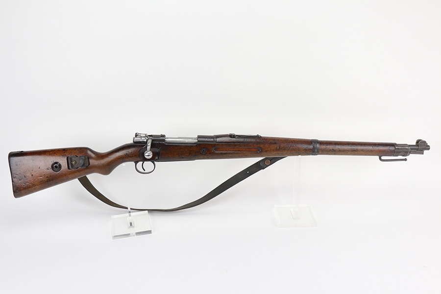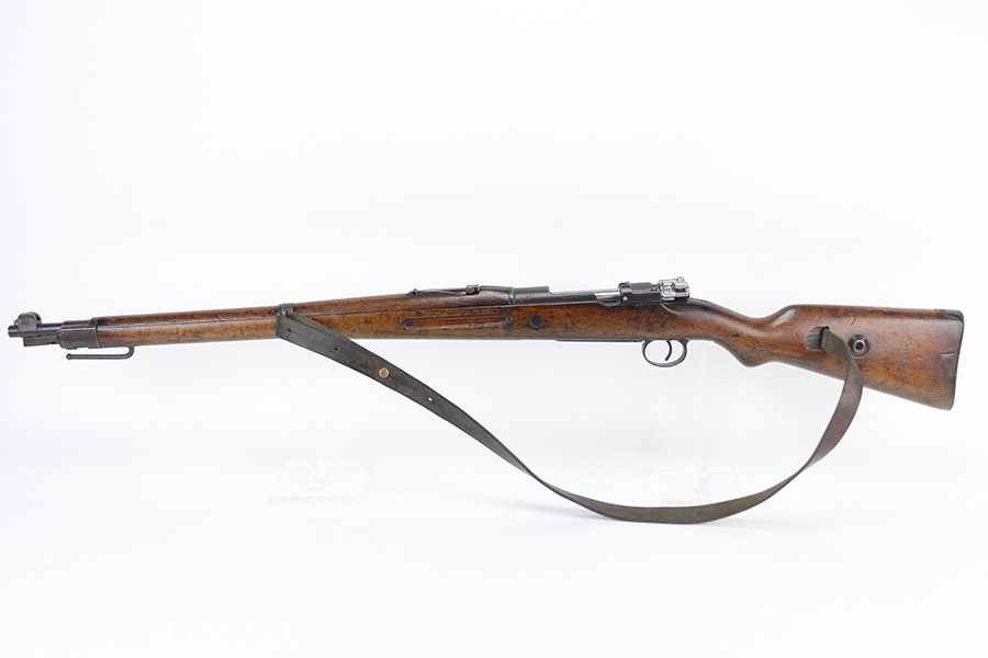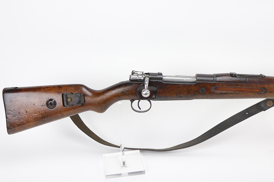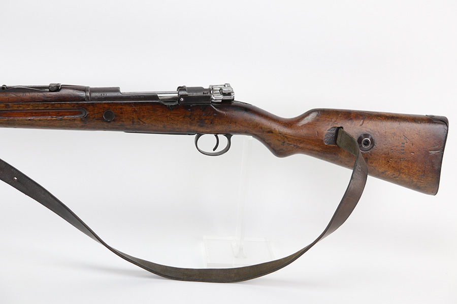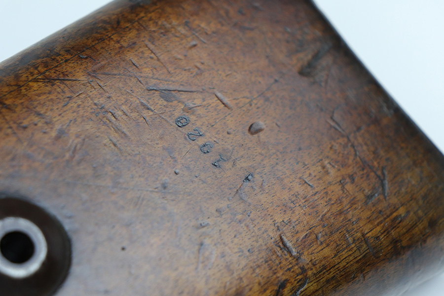 11/30/21 – This is a nice example of an Erfurt K98 that was issued to the Imperial German Army in 1918. It is mostly matching except for the stock and the front sight. The bolt is un-numbered. It has the proper Imperial military proofs and Erfurt proofs throughout. The chamber is double-dated “1918” and “1920”, indicating the gun was reworked after WW1, likely for re-issue to a police force. Comes with a period-correct leather sling. Generally, there is minor wear along the high edges and tiny dings throughout. While there isn’t a ton of actual finish loss, there is noticeable brown patina covering the gun. The stock is nice but has noticeable dings, dents, and scratches throughout. The bore has weak rifling with heavy oxidation and minor pitting throughout.