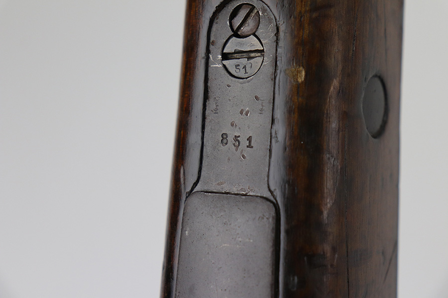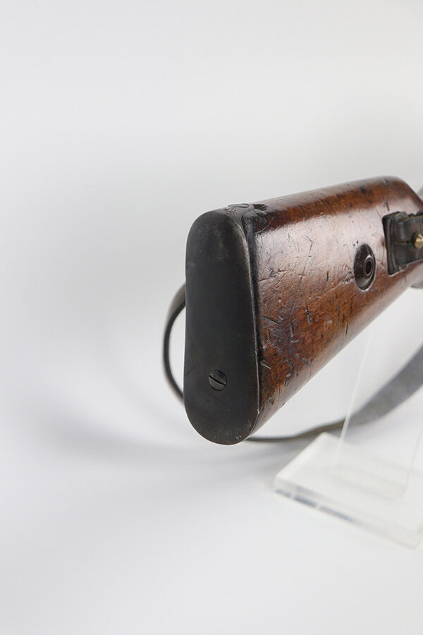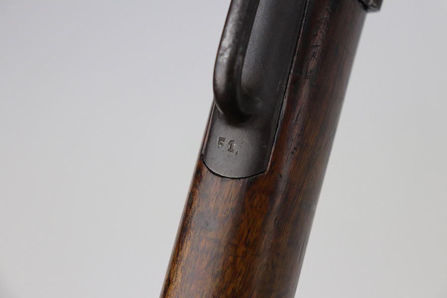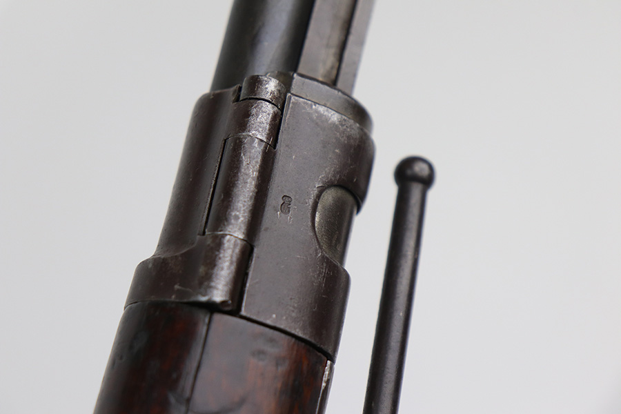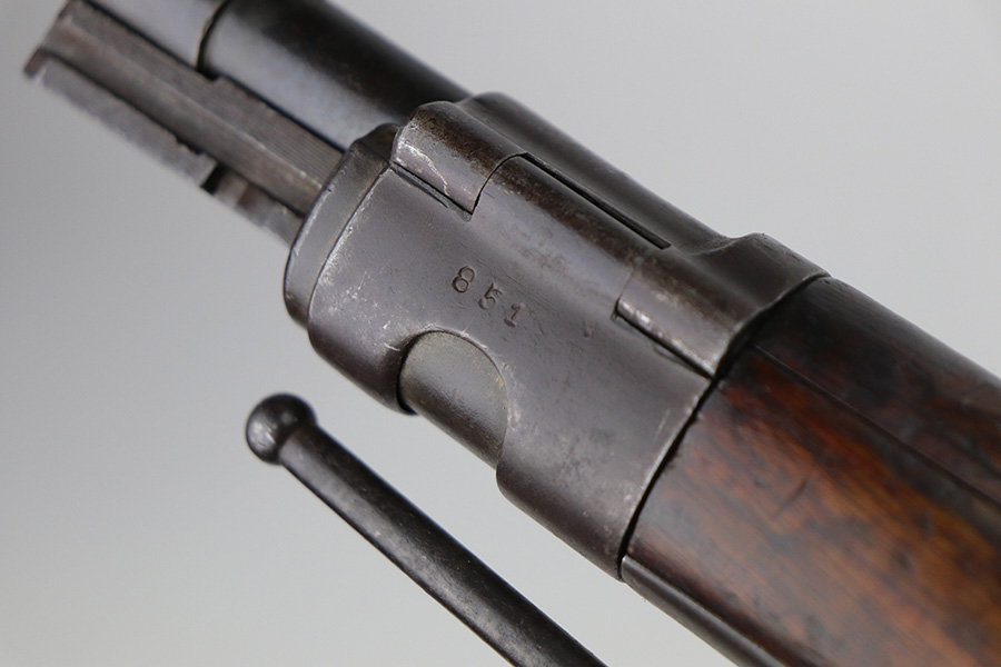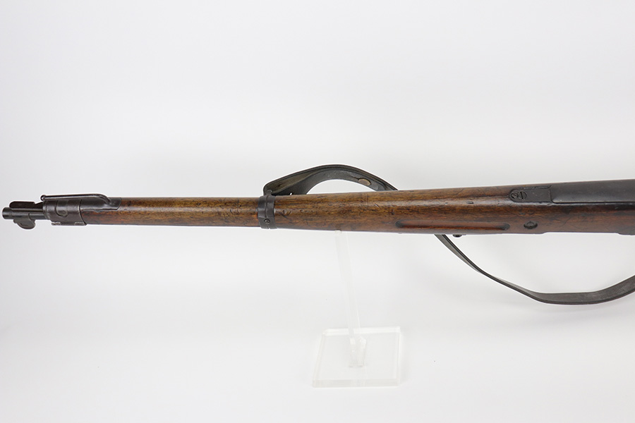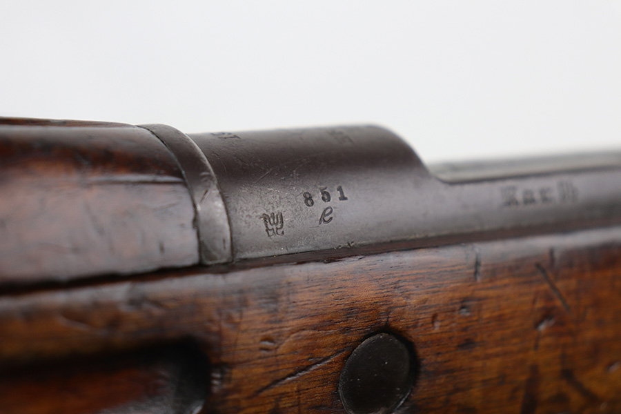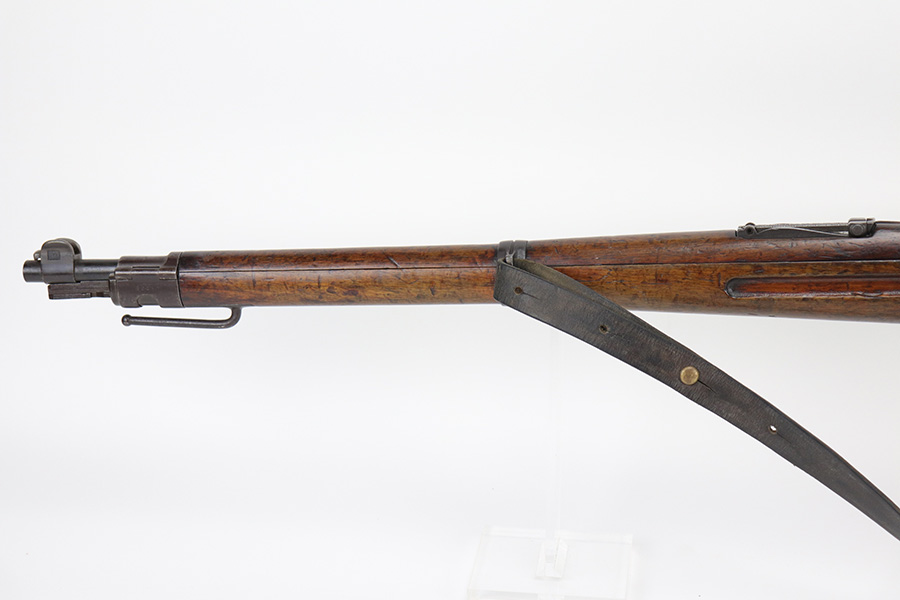 11/30/21 – This is a nice example of an Erfurt K98 that was issued to the Imperial German Army in 1918. It is mostly matching except for the stock and the front sight. The bolt is un-numbered. It has the proper Imperial military proofs and Erfurt proofs throughout. The chamber is double-dated “1918” and “1920”, indicating the gun was reworked after WW1, likely for re-issue to a police force. Comes with a period-correct leather sling. Generally, there is minor wear along the high edges and tiny dings throughout. While there isn’t a ton of actual finish loss, there is noticeable brown patina covering the gun. The stock is nice but has noticeable dings, dents, and scratches throughout. The bore has weak rifling with heavy oxidation and minor pitting throughout.