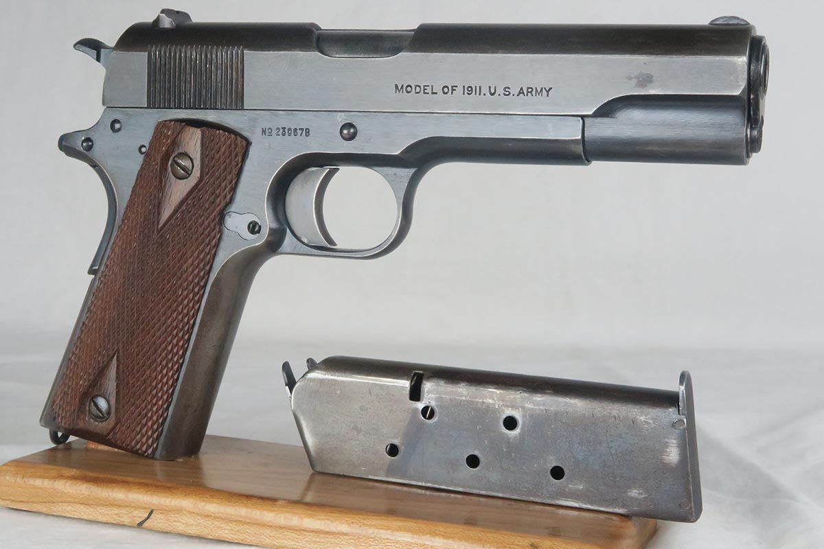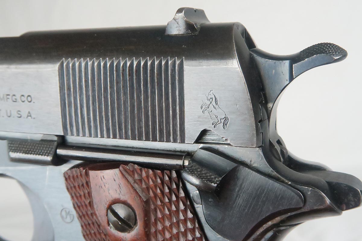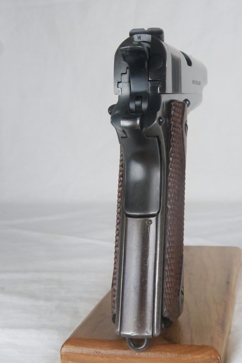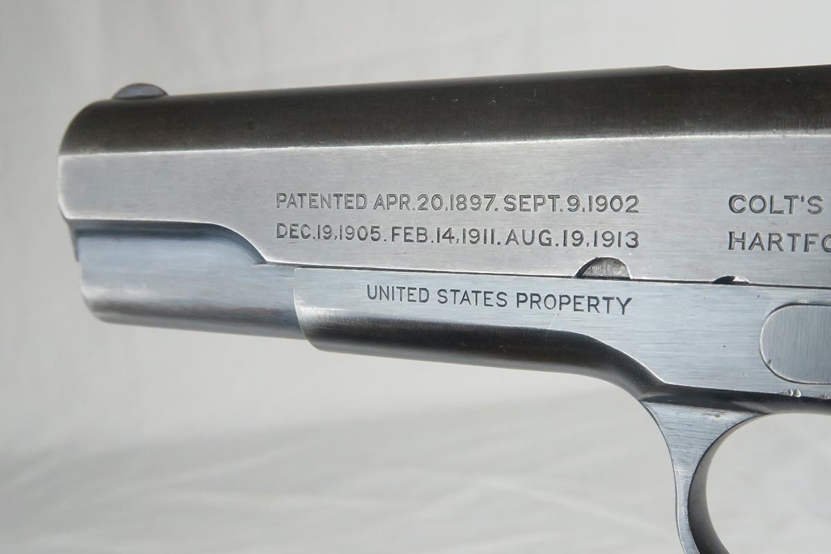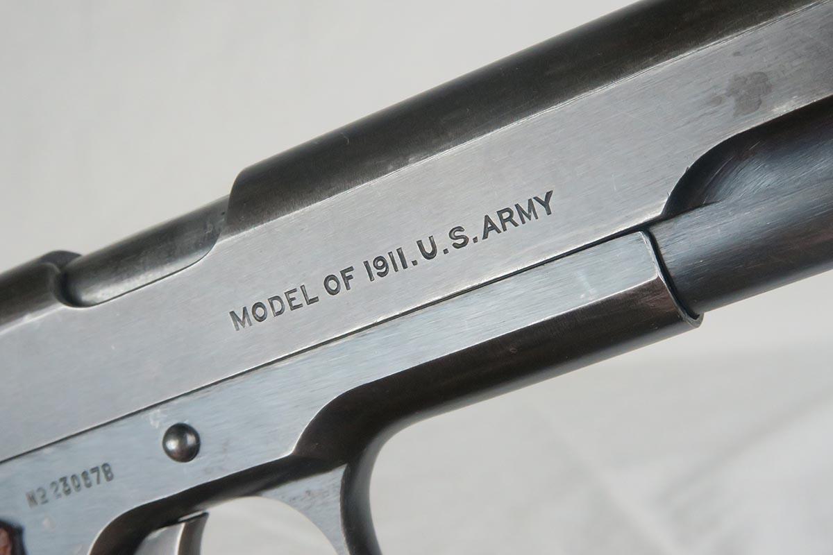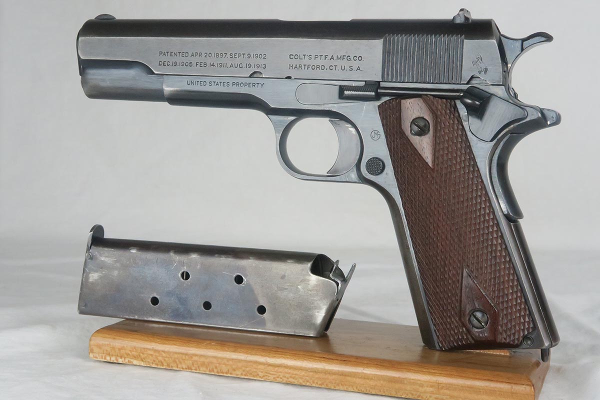 11/17/17 – This is an all original and correct Colt 1911 that was manufactured in 1918. Bluing rates at 85-90% with a nice slide but notable thinning on the straps. Correct H P barrel. Excellent grips. Bore shows some corrosion throughout the grooves.