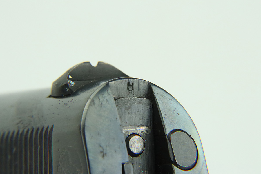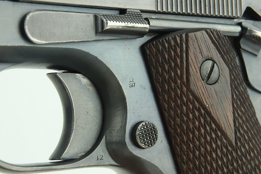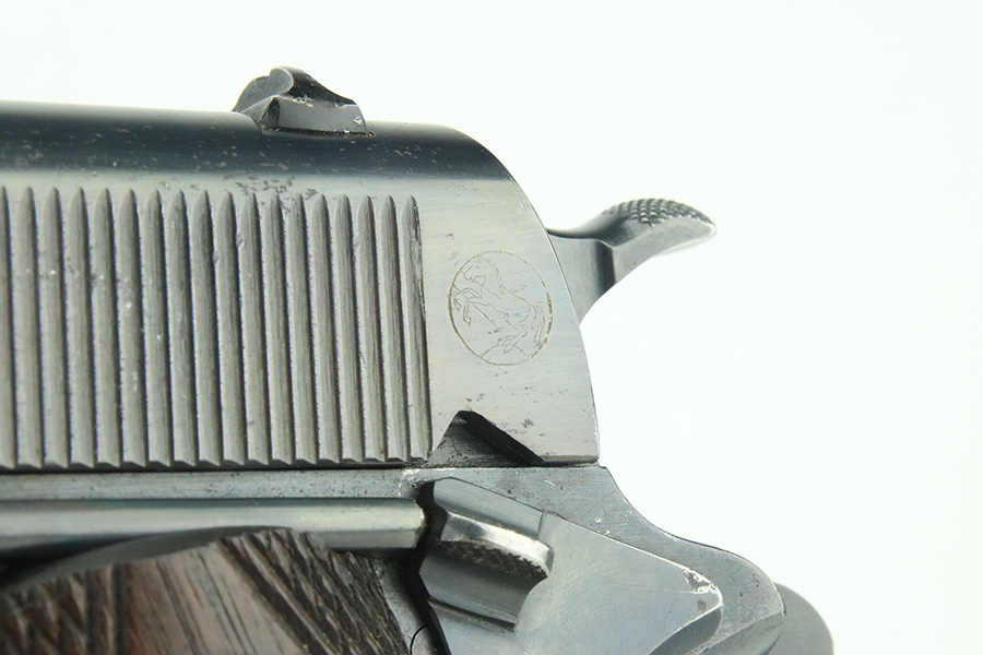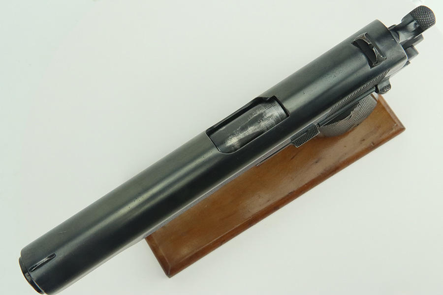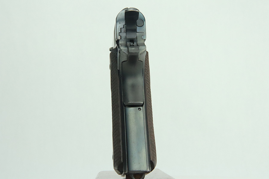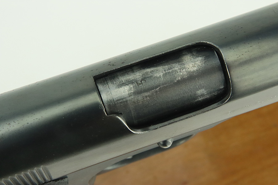 3/14/24 – This is a very nice example of a Colt Model 1911 issued to the US military in 1918. Intertwined “HP” Colt barrel. The entire gun has been re-blued, and there is very little finish loss. There are just tiny scratches and handling marks here and there and a small area of discoloration on the right side of the frame. Fitted with excellent period-correct wood grips and comes with a proper two-tone magazine. The bore has strong rifling, but there is light freckling in the grooves.