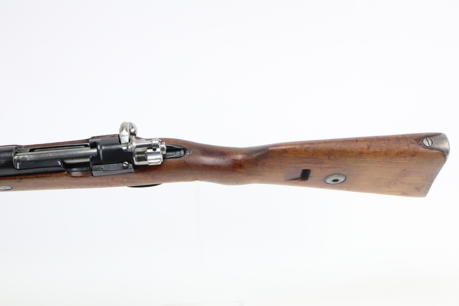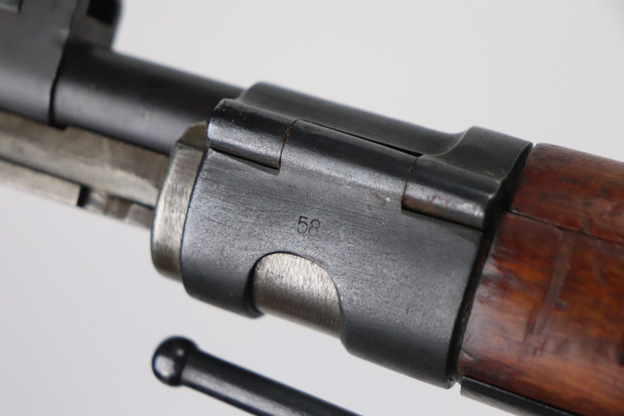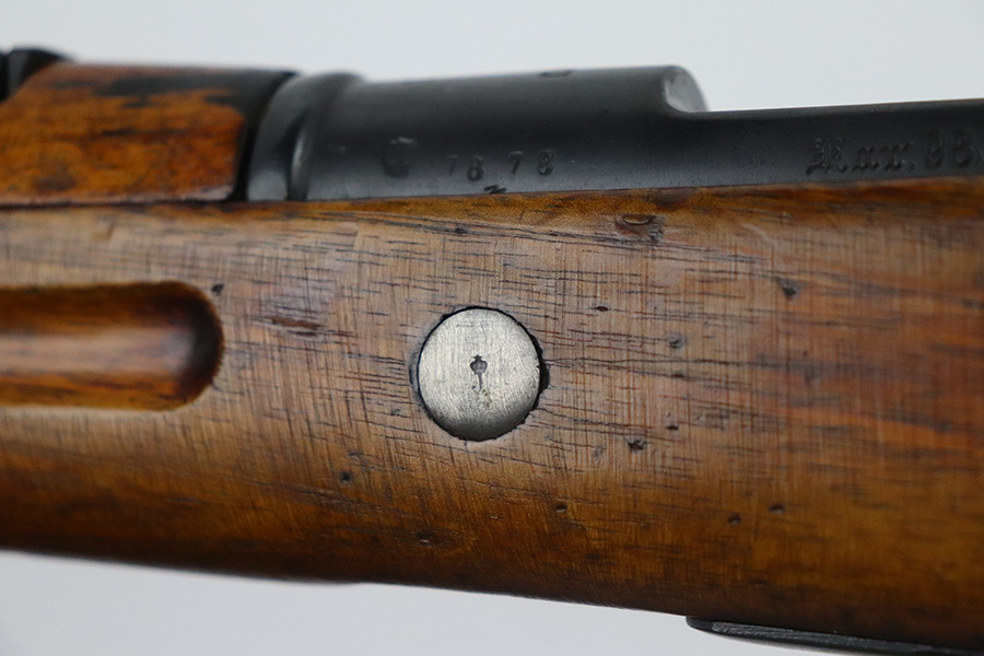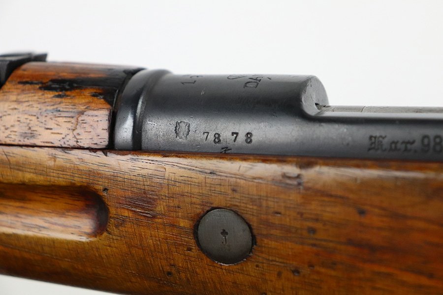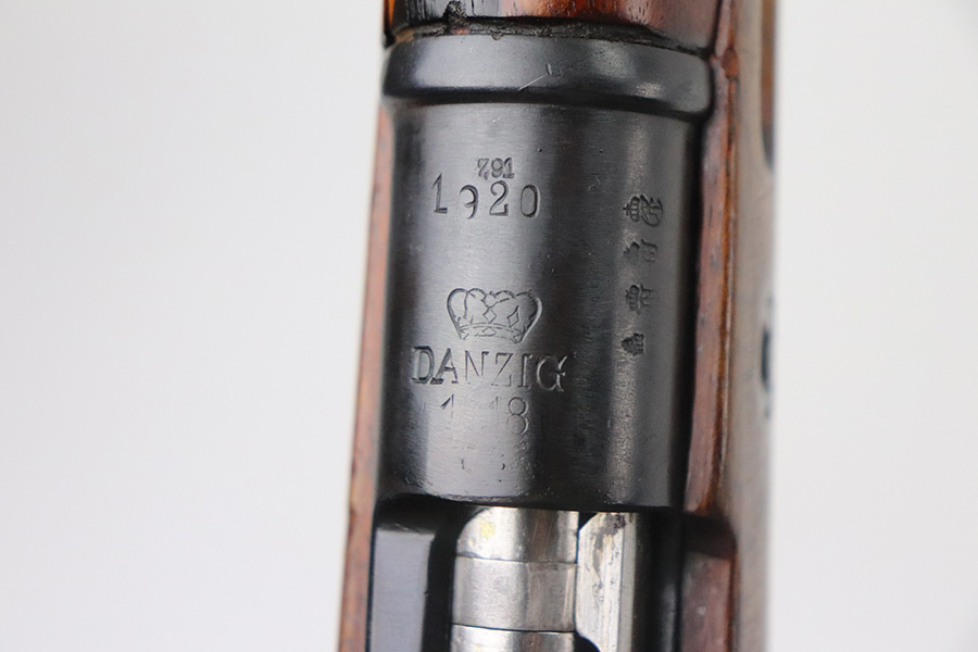 7/2/21 – This is an excellent example of a scarce Danzig Karabiner 98 AZ issued to the Imperial German Army in 1918. It is mostly mismatched, but has the proper Imperial proofs throughout. It also has a “1920” stamp on the receiver and on the stock. This is a government property mark that indicated the gun remained in government service after the war. This was required by Germany to comply with the Treaty of Versailles. The metal parts are excellent as the gun has been refinished. The stock is numbered and Imperial-proofed, but mismatched to the gun. There are dings, dents, and scratches throughout. Some areas of light scratching that indicate the gun may have been very lightly sanded. The bore is very nice – shiny with strong rifling with minor frosting in the grooves.