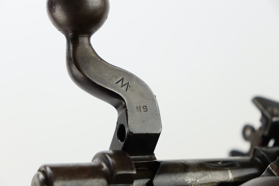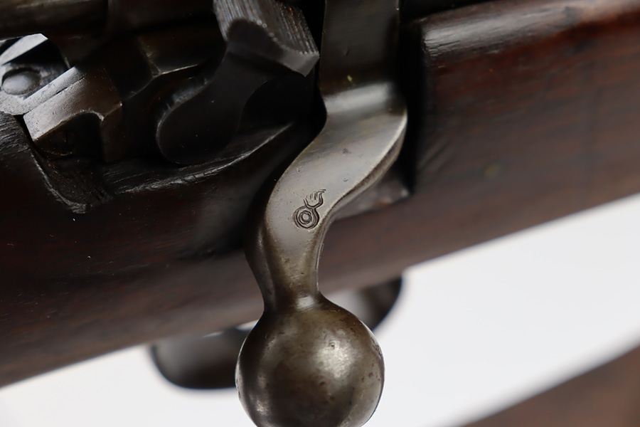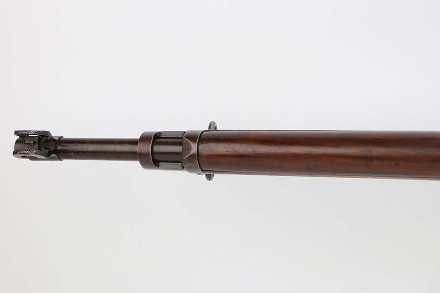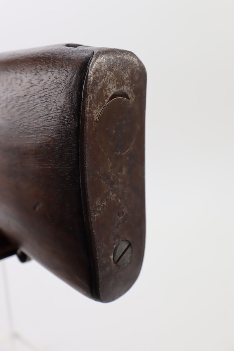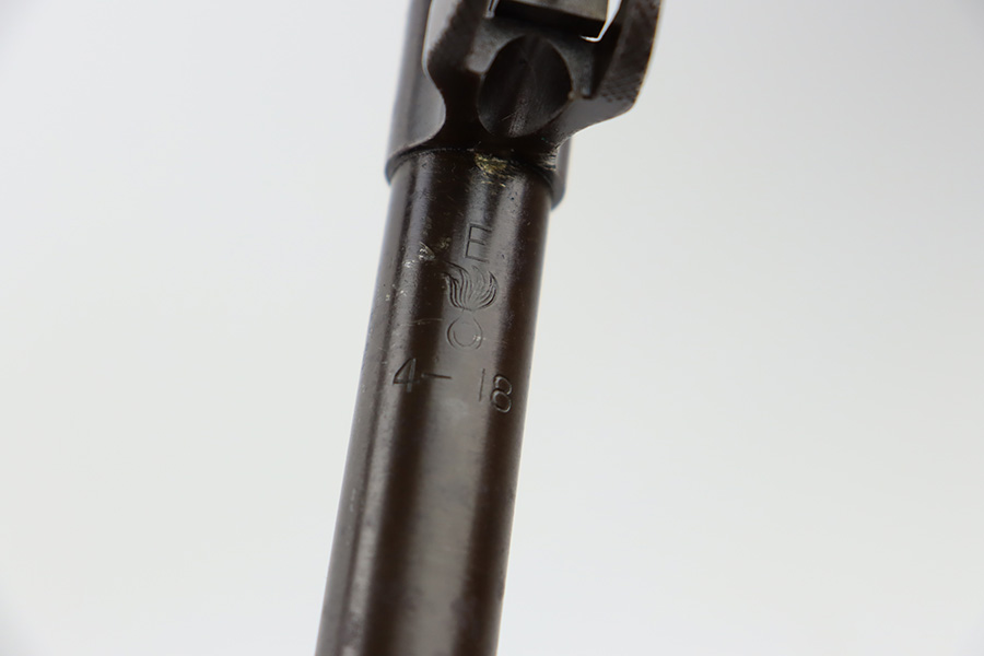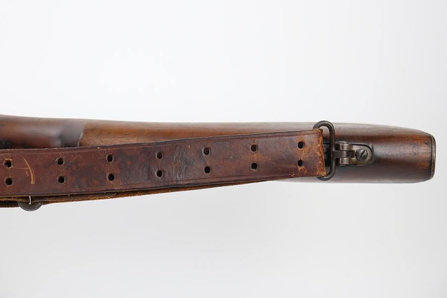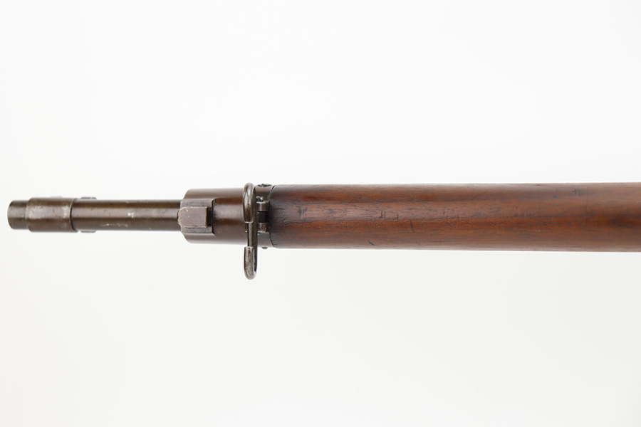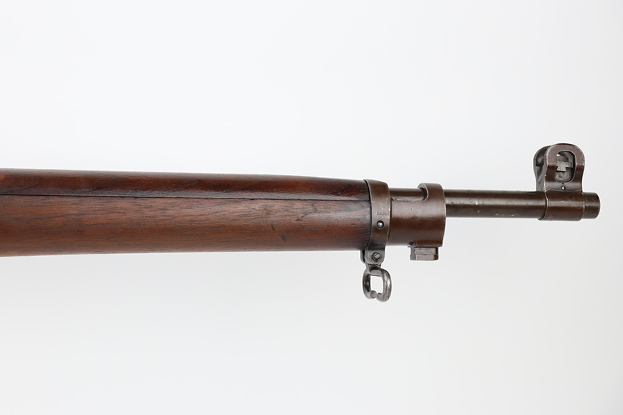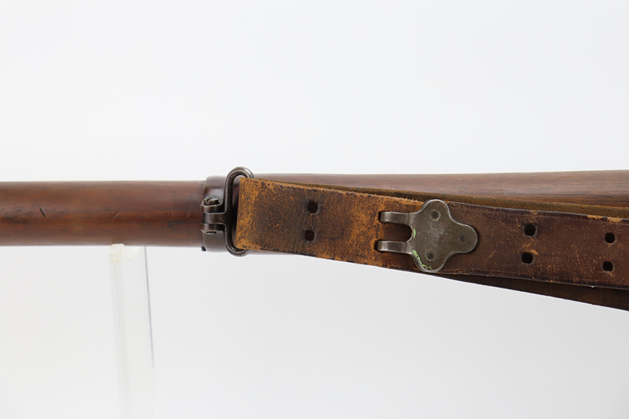 10/6/23 – This is a nice example of an Eddystone Model 1917 rifle issued to the US military in 1918. It has the proper military acceptance proofs throughout. Eddystone barrel dated 4-18. All Eddystone parts except for the bolt, which is Winchester. The finish rates roughly 50% with obvious thinning and light brown patina throughout. Spotty oxidation on the butt plate. Excellent wood furniture. The bore has good rifling, but there are some areas of pin-pricking and surface oxidation here and there. Comes with a 1944-dated leather sling.