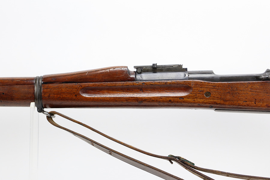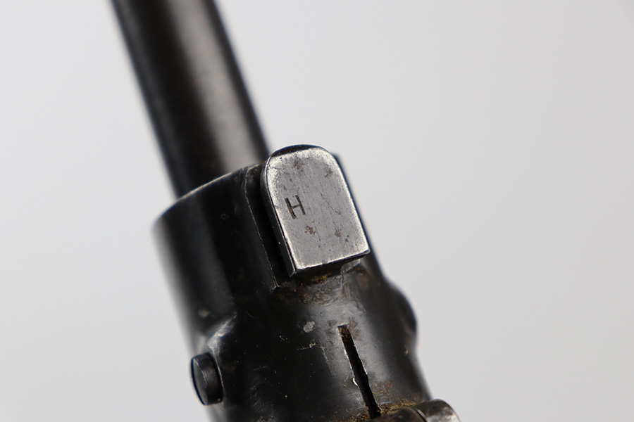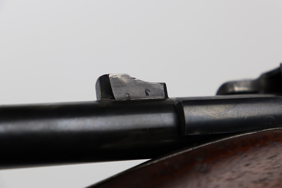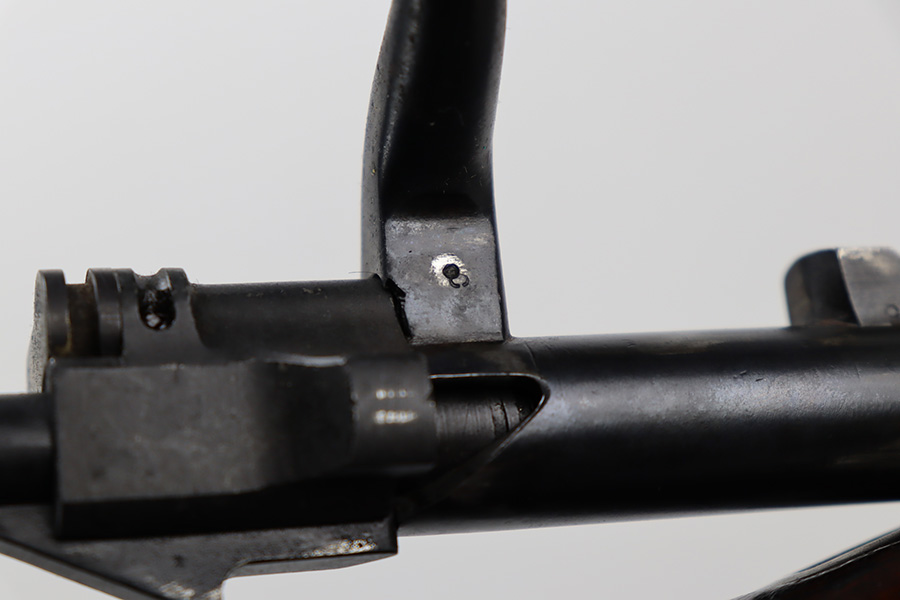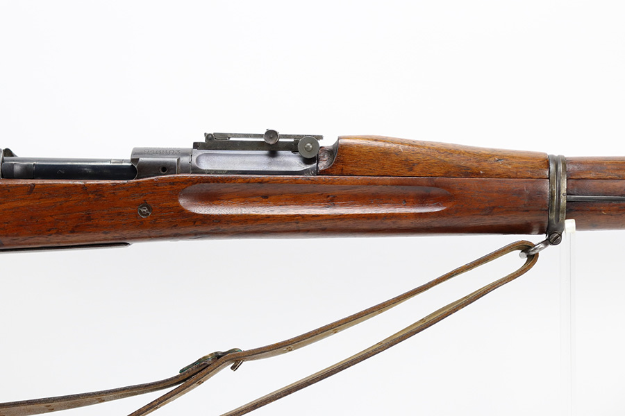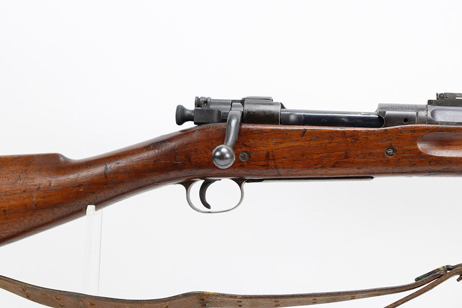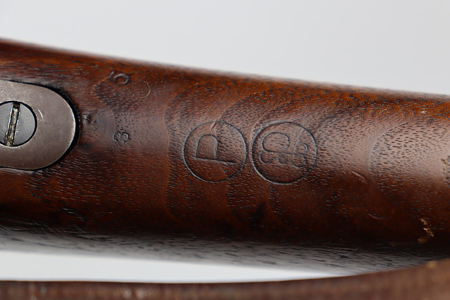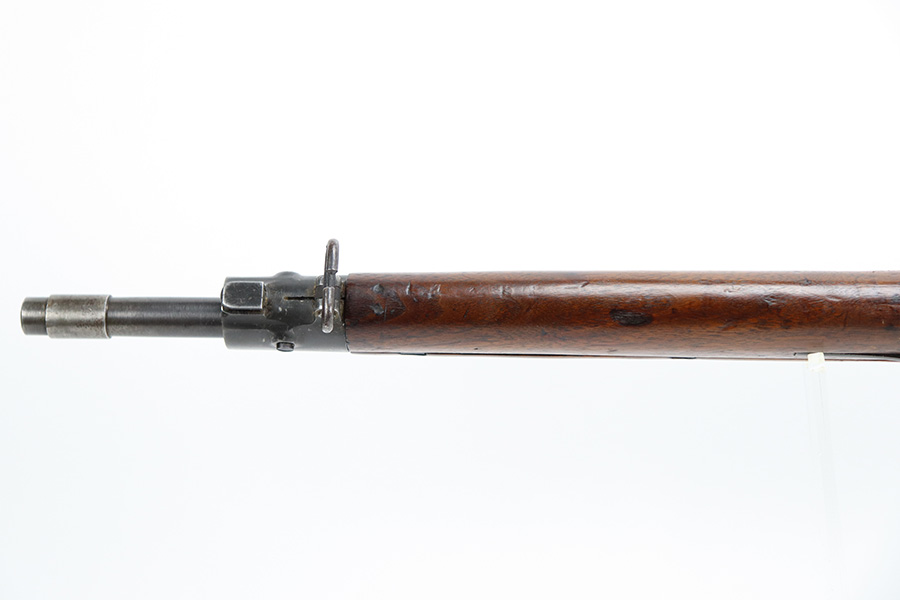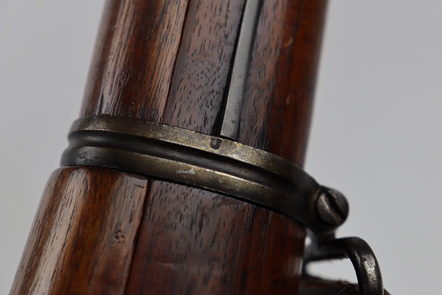 7/10/23 – This is a very nice example of a Springfield Model 1903 issued to the US military during WW1. The receiver dates to 1918. The barrel is also Springfield marked and dates to June of 1918. The left side of the wood stock has “JFC” inspection initials and what looks like an arsenal rework stamp. The metal parts have retained 80% of their finish. The majority of the wear is around the muzzle and along the barrel. Scratchy wear on the front barrel band. Obvious finish loss and brown patina on the floor plate and trigger guard. No major damage to the wood furniture, but there are minor scratches and bruises throughout. Comes with a nice leather sling. The bore has pretty good rifling, but there is some spotty surface oxidation around the muzzle end.