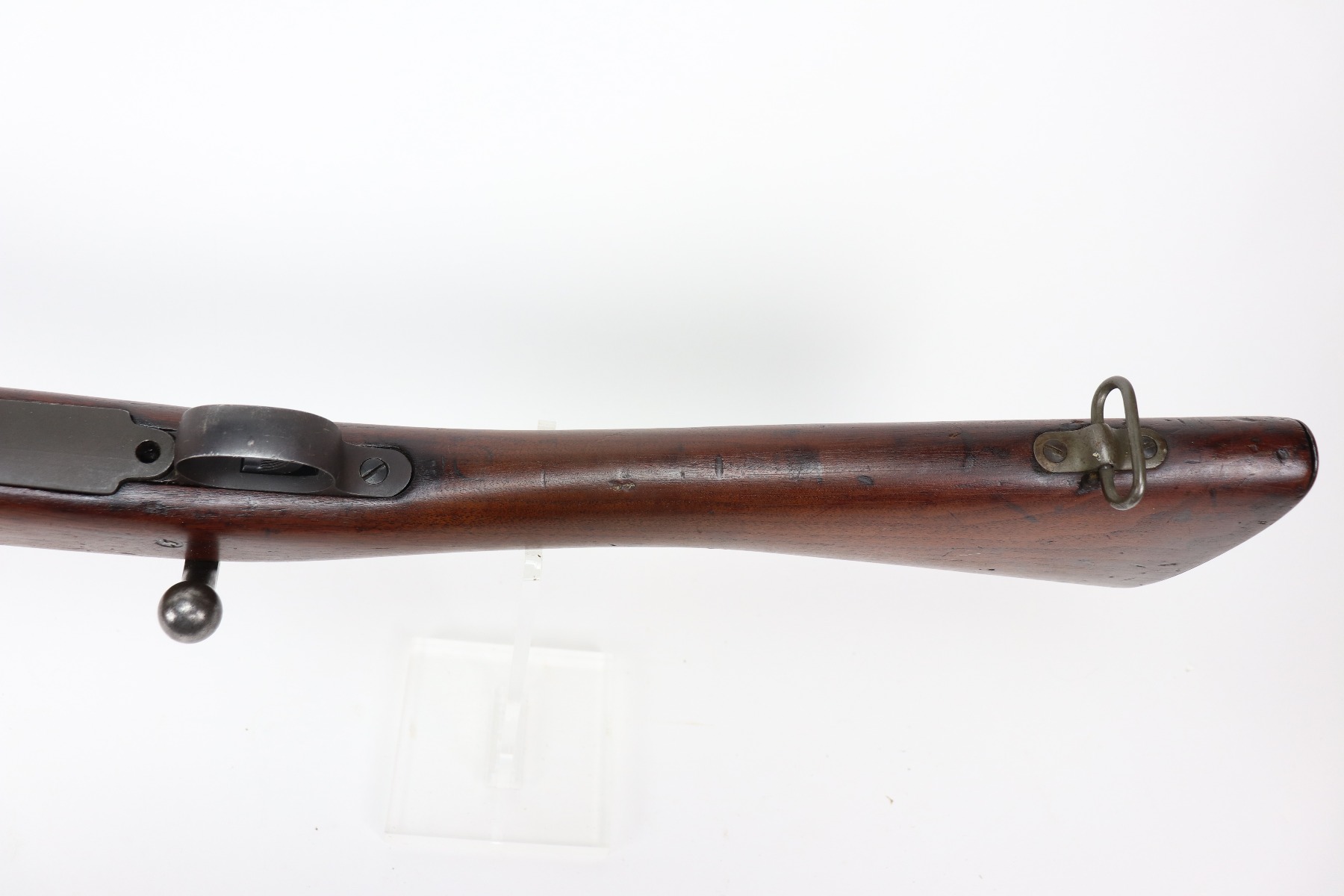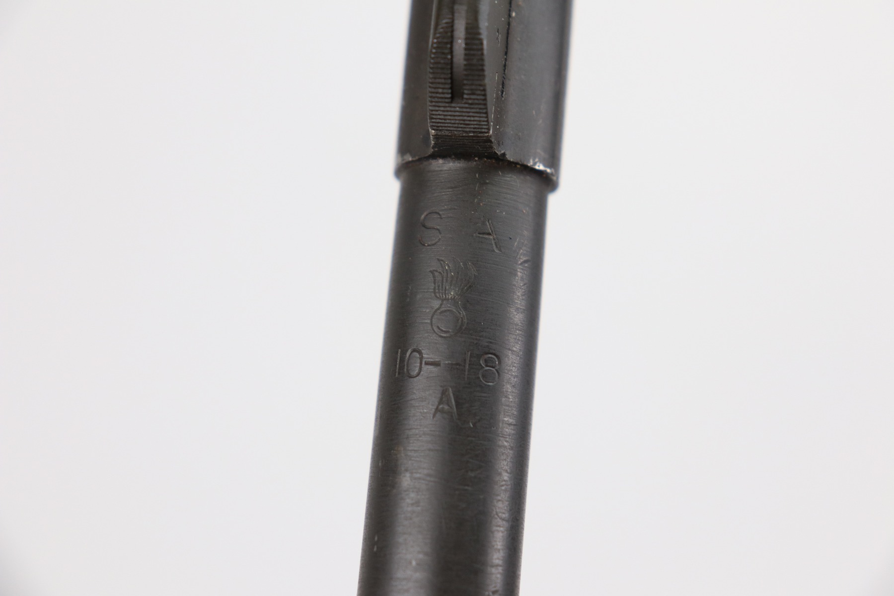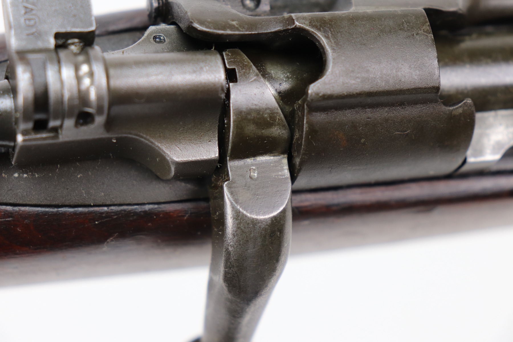 3/26/21 – This is an excellent example of a Springfield Model 1903 Rifle issued to the US military during WW1. The receiver dates to 1918 and the barrel is dated October of 1918. The gun is in excellent condition, but it we believe it was refinished. There is wear on the barrel bands, top of the receiver, and on the bolt. The stock has a very faint proof on the wrist. We believe it was lightly sanded. It is in nice condition with minor dings and scratches throughout. The bore is excellent – shiny with strong rifling.
