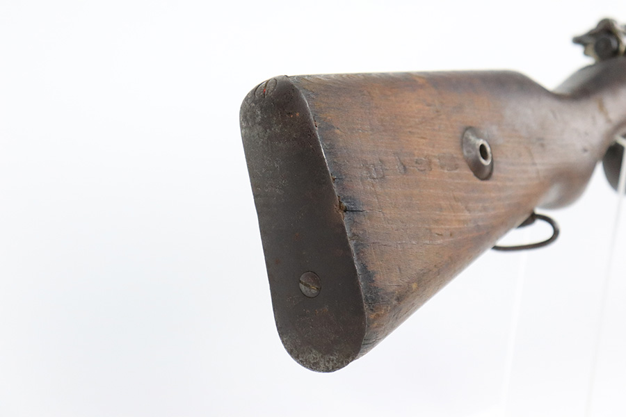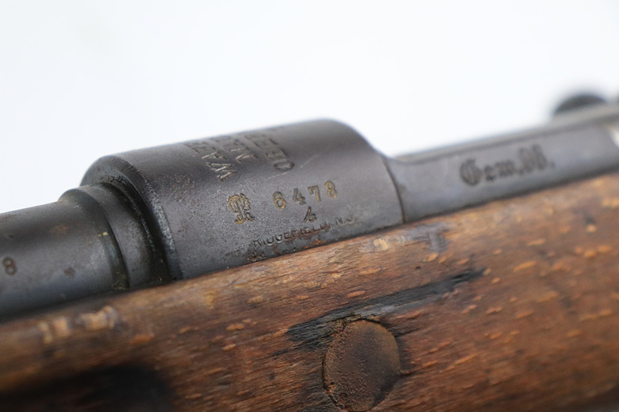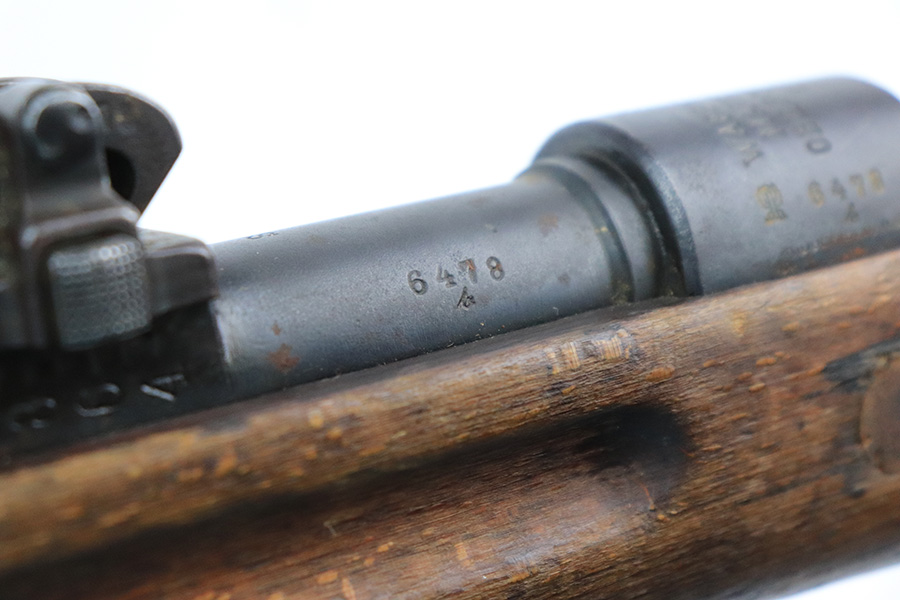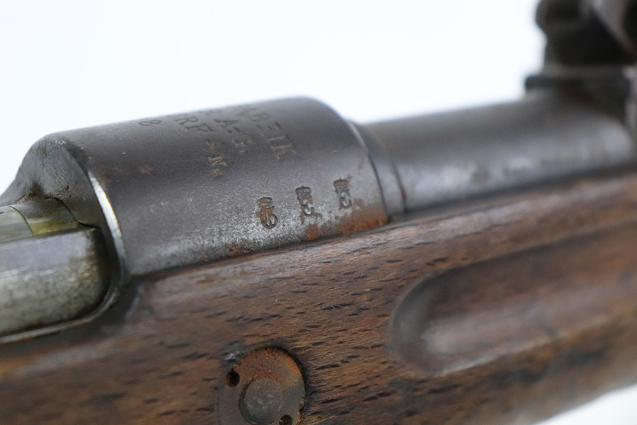 6/9/22 – This is a Mauser-made Gewehr 98 from 1918. It ended up with the Turks, as evidenced by the Turkish crescent moon markings on the receiver, bolt handle, and bolt body. There are Czech CZ markings on the bolt as well. The gun is mostly mismatched with a faint import mark on the left side of the receiver. There isn’t much actual finish loss, but there is heavy brown patina and spotty oxidation covering all of the metal parts. Noticeable pitting on the barrel bands. No major damage to the stock, but it is scuffed throughout. The edges of the butt plate do not match up perfectly with the edges of the butt stock. The bore has decent rifling, but there is pin-pricking throughout.