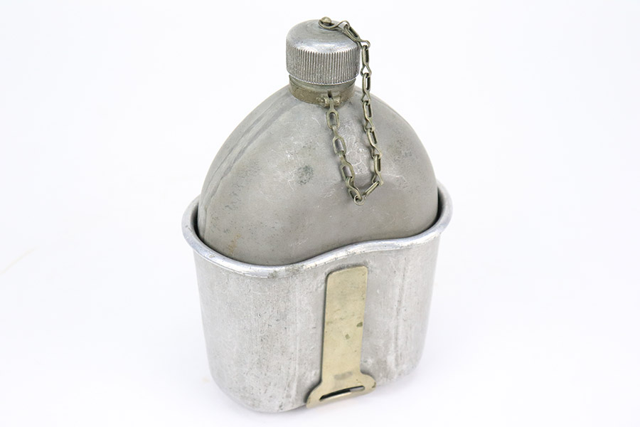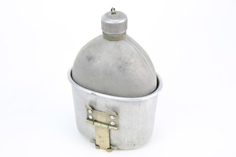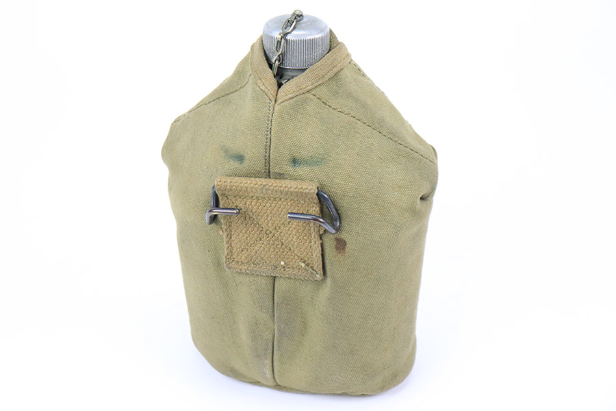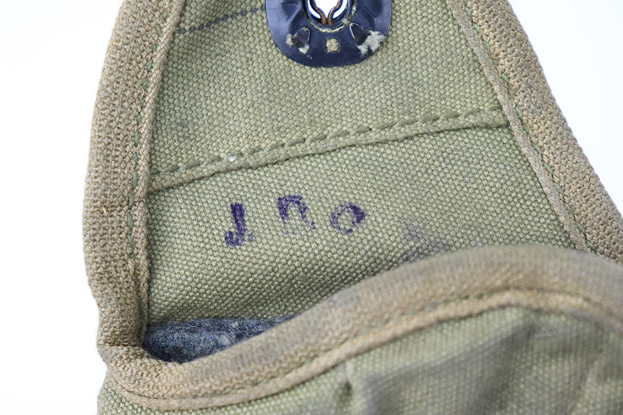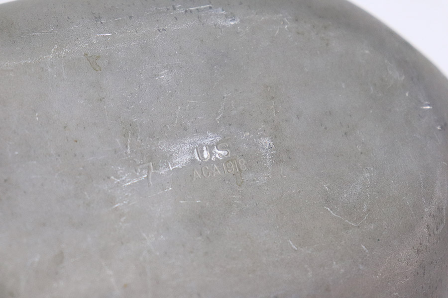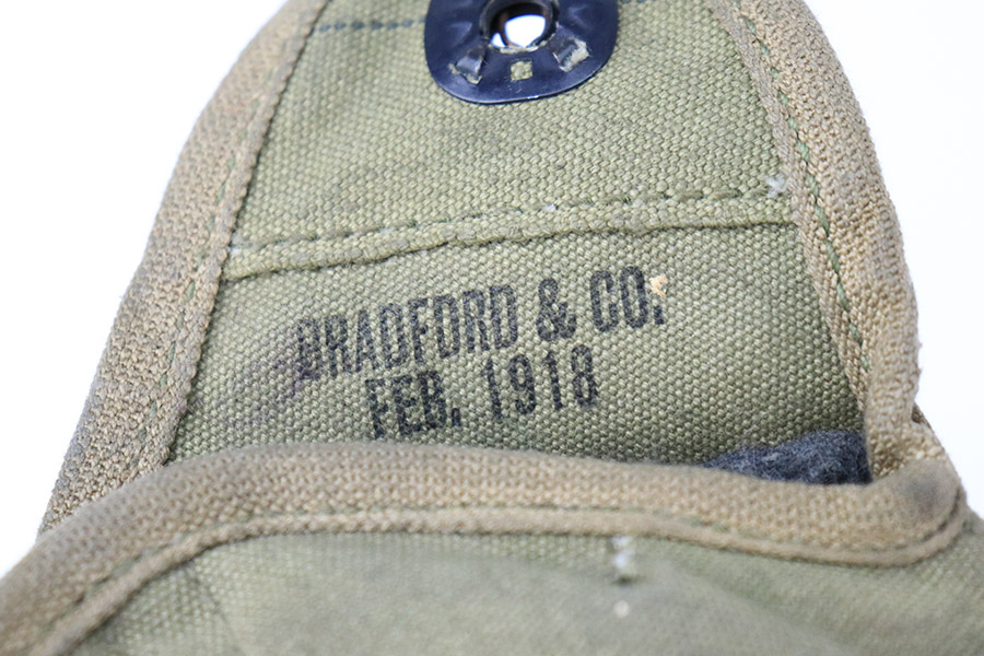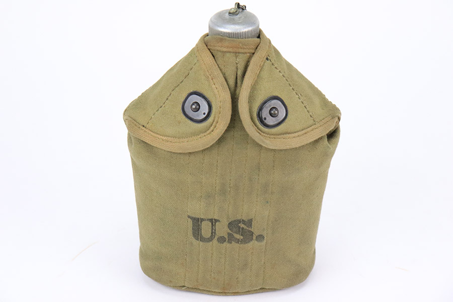 11/3/22 – This is an original WW1 US Canteen with canvas cover. All components are in excellent condition. The canvas cover is ink stamped “US” and maker stamped on the interior flap. The canteen has no notable dents or issues and comes complete with an original cup.