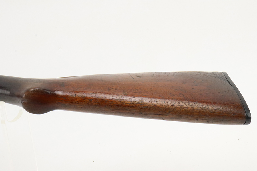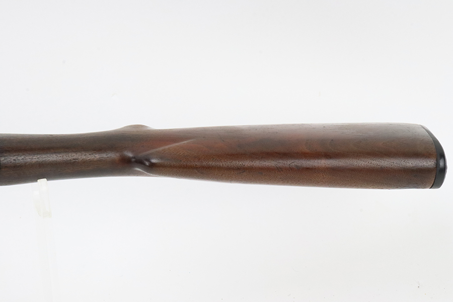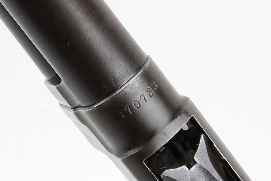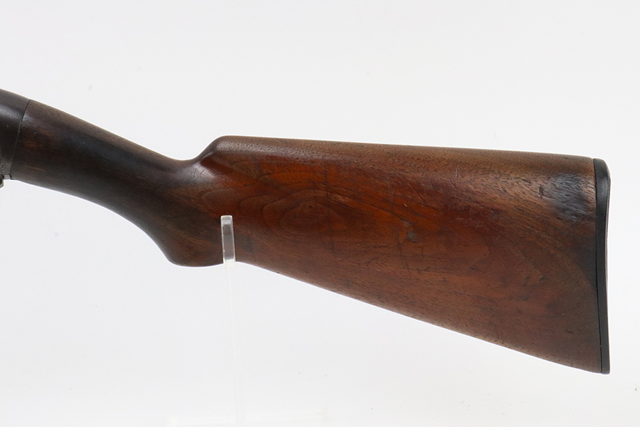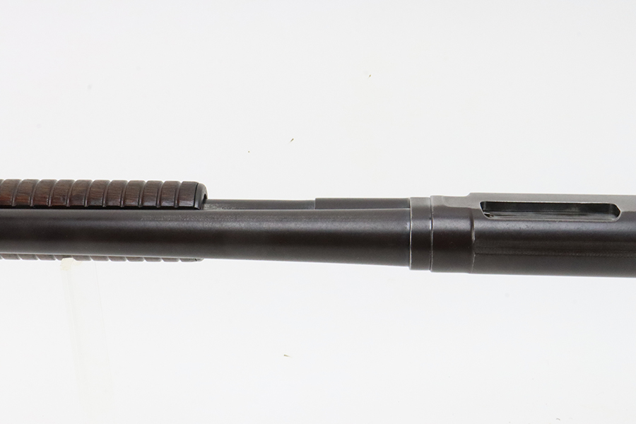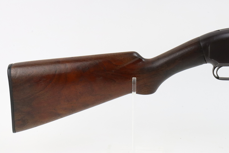 3/11/24 – This is a nice example of a Winchester Model 12 from 1918. It is in a riot configuration with a shorter 19 inch barrel. 14 inch LOP. Chambered in 12 GA. It is all matching and has retained about 90% of its original finish. While there is not much actual finish loss, there is noticeable brown patina under the finish and very light pin-pricking on all of the metal parts. Very nice wood furniture for its age – just light scratches and dings. The bore is in decent condition, but there are small spots of minor pitting throughout. Nice action.