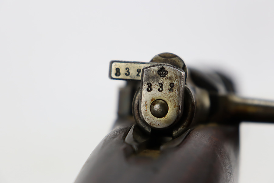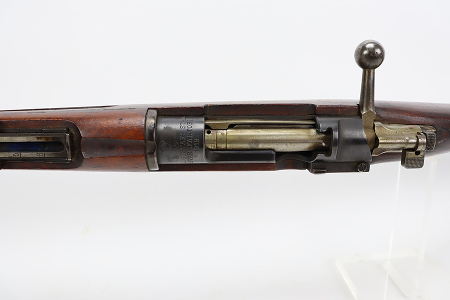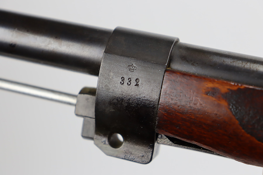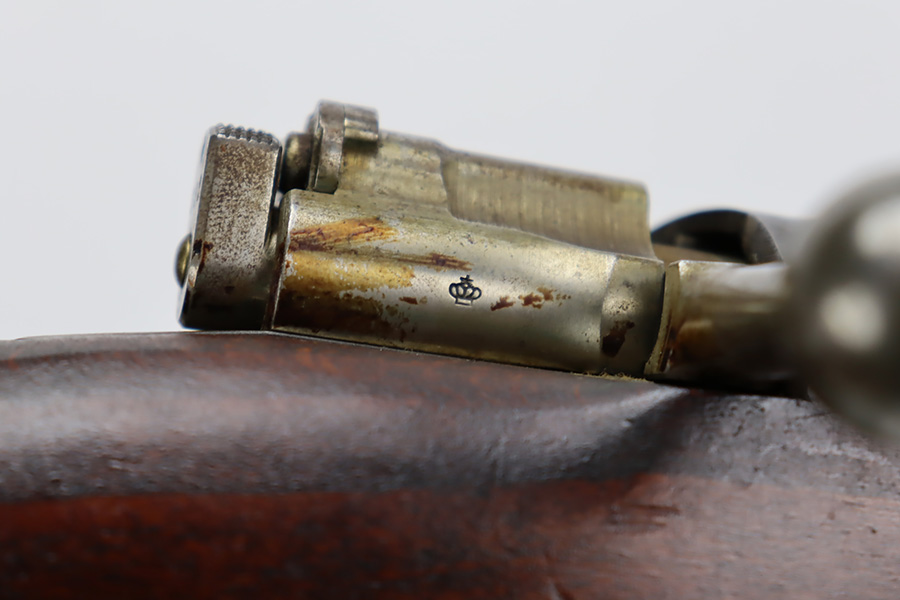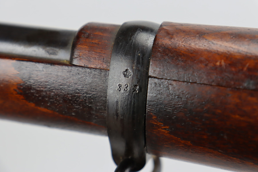 9/29/23 – This is a Swedish Carl Gustafs Model 1896 rifle from 1919. It is entirely matching and has no import marks. The metal parts have been refinished with very little bluing loss, just some splotchy discoloration here and there along the barrel. The wood stock is minty with Swedish proofs. No stock disc. The bore is mint.