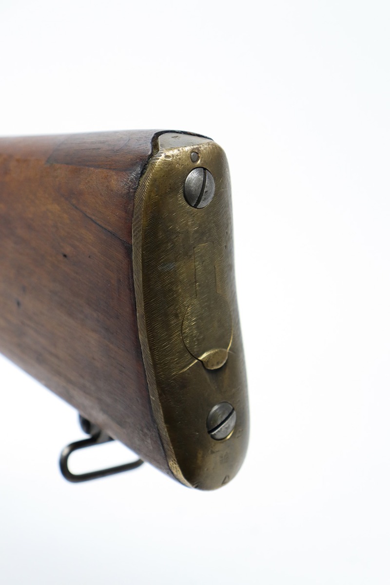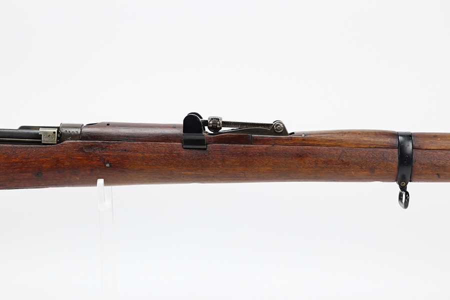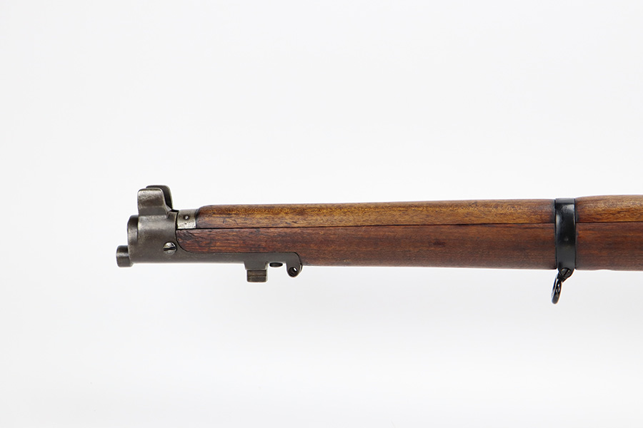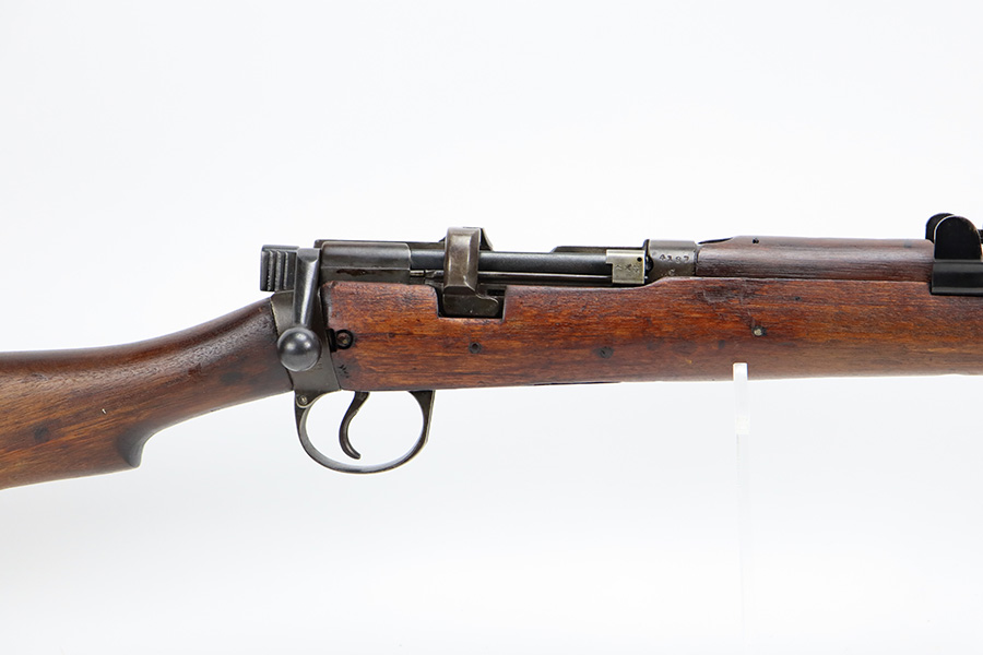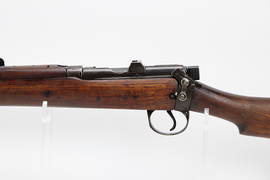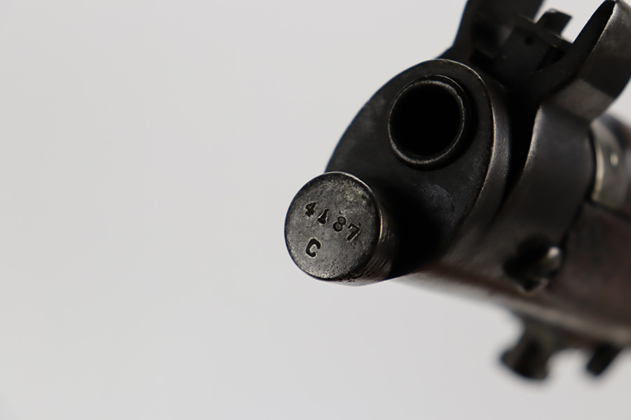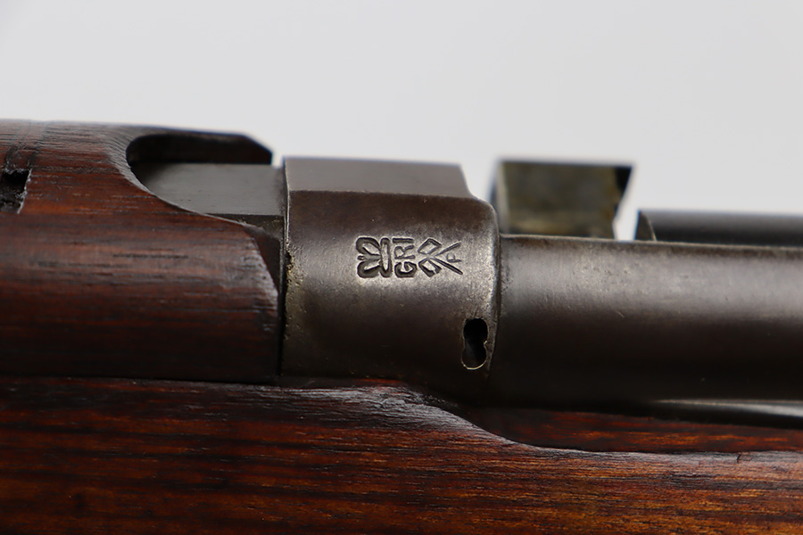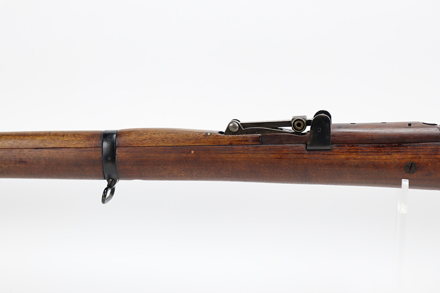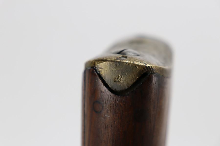 6/16/23 – This gun started its life in 1923, when it was manufactured by Ishapore as an SHTLE III. In 1932, it was converted to a .410 riot shotgun configuration. The conversion to .410 included giving it a smooth bore and securing a wooden block in the magazine well. These shotguns were issued to police units, jail guards & riot police. The gun is mismatched and has RFI markings throughout. The metal parts have retained roughly 75% of their finish. Generally, there is wear around the high edges and around the muzzle. Light brown patina throughout. Excellent wood stock. Excellent, shiny smooth bore.