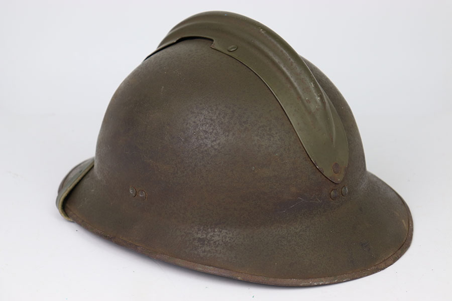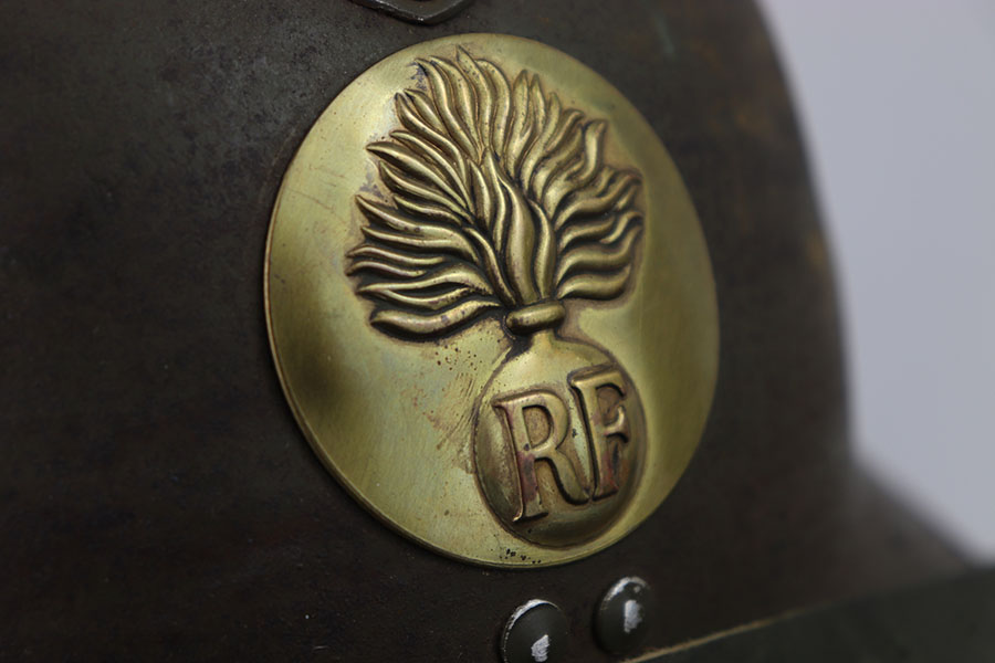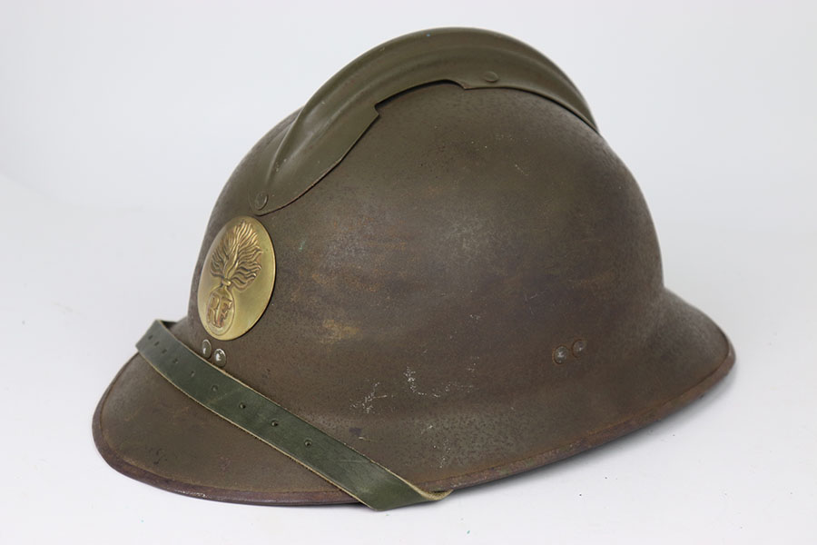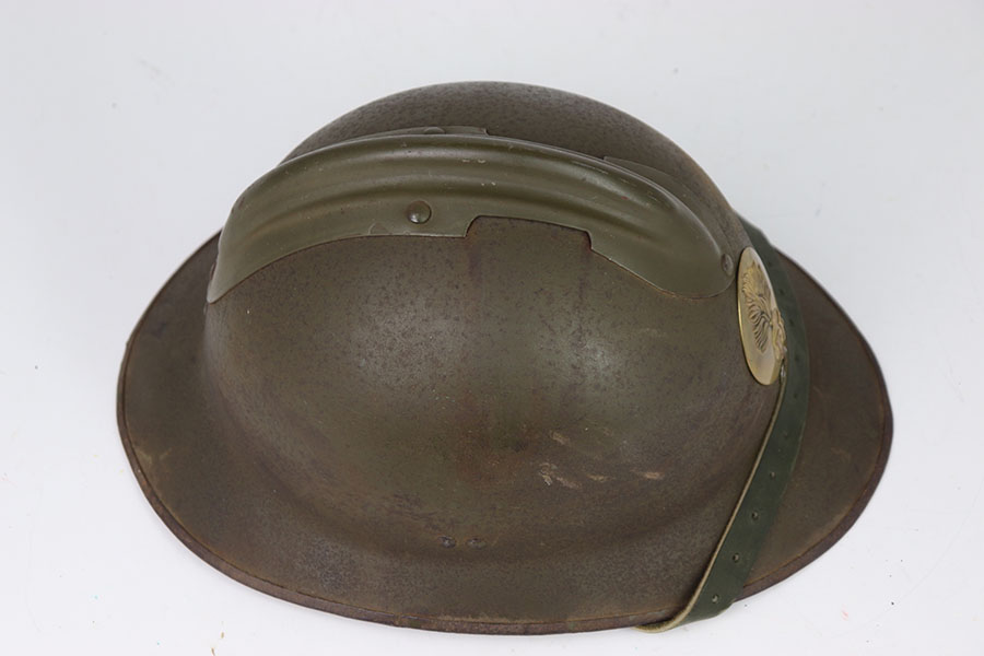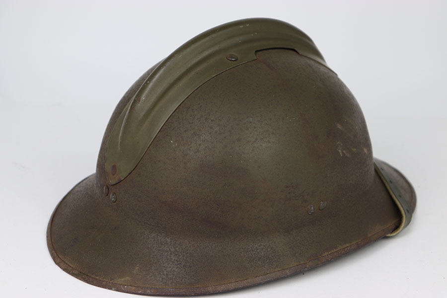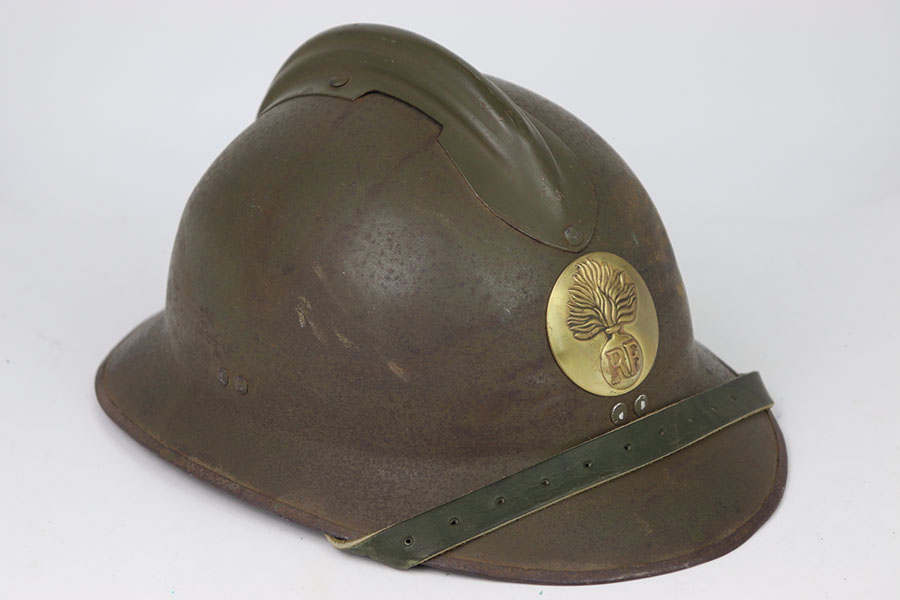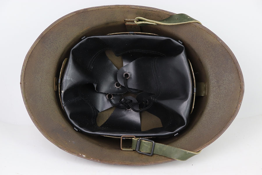 5/10/24 – This is an original French RF helmet from 1926. The Liner and strap appear to be replaced. No internal markings. Comes with a brass “RF” crest that’s in great condition.