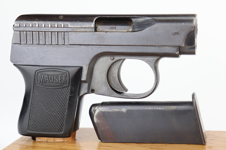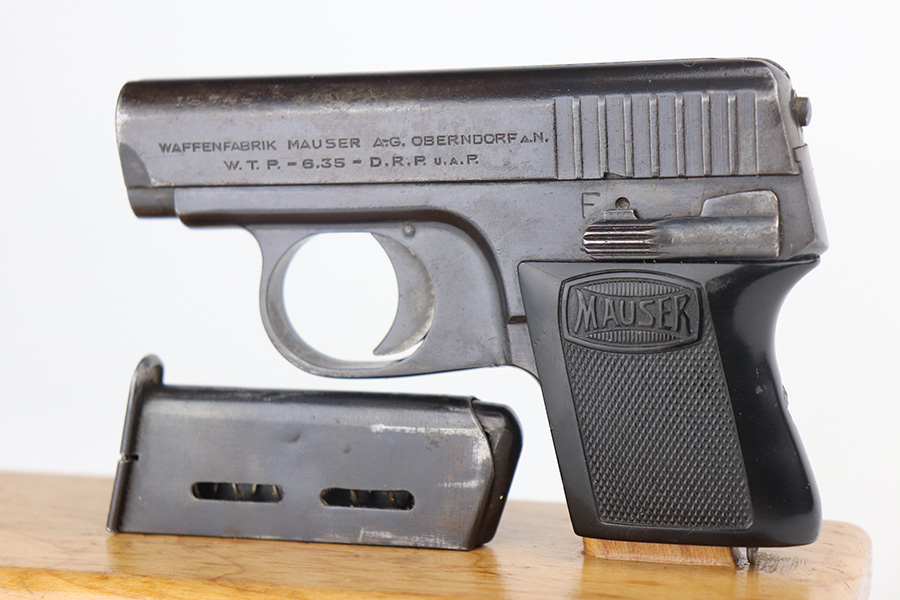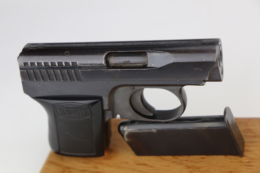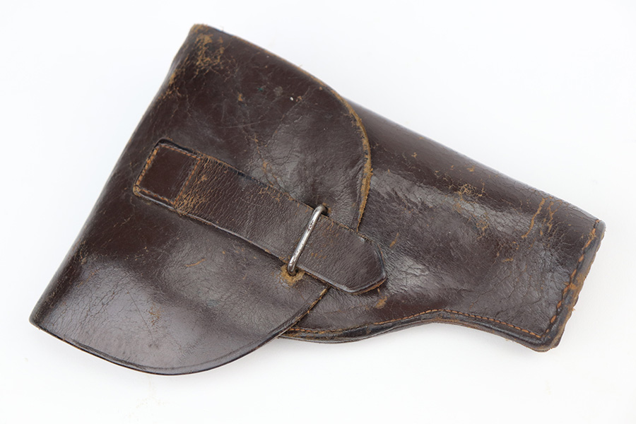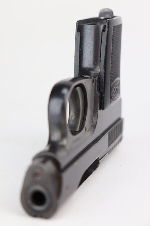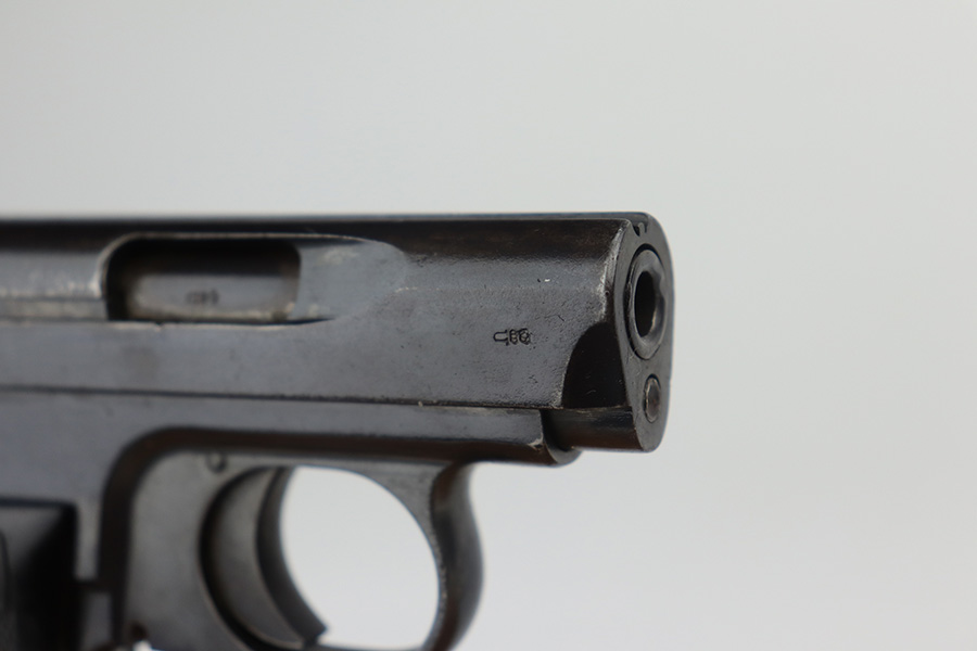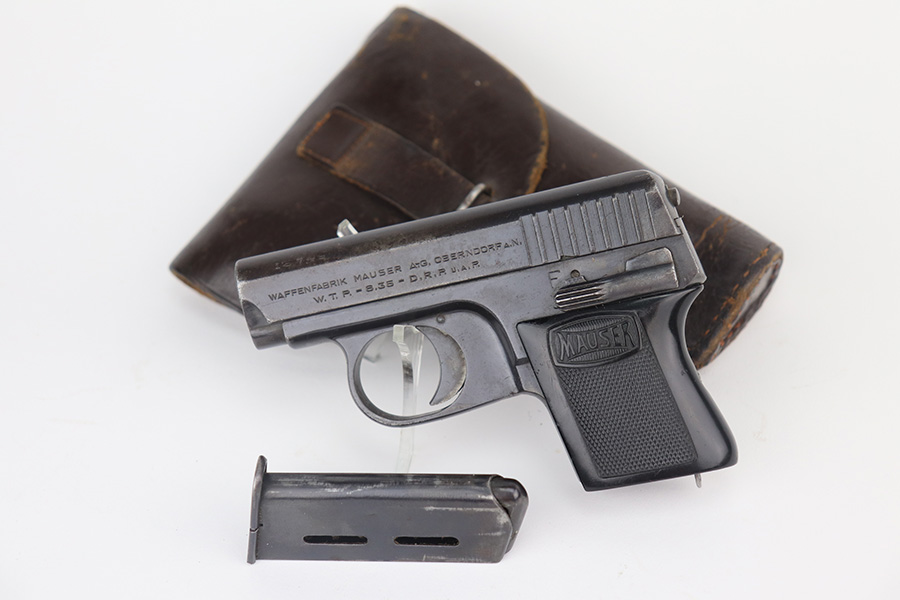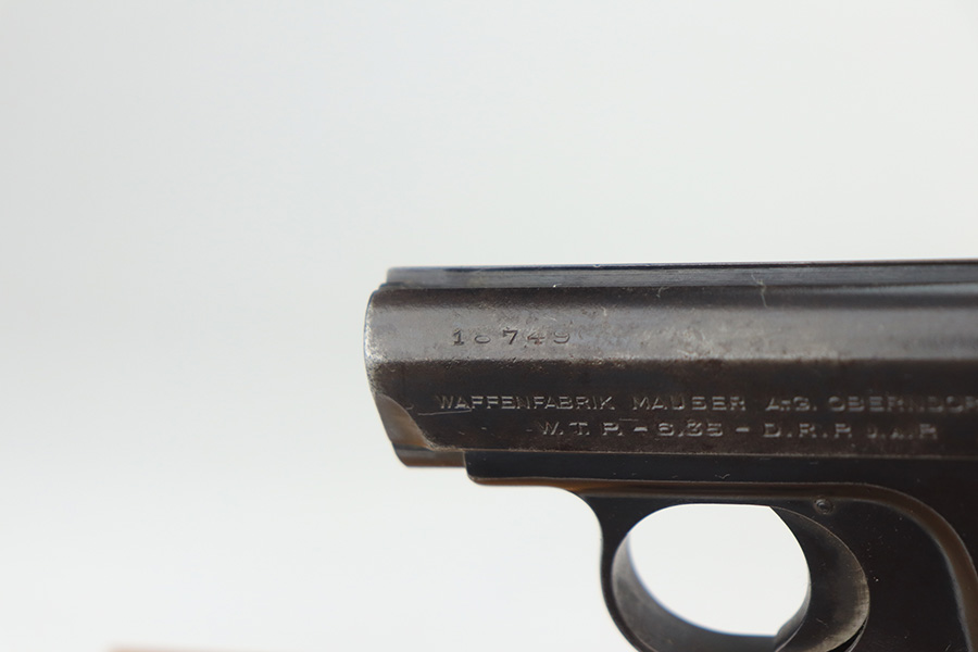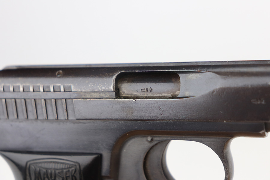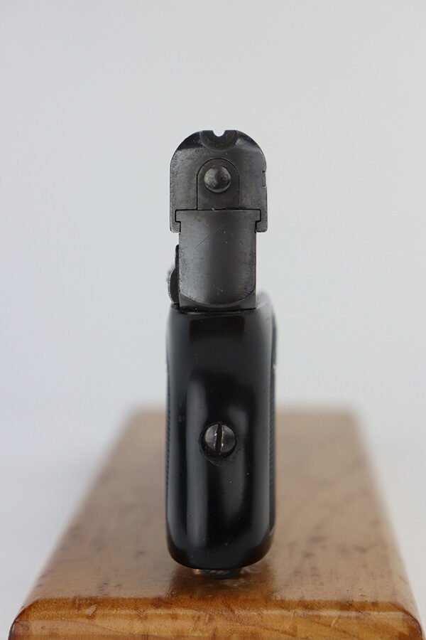 1/20/22 – This is a nice example of a second-variant Mauser WTP I manufactured in 1926. The gun is all matching and has the proper “Crown U” commercial proofs. The rig comes with a period-correct holster and one magazine. It has retained about 93% of its finish. There is light spotty wear along both sides of the slide and areas of minor pin-pricking here and there. Comes with an excellent black bakelite grip – no chips or cracks. The bore is excellent.