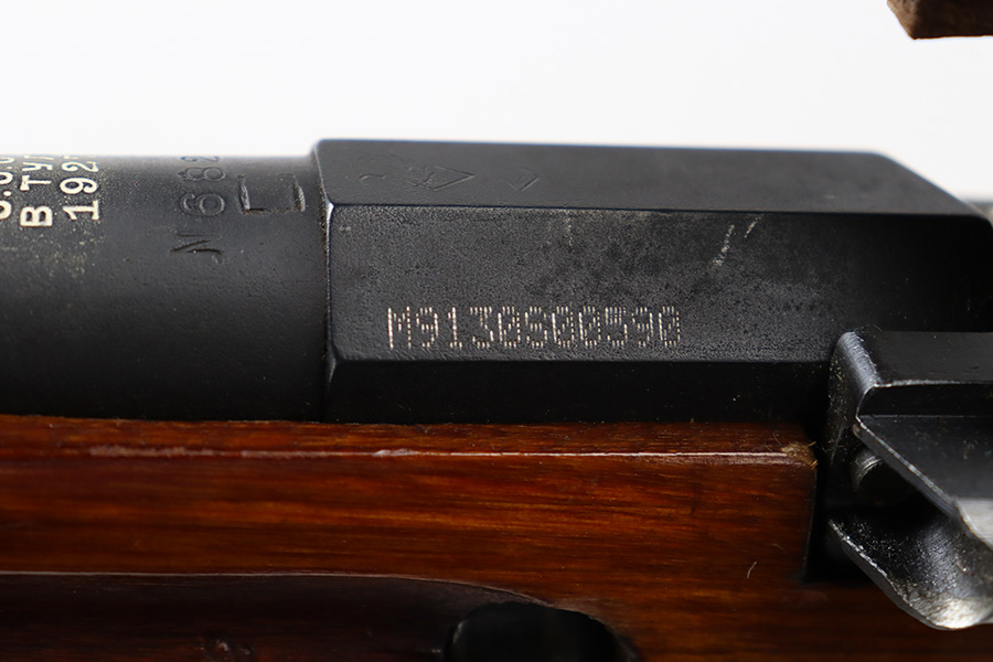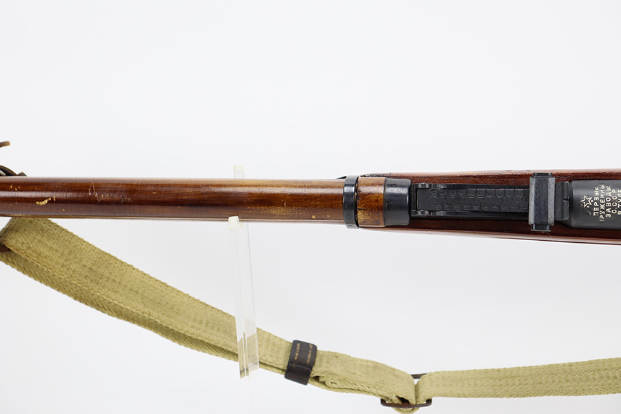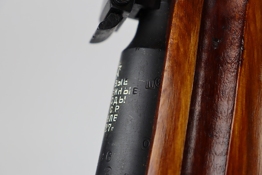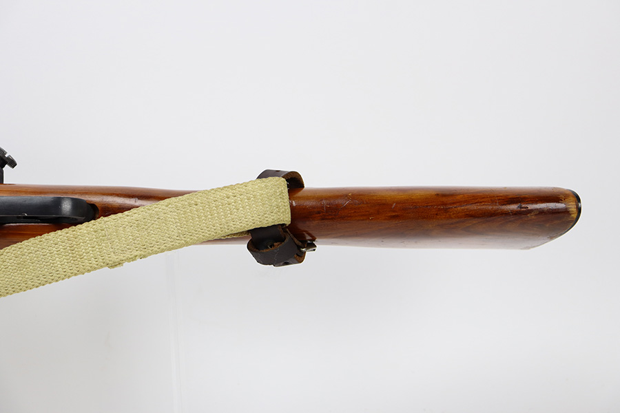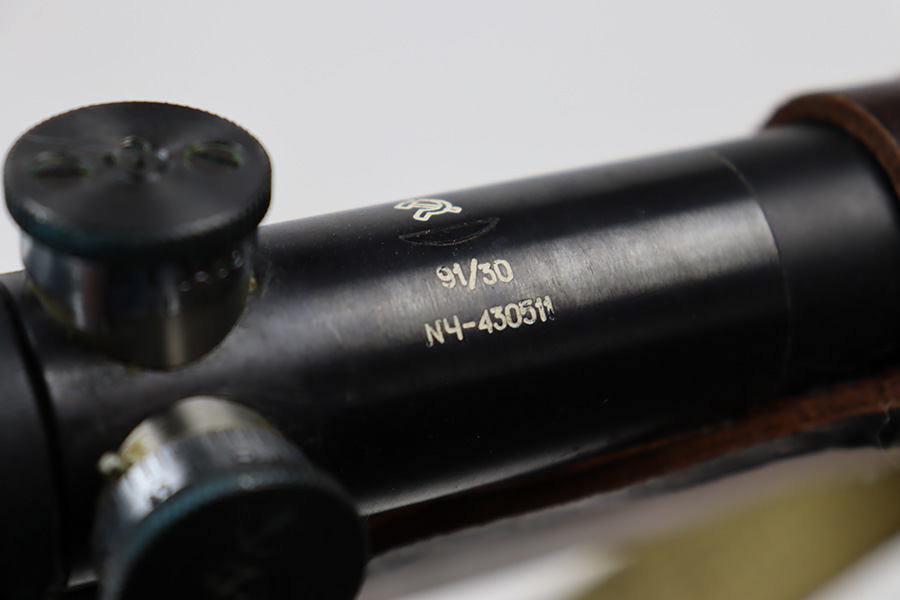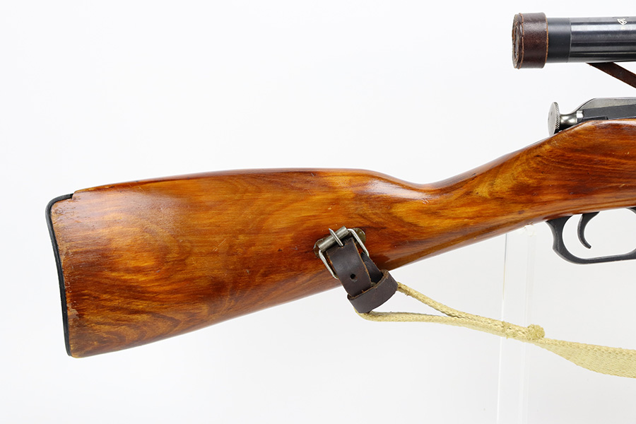7/25/23 – This is an excellent example of an arsenal-refurbished Mosin-Nagant Model 91/30 in a sniper configuration. All matching numbers but obviously renumbered at arsenal, with import mark on the barrel and an added serial number on the receiver. This one has a particularly early 1927-dated receiver. Equipped with a modern-production sniper scope that has excellent optics. Comes with leather eye caps and a canvas sling. The metal parts have retained nearly all of their finish, but there is some minor dulling in the finish on the receiver and a small area of light oxidation on the scope. Excellent wood furniture. Mint bore.