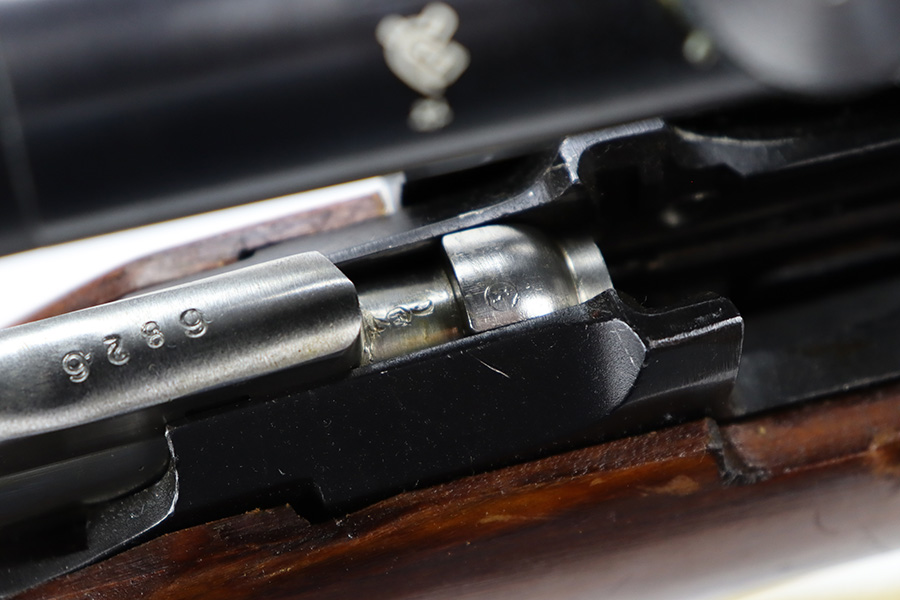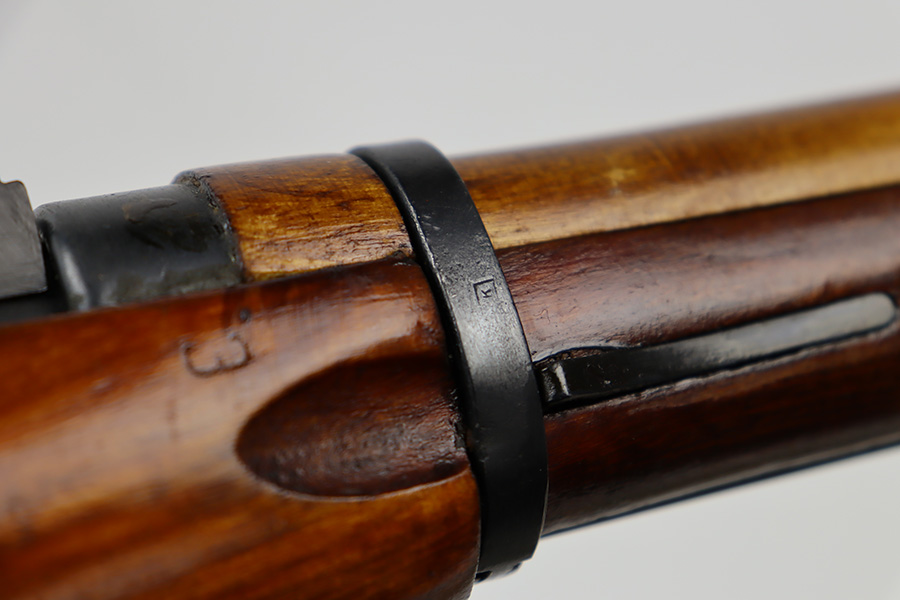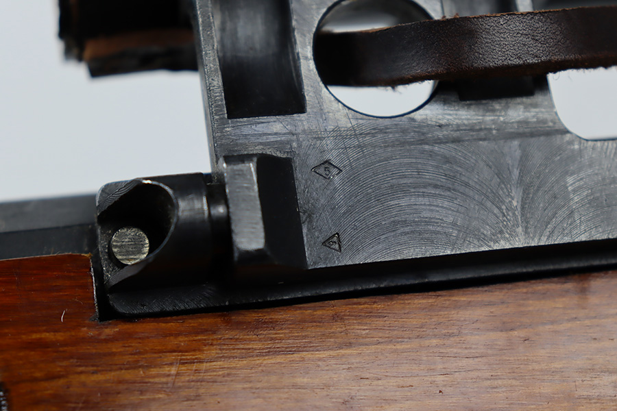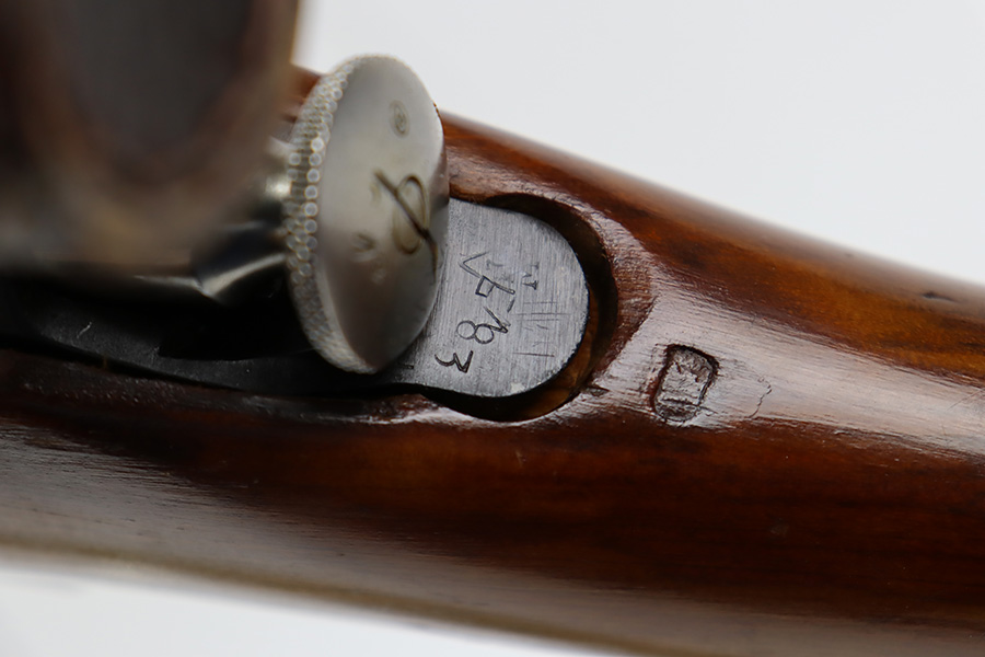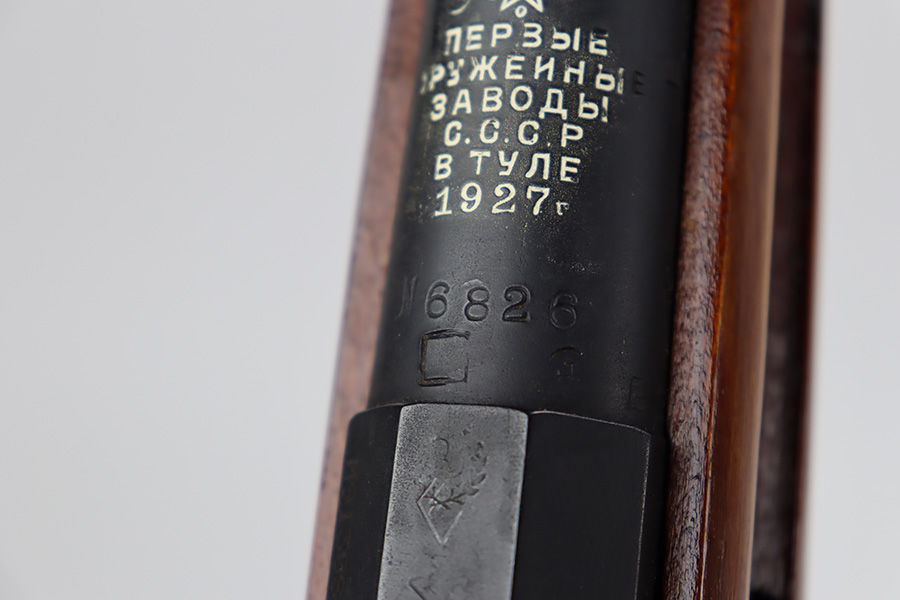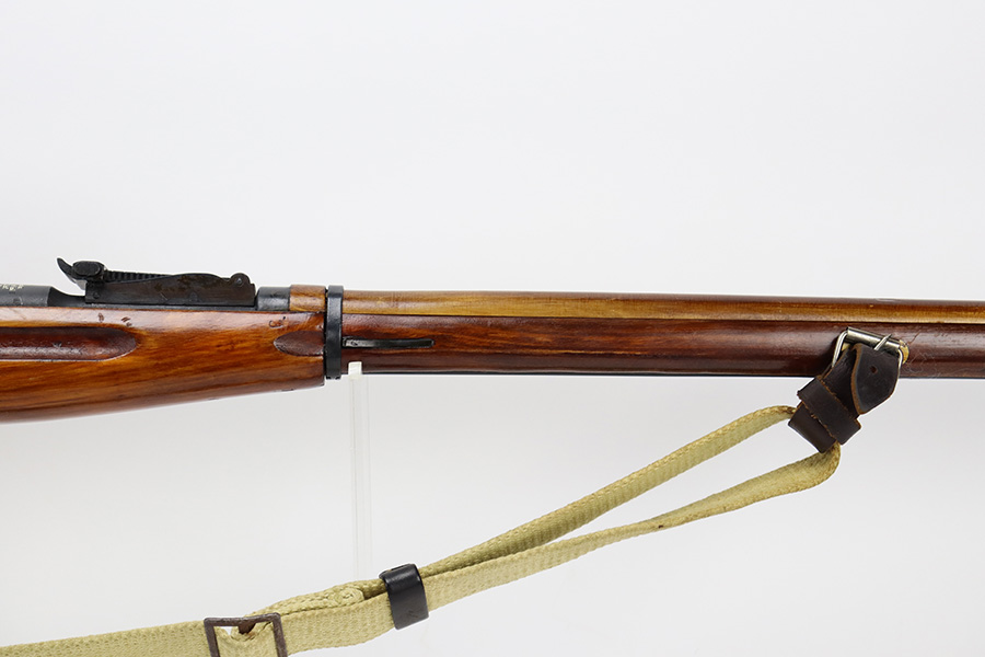 7/25/23 – This is an excellent example of an arsenal-refurbished Mosin-Nagant Model 91/30 in a sniper configuration. All matching numbers but obviously renumbered at arsenal, with import mark on the barrel and an added serial number on the receiver. This one has a particularly early 1927-dated receiver. Equipped with a modern-production sniper scope that has excellent optics. Comes with leather eye caps and a canvas sling. The metal parts have retained nearly all of their finish, but there is some minor dulling in the finish on the receiver and a small area of light oxidation on the scope. Excellent wood furniture. Mint bore.