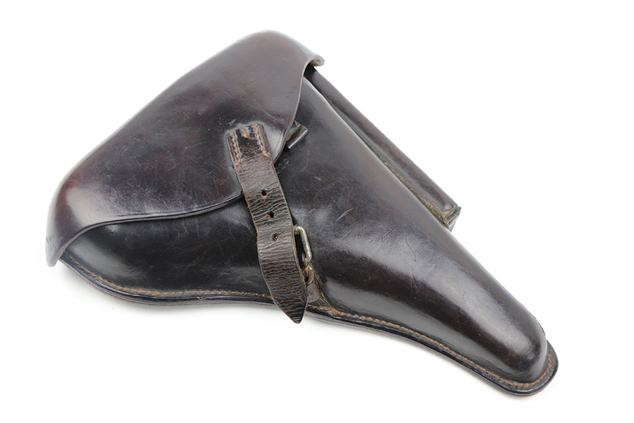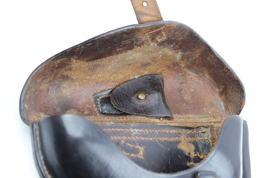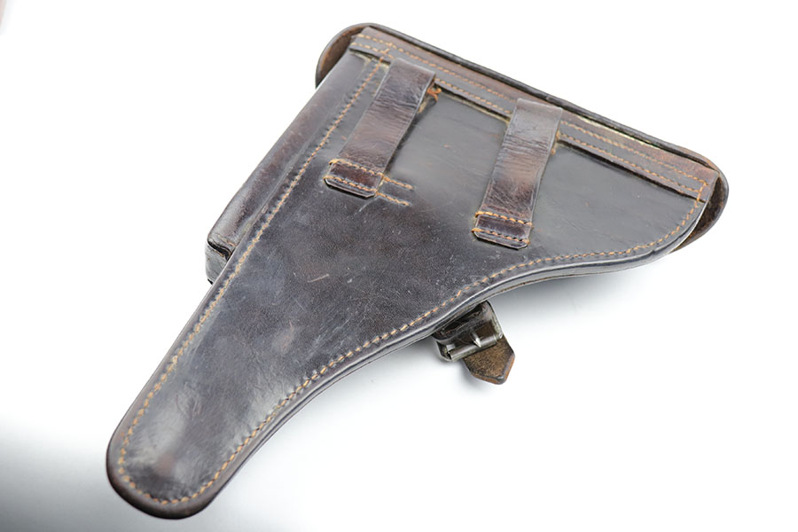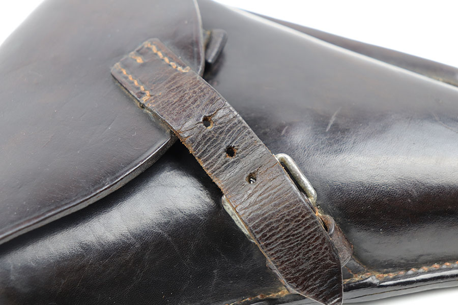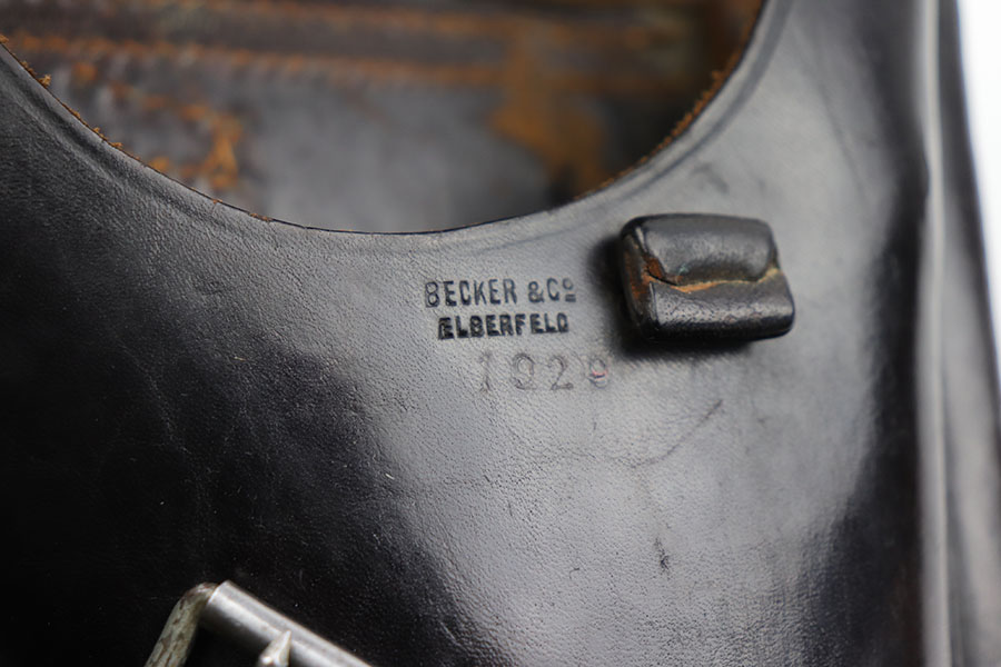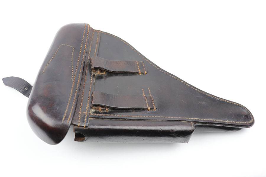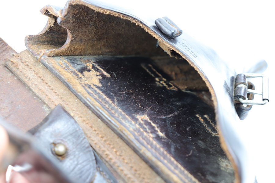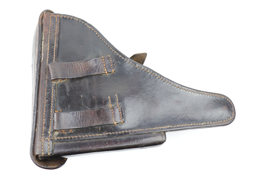 11/6/19 – This is an original 1929 dated Luger holster made during the Weimar era. The front leather is date and maker stamped. There are no other markings. I believe this military style holster is appropriate for Simson Lugers as well as Simson was making lugers during this time. The leather is very strong and clean with minimal pliability. All original stitching in tact as well. An excellent collector’s holster.