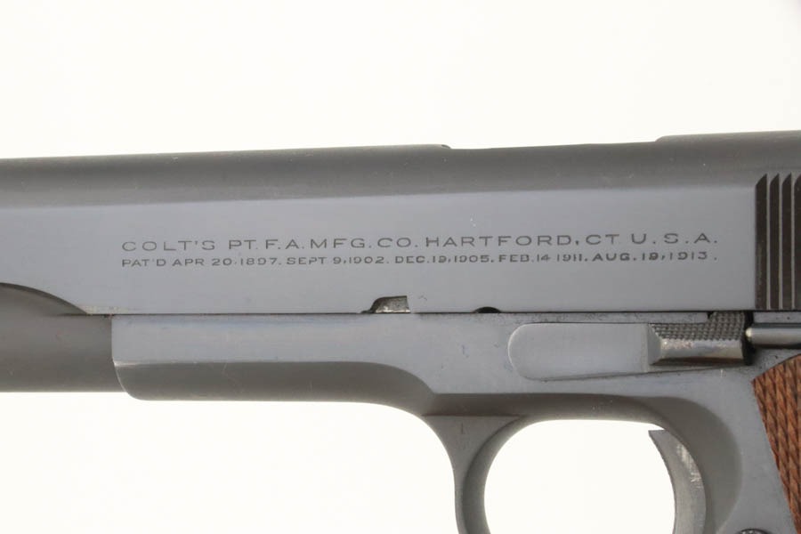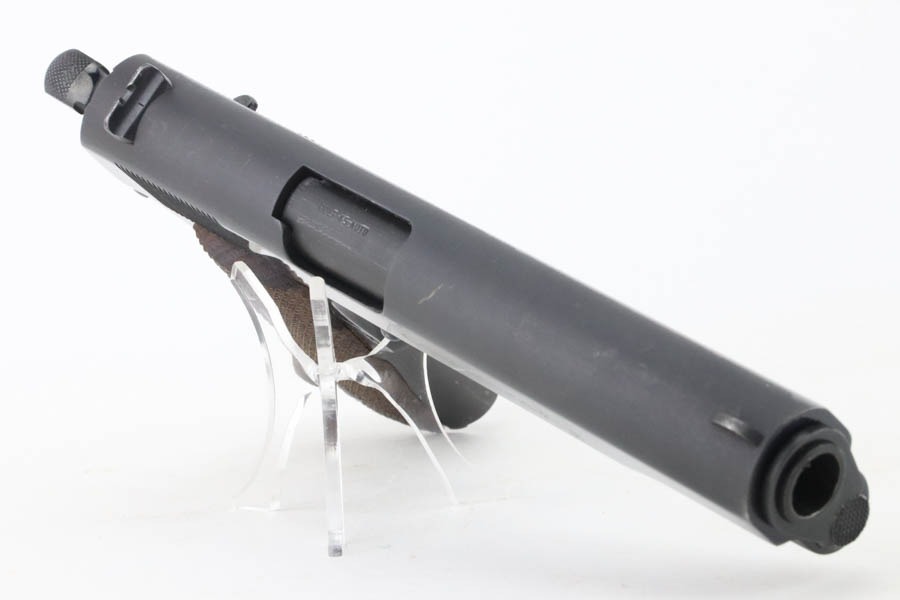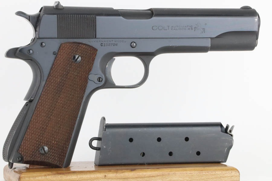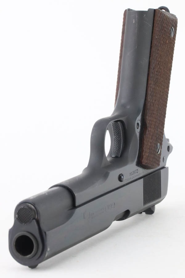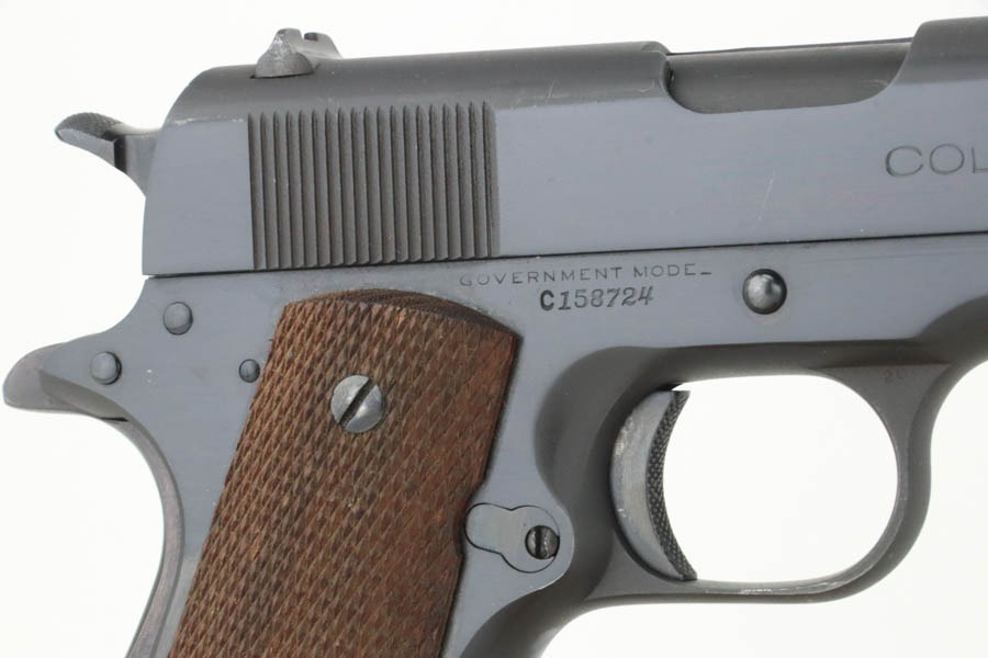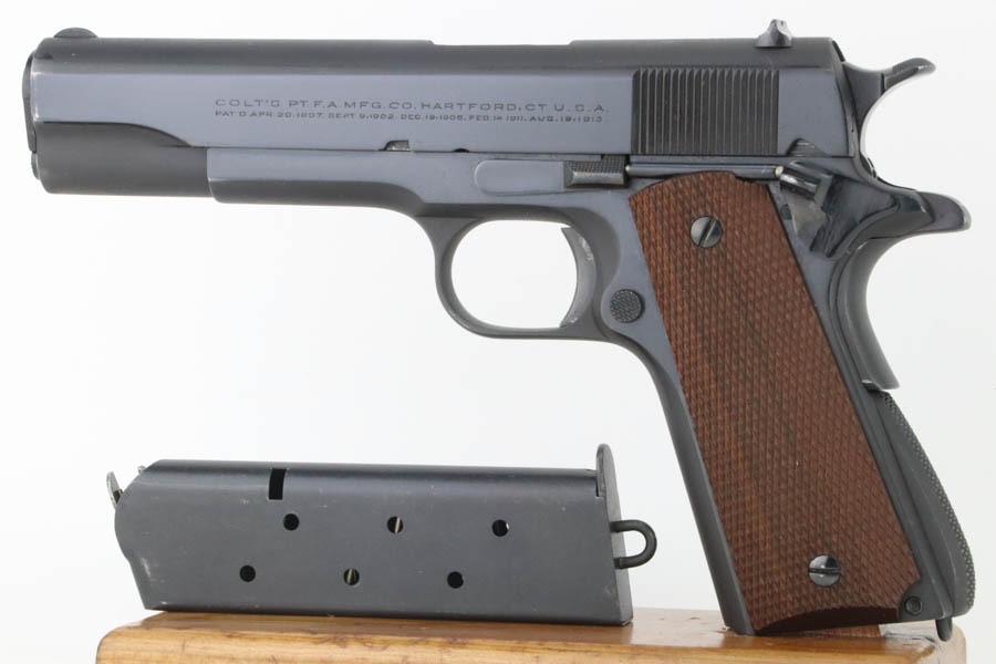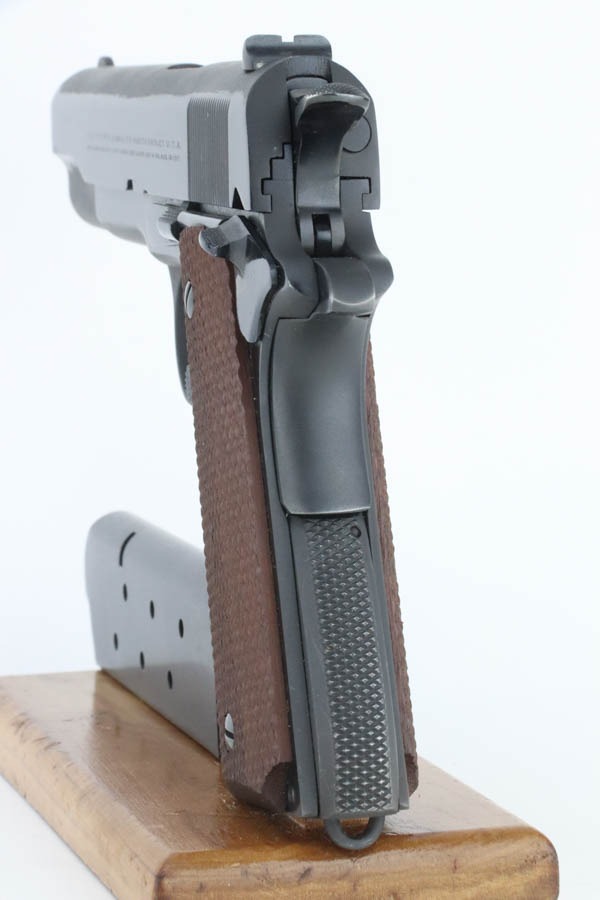 10/10/24 – This is an excellent commercial Colt Government Model 1911 from 1930. The entire gun has been refinished and made to look like the newer ones – the sides are high polish and the straps and top of the slide are dull. Virtually no finish loss. Fitted with mint wood grips and comes with a lanyard loop magazine. Very nice bore with great rifling.
