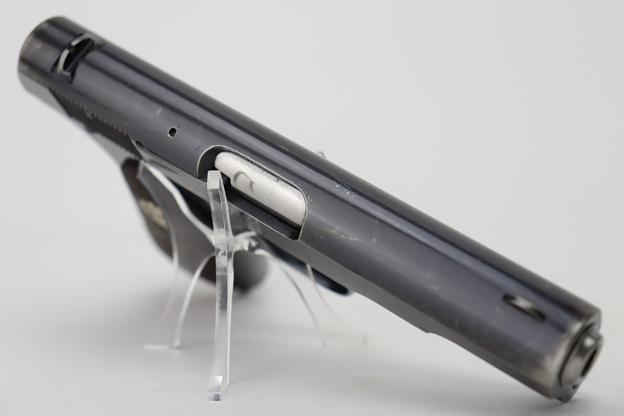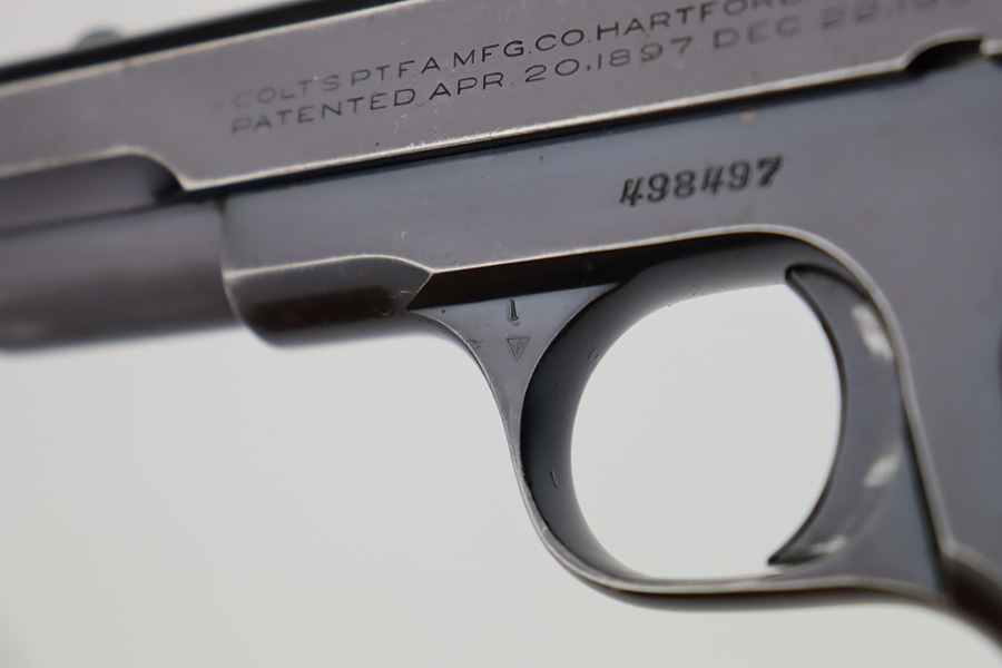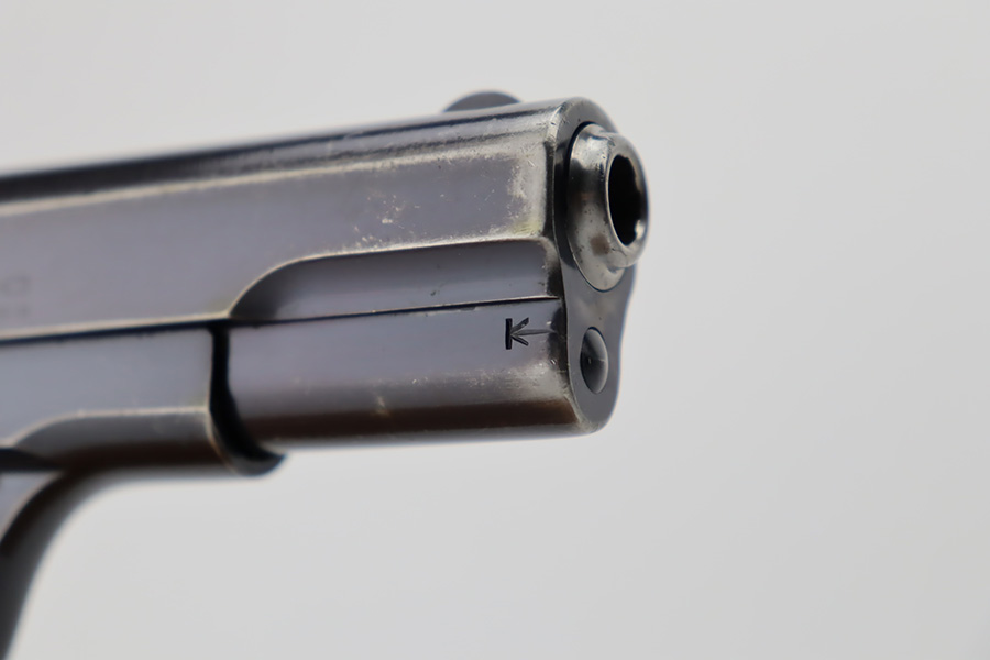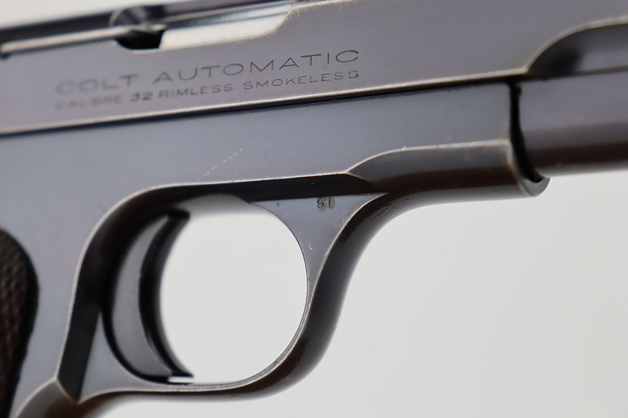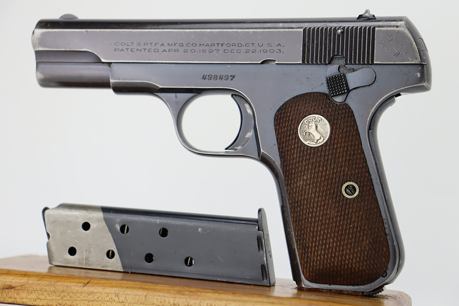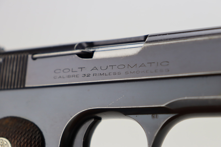 10/10/23 – This is a very nice Colt Model 1903 Pocket Hammerless, manufactured in 1930 and chambered in .32 ACP. It is all matching and has retained somewhere between 85-90% of its original high polish finish. There is general high edge wear, some tiny scratches along the slide, and scratchy wear on the front strap. Excellent period-correct wood grips. Comes with one proper magazine. Mint bore.