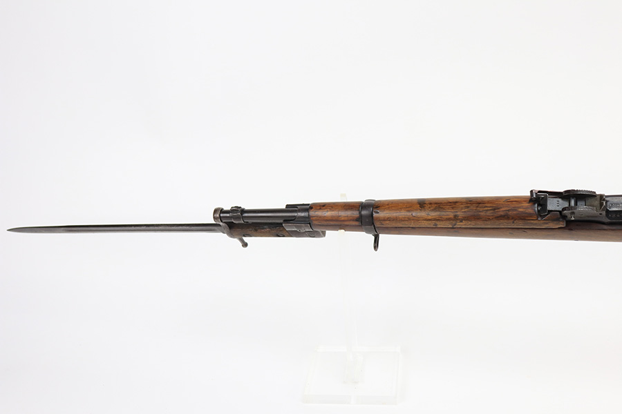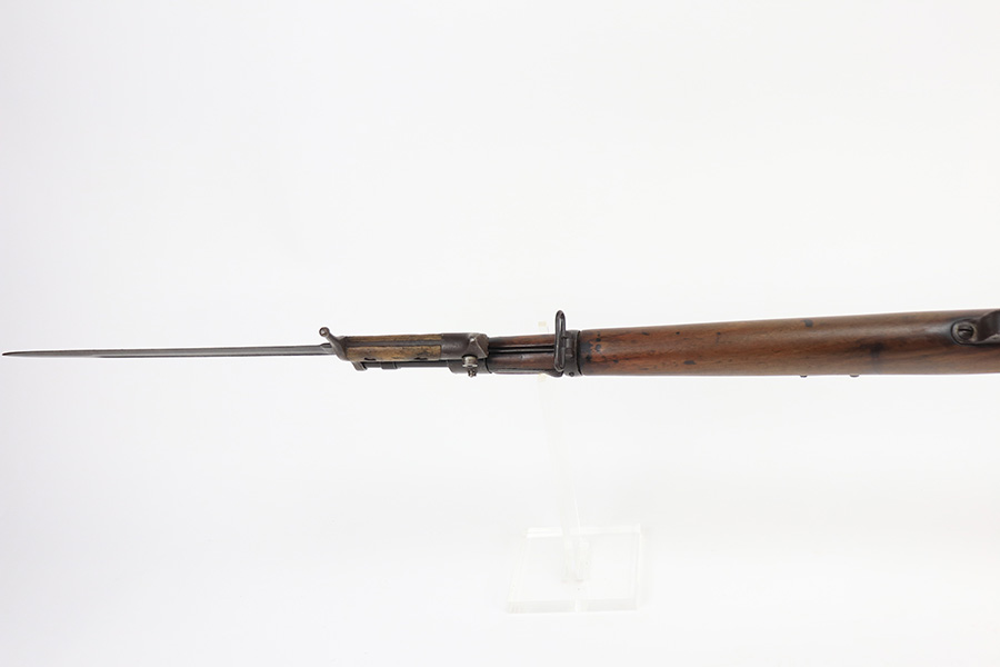 1/5/22 – This is a very nice example of an Italian M91/28 Carcano Carbine, manufactured by MBT in 1930. They gun is matching, except for the stock, and has no import marks. There is a “Made in Italy” export proof on the left side of the barrel. The left side of the butt stock has a “Beretta Gardone” marking and a serial number that does not match the rest of the gun. It comes with an original bayonet (not matching, no scabbard), an original cleaning rod, and two stripper clips. Generally, the gun is in very nice condition. There isn’t much actual finish loss, just light spotty brown patina throughout. Some light scratching around the front barrel band. Some minor freckling on the receiver and bottom of the magazine. The stock is nice with minor dings, bruises, and small stains in the wood here and there. The bore has decent rifling with minor pin-pricking throughout.