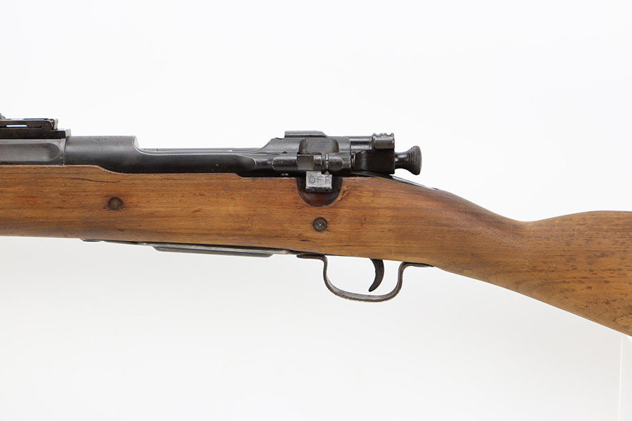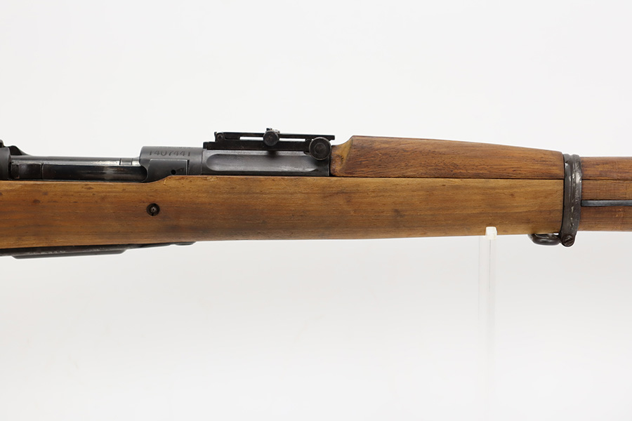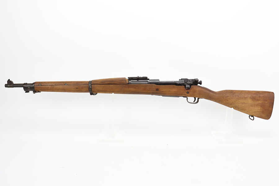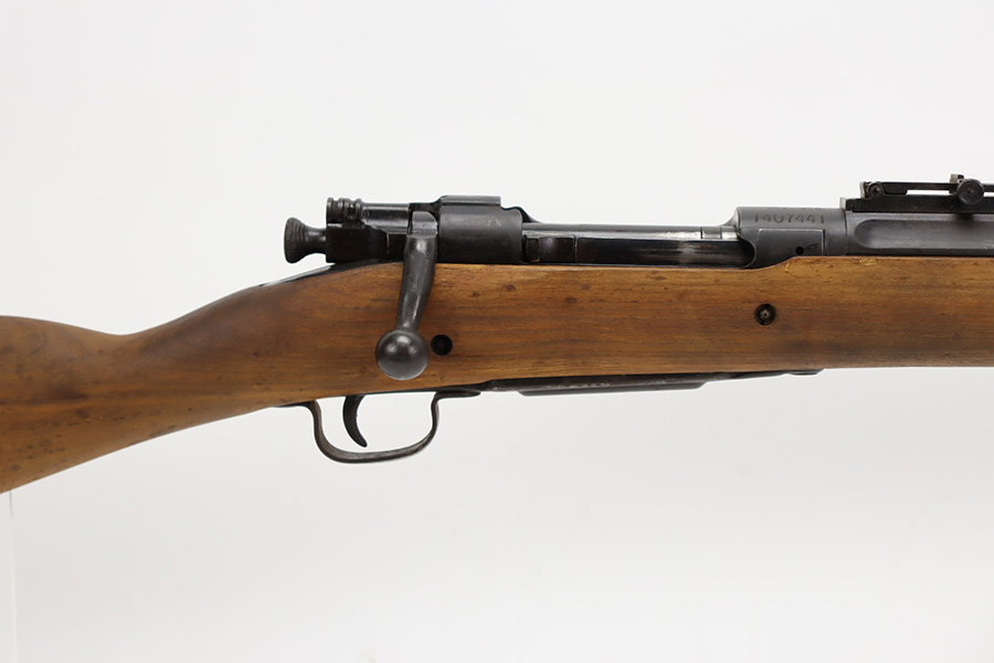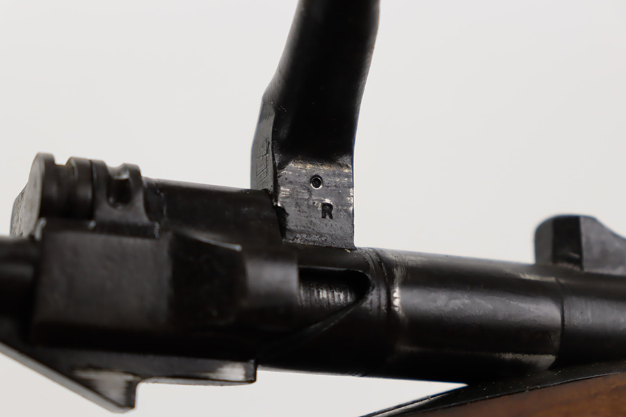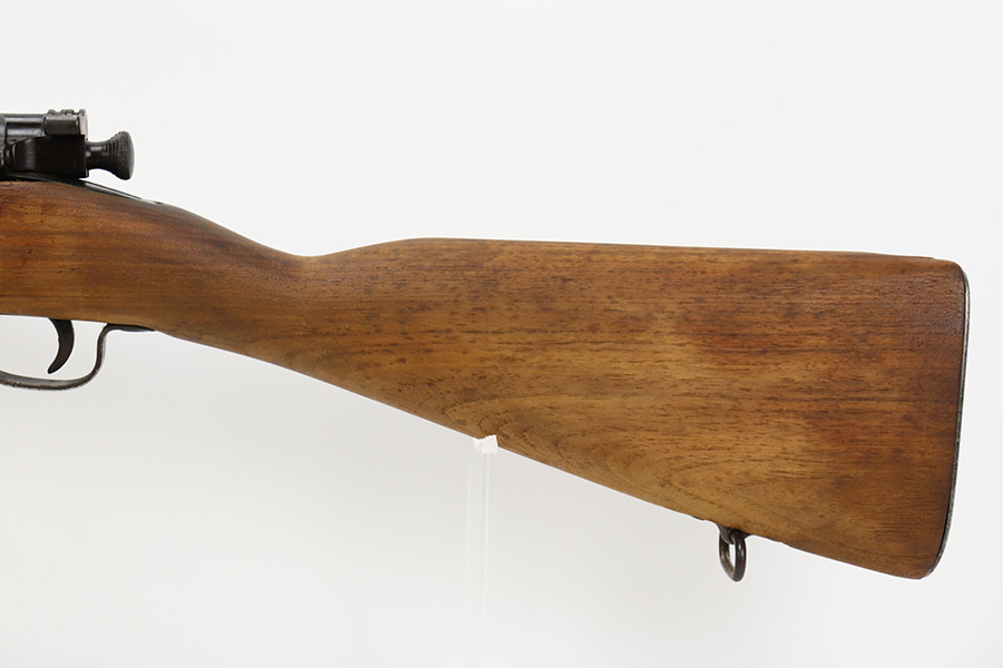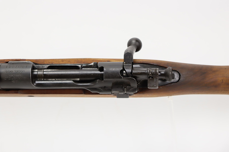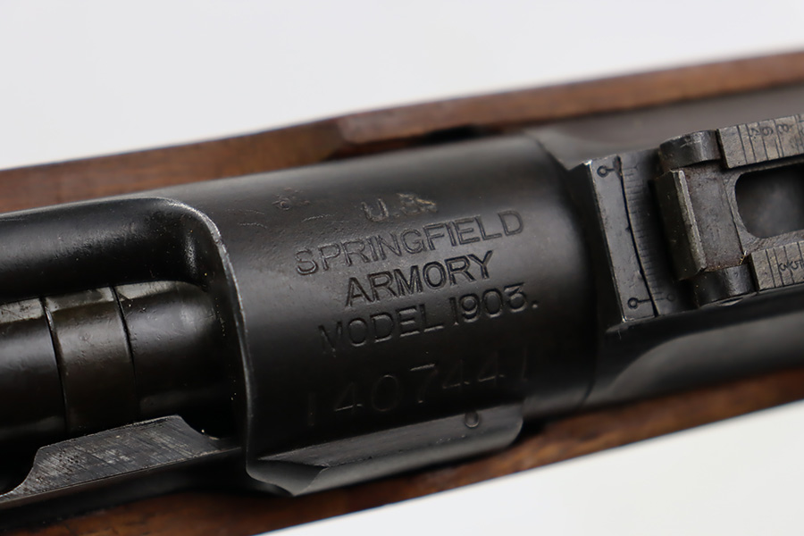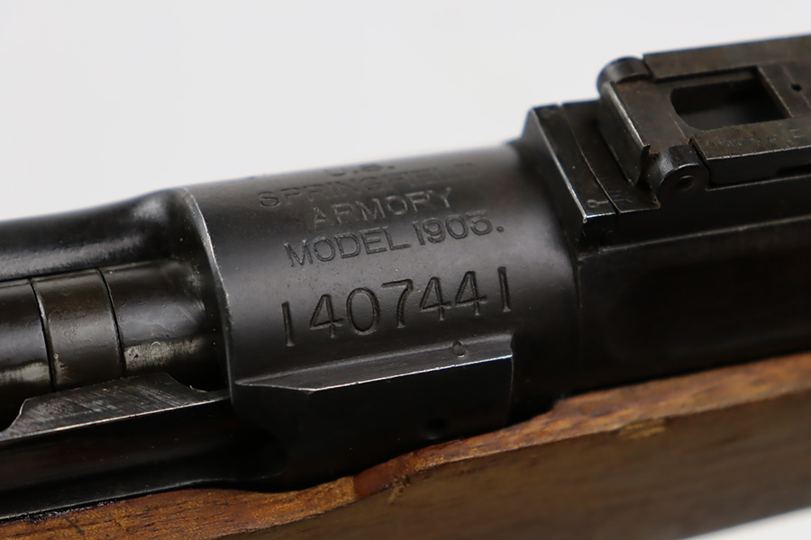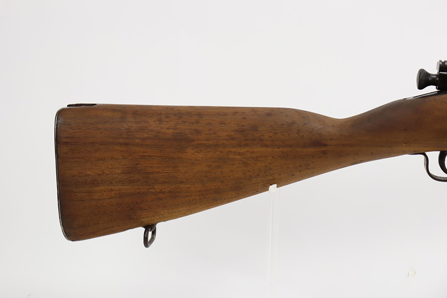9/29/23 – This is an Arsenal-refurbished Springfield Model 1903 rifle. The serial number on the receiver dates to 1932. The barrel is dated November 1936. The stock is an unmarked replacement. The finish rates about 95%, but there are some light scratches here and there and light brown patina under the finish throughout. Pitting on the butt plate. Minty stock. The bore has good rifling, but there is spotty surface oxidation and pitting throughout.