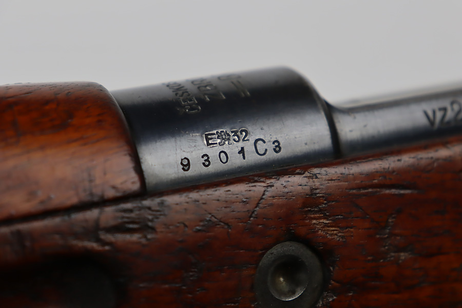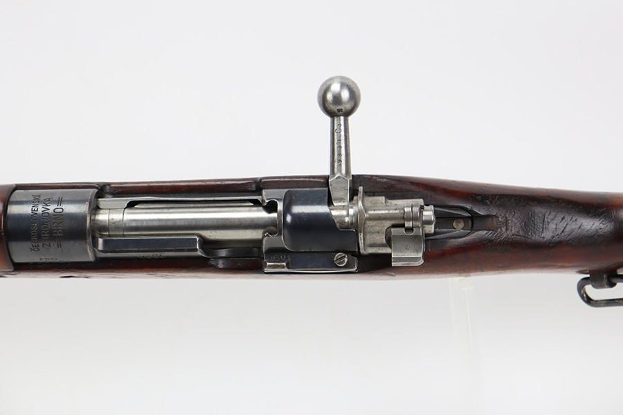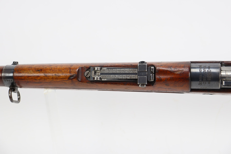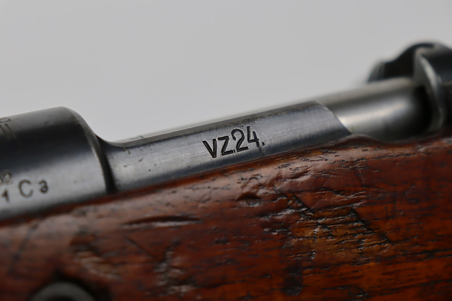 9/29/23 – This is a nice example of a Czech BRNO Vz 24 rifle from 1932. Entirely matching with the proper Czech proofs throughout. No import marks. The bluing rates about 85% with minor wear mostly around the high edges. Stock shows typical signs of wear with bruising throughout. Tiny hairline crack along the top edge of the stock, against the butt plate. The bore has good rifling, but there is minor pitting in the grooves.